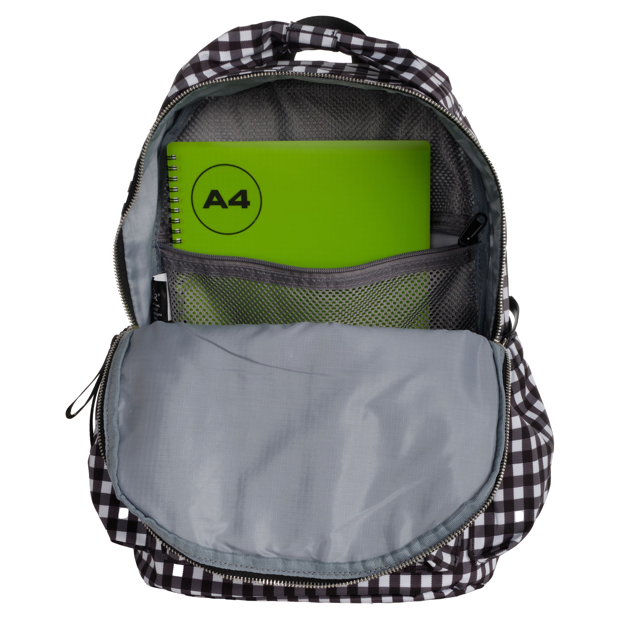 Городской рюкзак фирмы Polar имеет мягкую поролоновую спинку и мягкие лямки. Рюкзак состоит из одного отделения, которое закрывается на металлическую молнию. Внутри отделения один сетчатый карман на молнии. Спереди объемный карман для небольших предметов. По бокам два кармана на резинке. Сзади потайной небольшой кармашек. Максимальная длина лямок 93 см. Высота ручки 8 см.