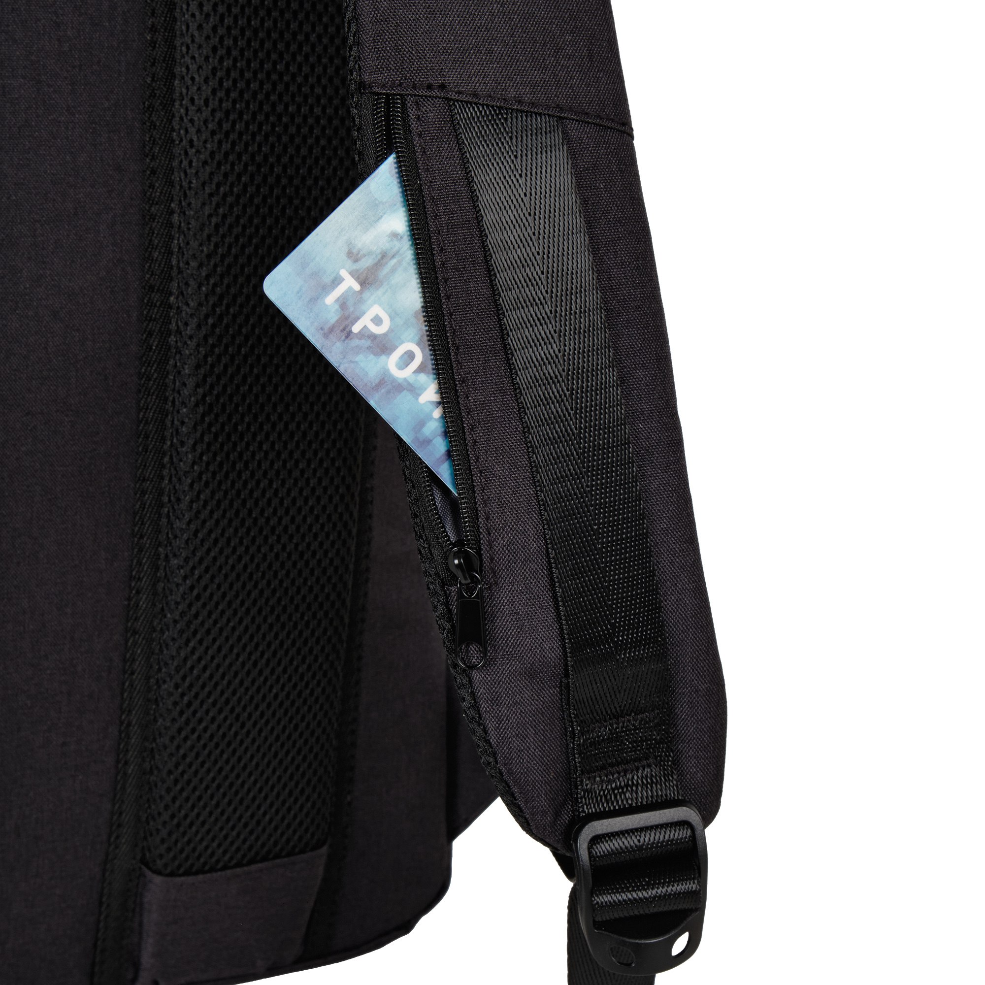 На левой лямке расположен небольшой кармашек на молнии.