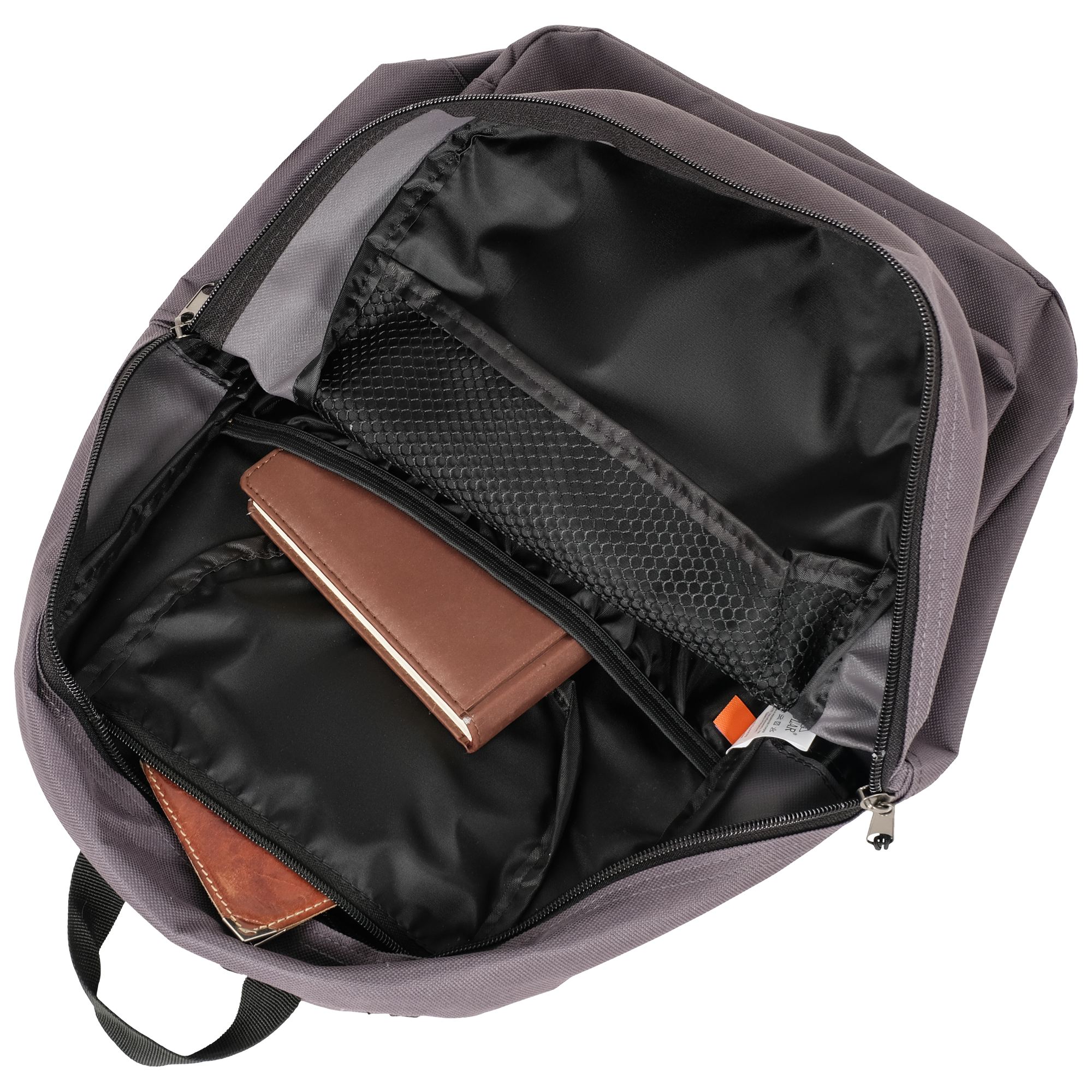 Спереди карман на молнии и два боковых кармана под бутылку или зонт. Внутри удобный карман на молнии для важных мелочей, карман на резинке для планшета или ноутбука до 14 дюймов, сетчатый карман. Вес рюкзака всего 400 грамм. Высота 42 см, ширина 29 см, глубина 12 см. Материал отлично чистится мягкой мыльной губкой.