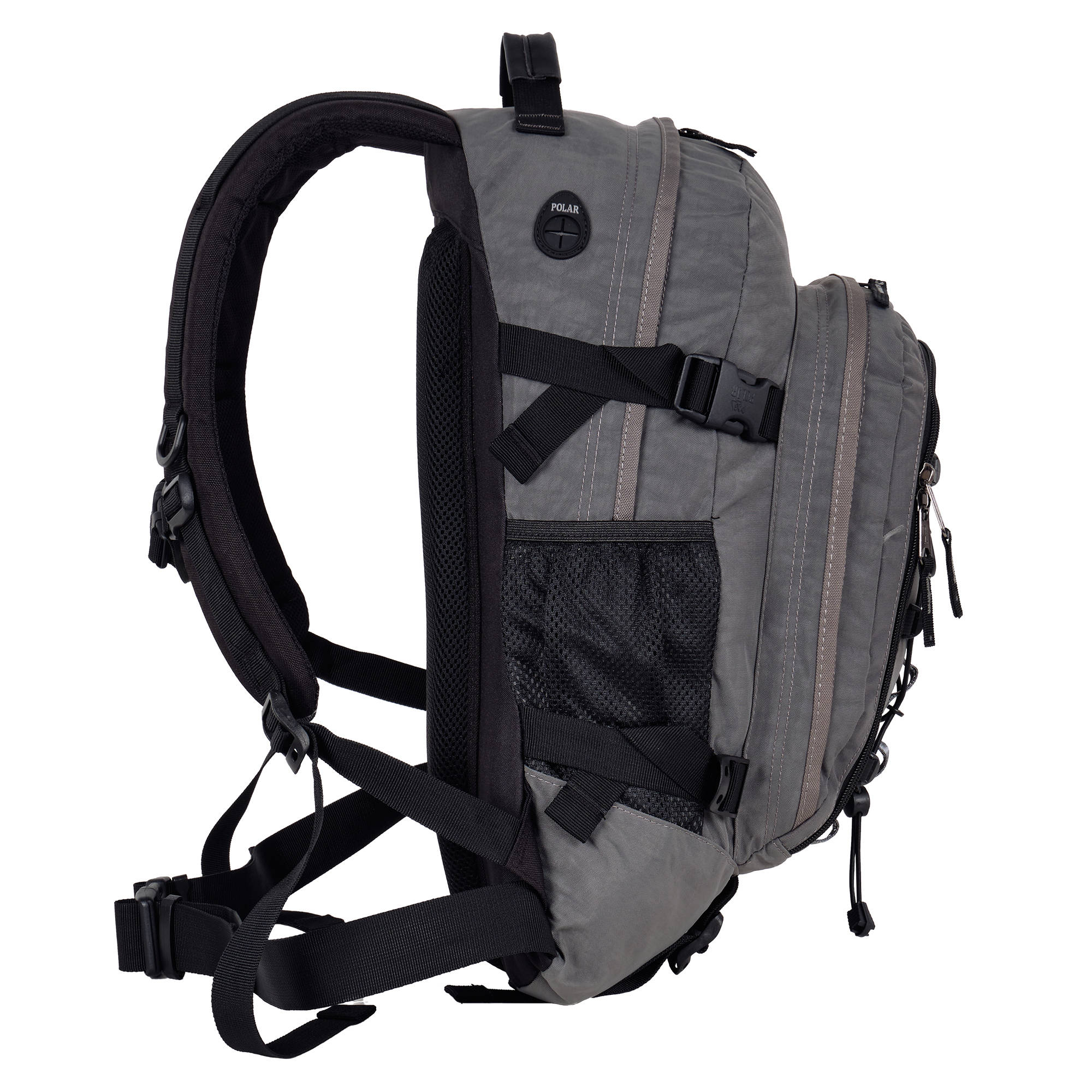 Городской рюкзак с модным дизайном. Полностью вентилируемая и удобная мягкая спинка, мягкие плечевые лямки создают дополнительный комфорт при ношении. Центральный отсек для персональных вещей и документов A4 на двухсторонних молниях для удобства. Петли для снаряжения дают возможность крепления на рюкзак дополнительного оборудования. Два боковых кармана под бутылки с водой на резинке. Регулирующая грудная стяжка с удобным фиксатором. Регулирующий поясной ремень, удерживает плотно рюкзак на спине, что очень удобно при езде на велосипеде или продолжительных походах. Система циркуляции воздуха Air. Материал Polyester.