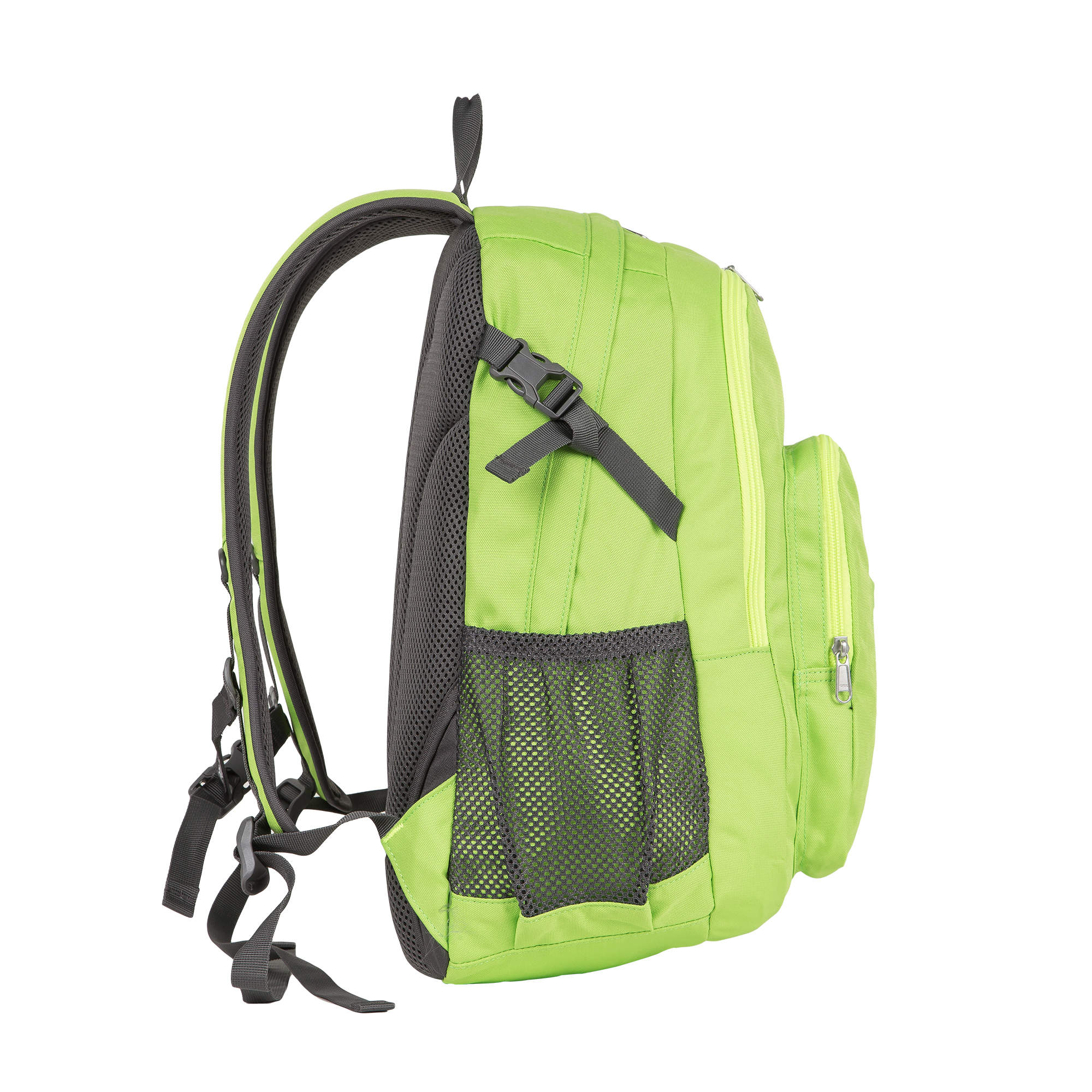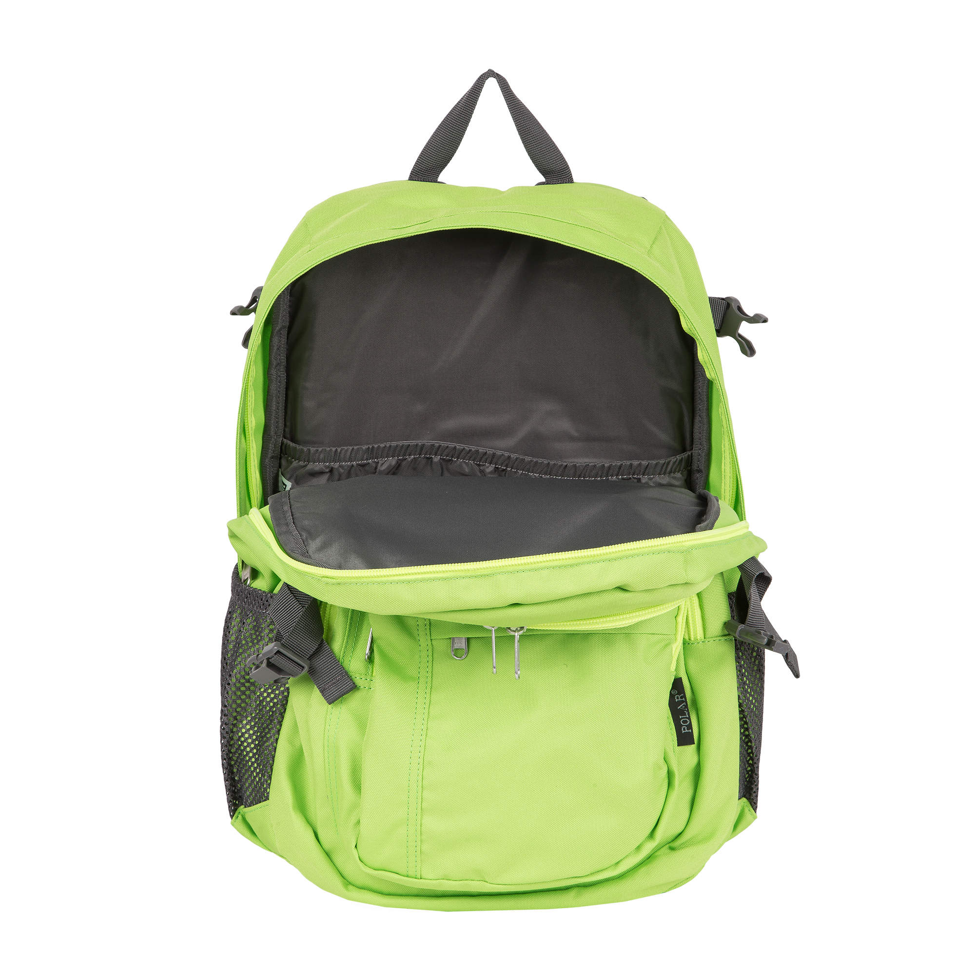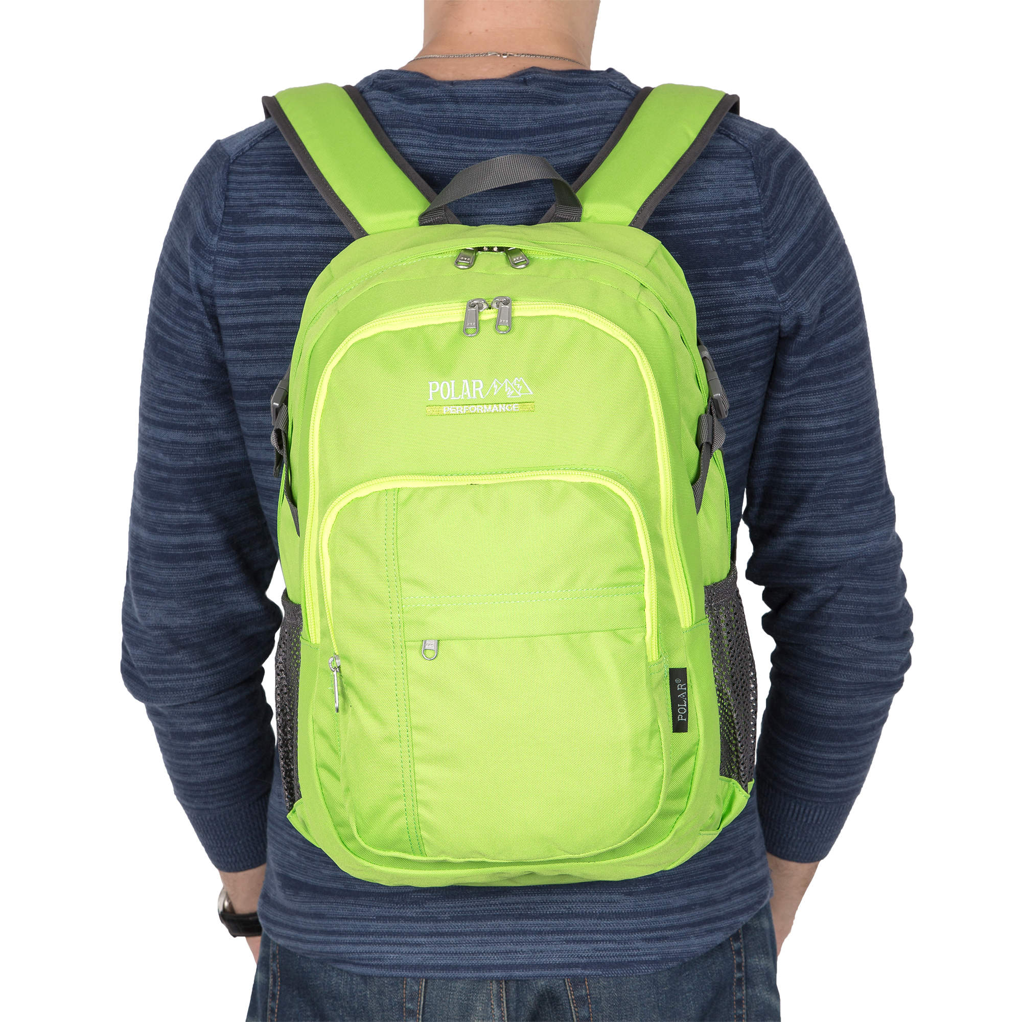 Удобный городской рюкзак ярких расцветок Полар выполнен из прочного полиэстера 600D. Полностью вентилируемая и удобная ортопедическая спинка, мягкие плечевые лямки создают дополнительный комфорт при использовании данной модели. Рюкзак состоит из центрального отделения, внутри которого есть большой карман на резинке для документов и планшета, из среднего отделения для спортивной обуви и более мелких вещей и накладного кармана на молнии, спереди которого есть также маленький кармашек на молнии. По бокам данной модели расположены сетчатые карманы для бутылок с водой. Дополнительные стяжки помогают отрегулировать объем рюкзака, а стяжки на лямках не позволяют им спадать с плеч, что делает носку еще более удобной. Рюкзак отлично подойдет для учебы, прогулок по городу или короткого путешествия.
