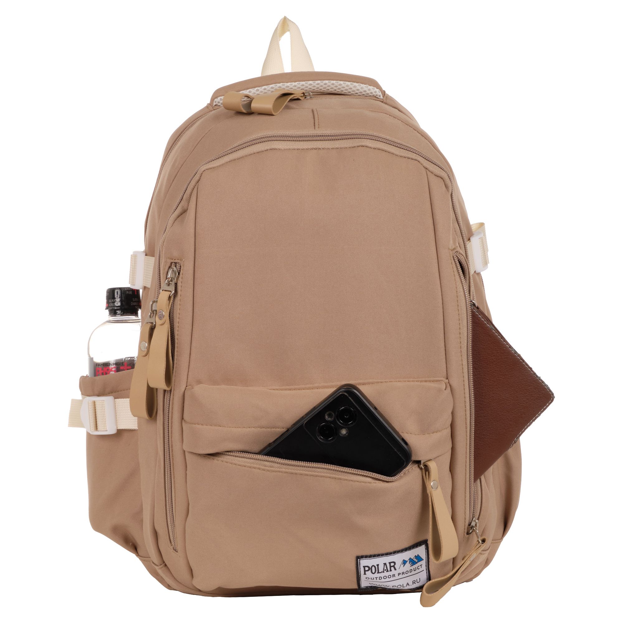 Городской рюкзак Polar для повседневной носки. Два независимых отделения на молнии формата А4. Внутри большого отделения открытый карман, где можно разместить планшет/ноутбук или документы, папки . Спереди скрытый карман с боковыми молниями, а так же передний накладной карман. Боковые карманы на резинке с фиксирующими ремнями для регулирования объема рюкзака. Сзади расположен потайной карман Антивор. Спинка и лямки мягкие, с поролоновыми вставками. Сверху рюкзака ручка для переноски и петля для подвешивания. Материал Полиэстер.