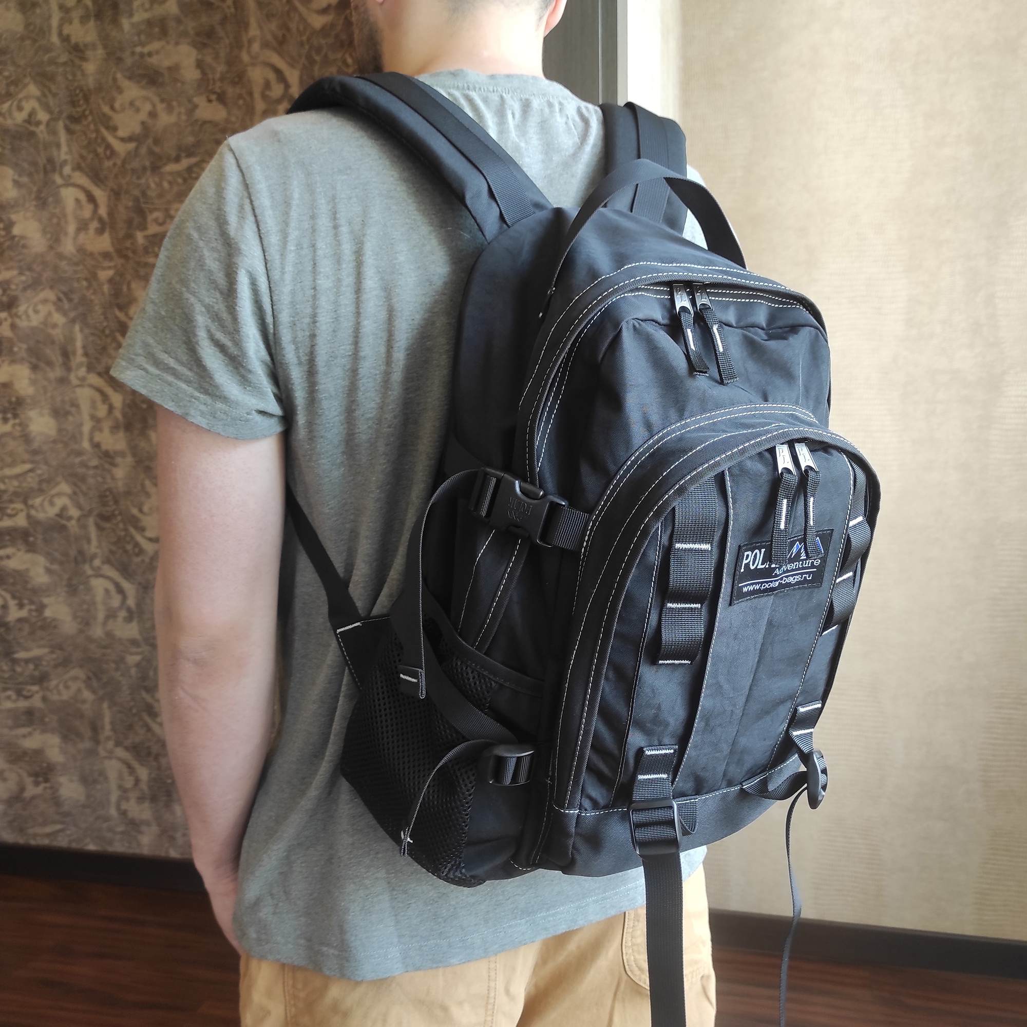 Городской рюкзак с модным дизайном. Полностью вентилируемая и удобная мягкая спинка, мягкие плечевые лямки создают дополнительный комфорт при ношении. Центральный отсек для персональных вещей и документов A4 на двухсторонних молниях для удобства. Два боковых кармана под бутылки с водой на резинке. Система циркуляции воздуха Air. Материал Polyester.