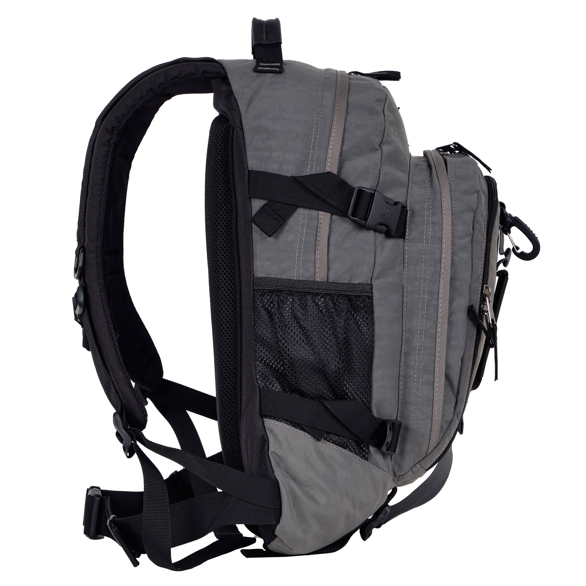 Городской рюкзак с модным дизайном. Полностью вентилируемая и удобная мягкая спинка, мягкие плечевые лямки создают дополнительный комфорт при ношении. Центральный отсек для персональных вещей и документов A4 на двухсторонних молниях для удобства. Два боковых кармана под бутылки с водой на резинке. Регулирующая грудная стяжка с удобным фиксатором. Регулирующий поясной ремень, удерживает плотно рюкзак на спине, что очень удобно при езде на велосипеде или продолжительных походах. Система циркуляции воздуха Air. Материал Polyester.