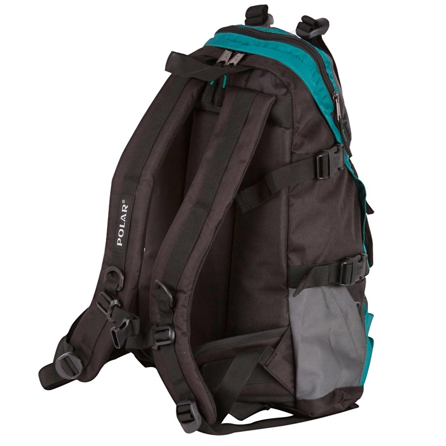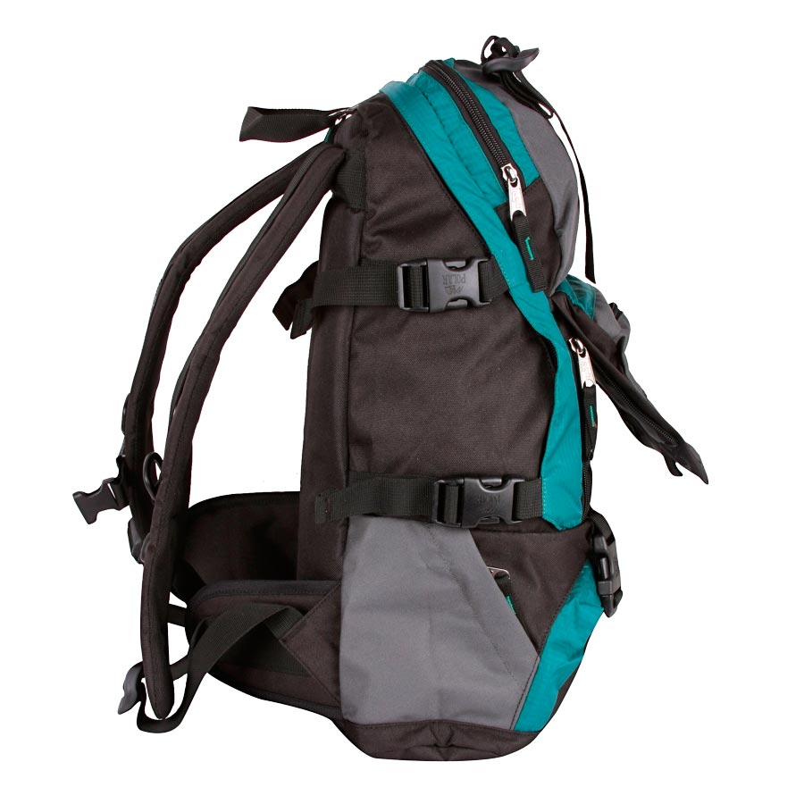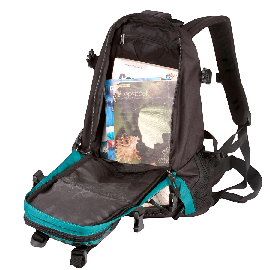 Удобный вместительный рюкзак для всего самого необходимого на отдыхе. Жесткая спинка и удобные лямки повторяющие форму плеча с дополнительной грудной и поясничной стяжками позволяет уменьшить нагрузку на спину и сделает ваш отдых максимально комфортным. Большое отделение с дополнительным карманом на молнии (кошелек, документы) внутри. С внешней стороны расположены стяжки для регулирования объема. Два боковых кармана (правый на молнии, левый из сетки), карман для обуви, три небольших кармана для мелких вещей, один из которых с клапаном и двумя вертикальными молниями застежками и дополнительными отделениями. Рюкзак выполнен из прочного полиэстера с водоотталкивающей пропиткой.