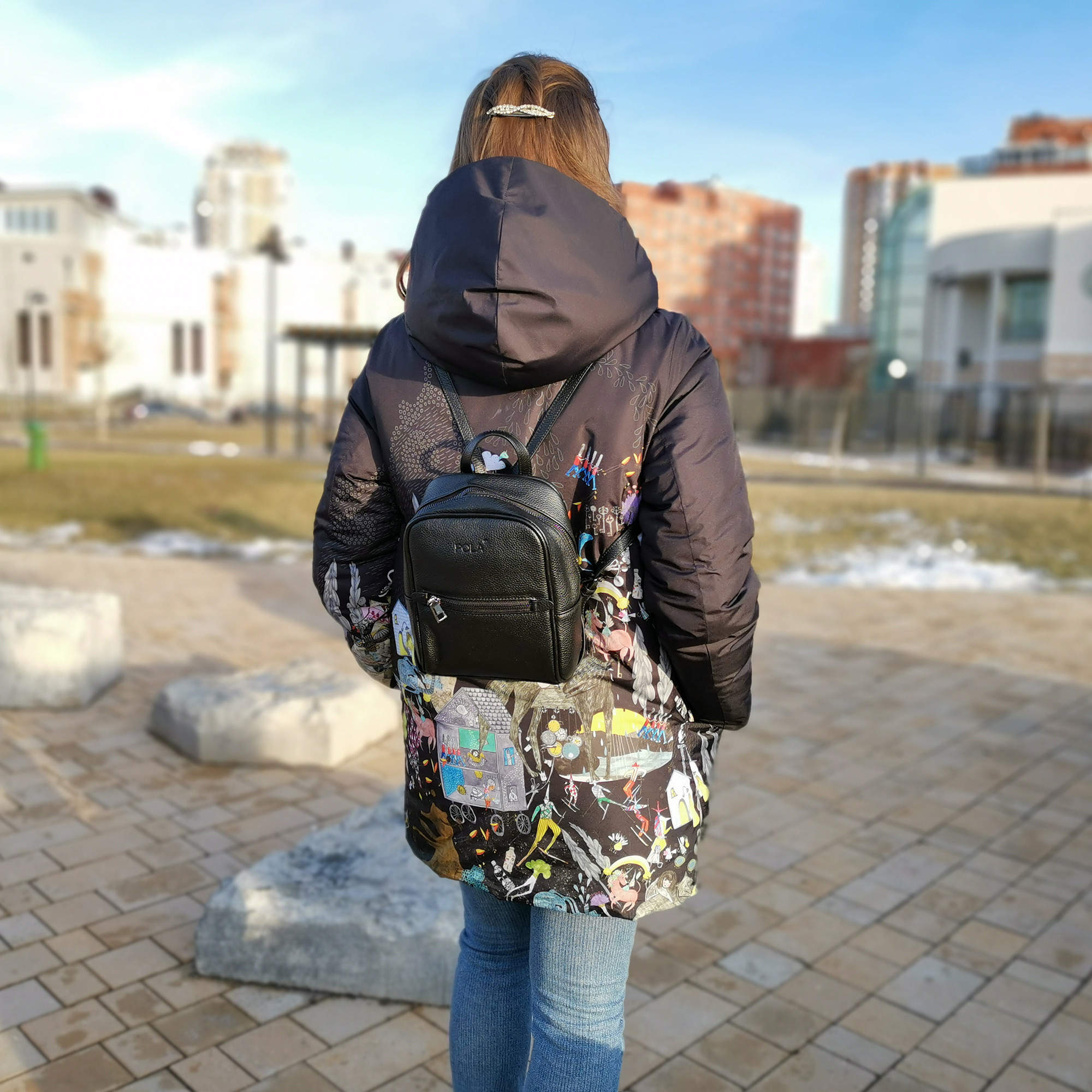 Женский рюкзак фирмы Pola изготовлен из натуральной кожи. Модель отлично подойдет для повседневного ношения и прогулками с друзьями. Основное отделение закрывается на металлическую молнию. Внутри небольшой карман на молнии для карточек, ключей и один открытый карман. На передней стенке рюкзака один накладной карман на молнии. Длина лямок 85 см.