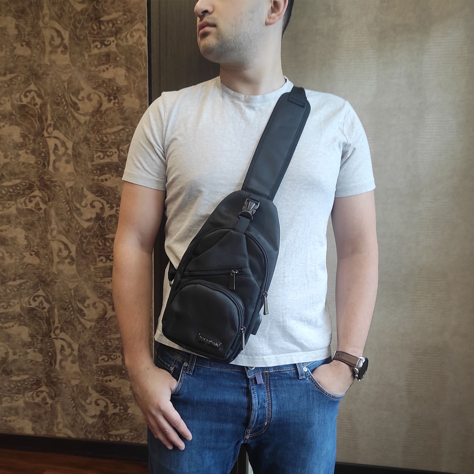 Ультрамодный миниатюрный однолямочный рюкзак POLAR станет надёжным спутником, как в условиях городской жизни, так и на отдыхе и прекрасно подойдёт для прогулок по городу, велосипедных поездок или путешествий. Рюкзак состоит из основного отделения, предназначенного для стандартного EDC набора, состоящего из кошелька, документов, мобильного телефона, очков, ключей. Спереди рюкзака есть накладной карман на молнии и миниатюрный кармашек на молнии, расположенный диагонально. Рюкзак оснащен USB-кабелем и USB-портом.