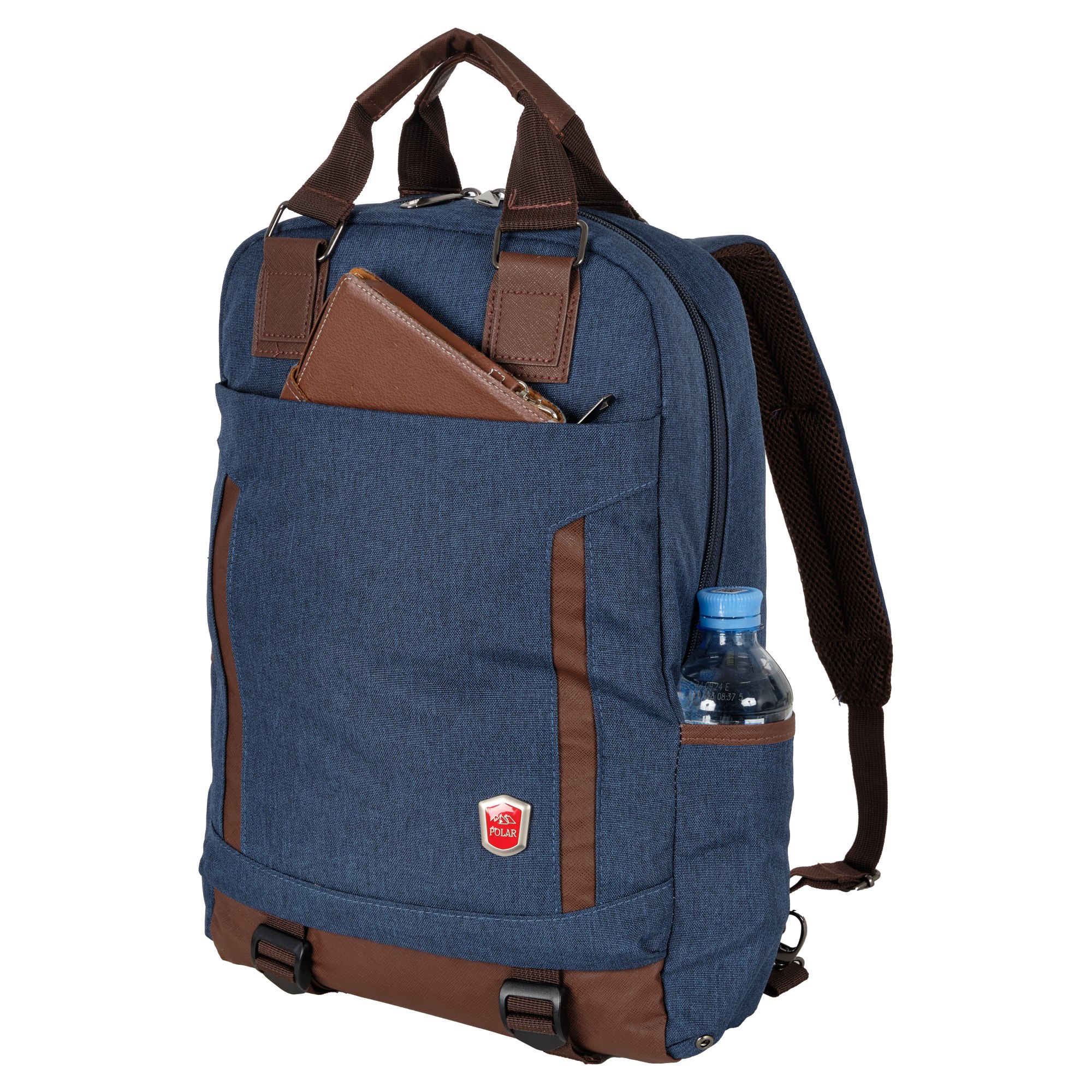 Сумка- рюкзак фирмы Polar имеет одно вместительное отделение закрывается на молнию. Внутри расположены два больших кармана из сетчатого материала, и отделение под ноутбук или планшет диаганалью 15 размеры (26 х 36 х 2). Спереди сумки большой карман на молнии. По бокам расположены два открытых кармана. Лямки пристегиваются карабинами, и регулируются по длине. Сзади расположен большой открытый карман на липучке, куда можно спрятать лямки, и переносить сумку в руке. Сверху расположены ручки высотой 11 см. Края карманов, ручки, и дно обработаны вставками из экокожи.