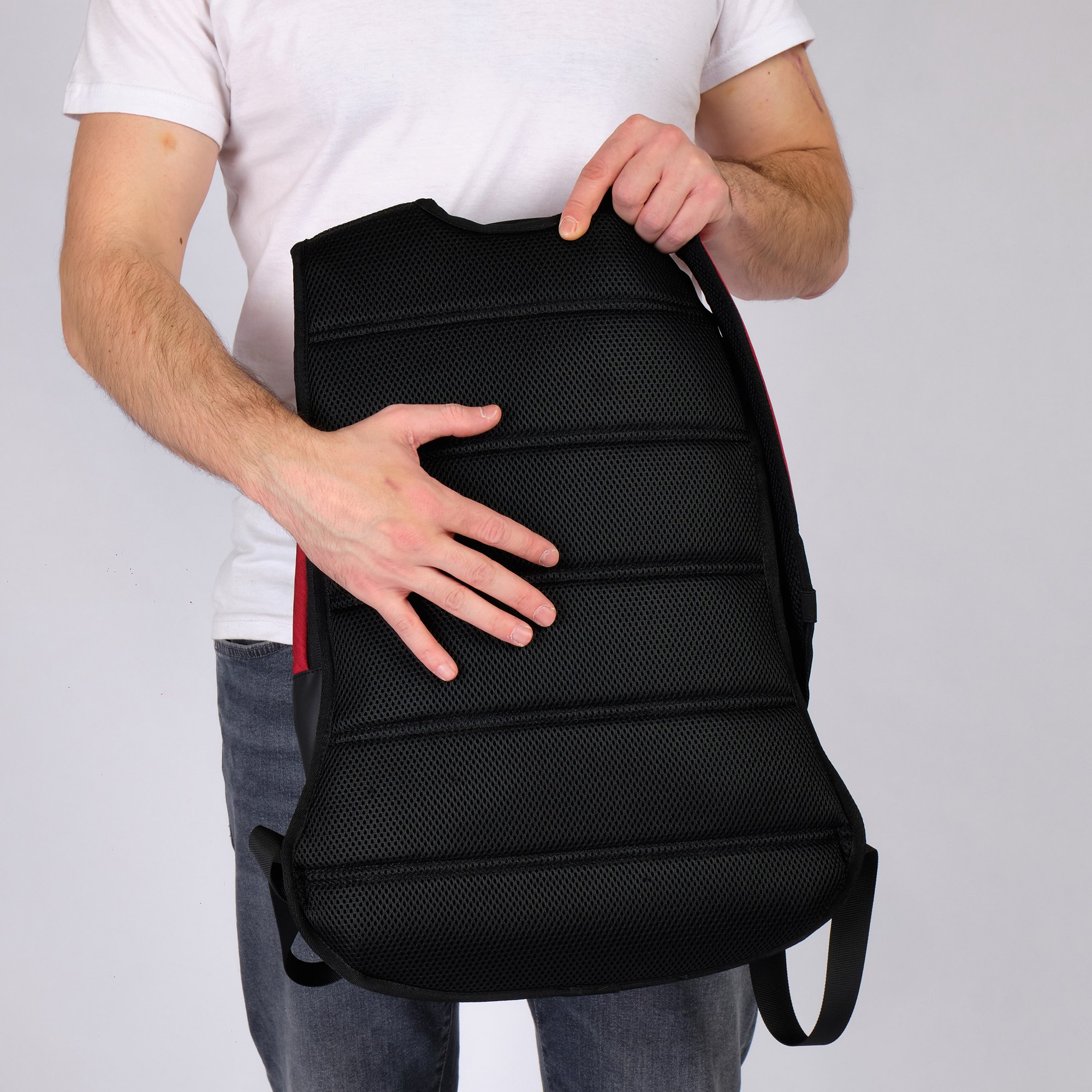 Внутри рюкзака на задней стенке отделение для ноутбука, которое при помощи липучек –фиксаторов может менять размер, в зависимости от диагонали вашего гаджета.