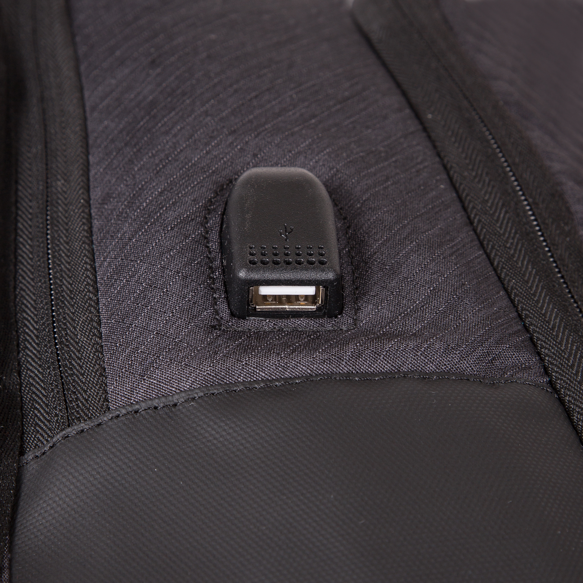 USB–порт для зарядки, позволит зарядить телефон не снимая рюкзак, что особенно удобно в современном мире.  На левой лямке расположены присоски и резинка, которые надежно удерживают телефон во время подзарядки и освобождают руки.