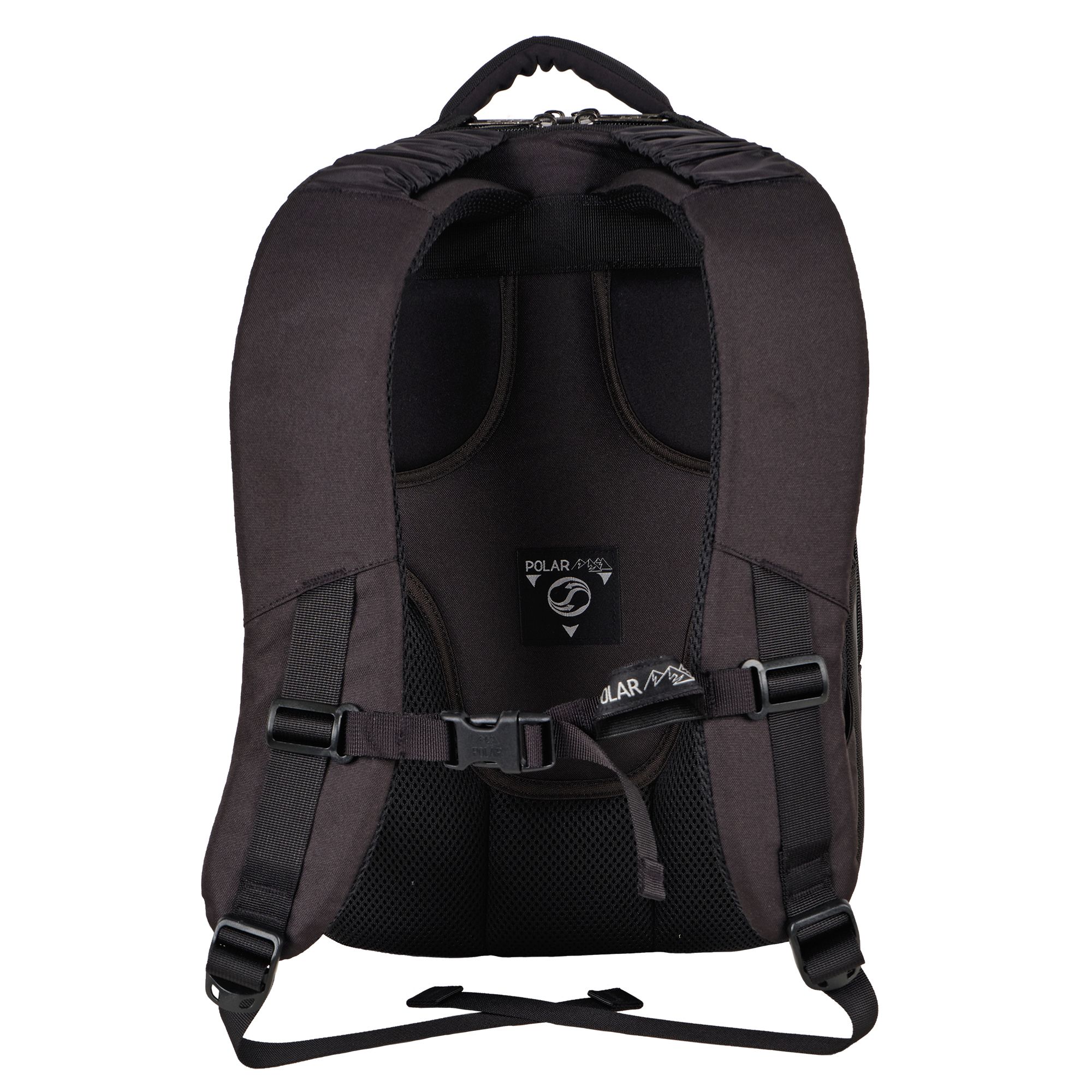 Рюкзак для ноутбука фирмы Polar. Жесткая спинка с горизонтальной и вертикальными вставками из пены повторяющие форму спины. Грудная и поясничная стяжки лямок. Два отделения, одно из которых с отделением для ноутбука. Два боковых кармана (левый из трикотажной сетки, правый из основной ткани с клапаном на липучке). Один вместительный карман с дополнительными отделениями и один карман чуть поменьше для мелких вещей. Оригинальный и очень удобный рюкзак позволит взять с собой все дополнительные аксессуары для вашего портативного компьютера.