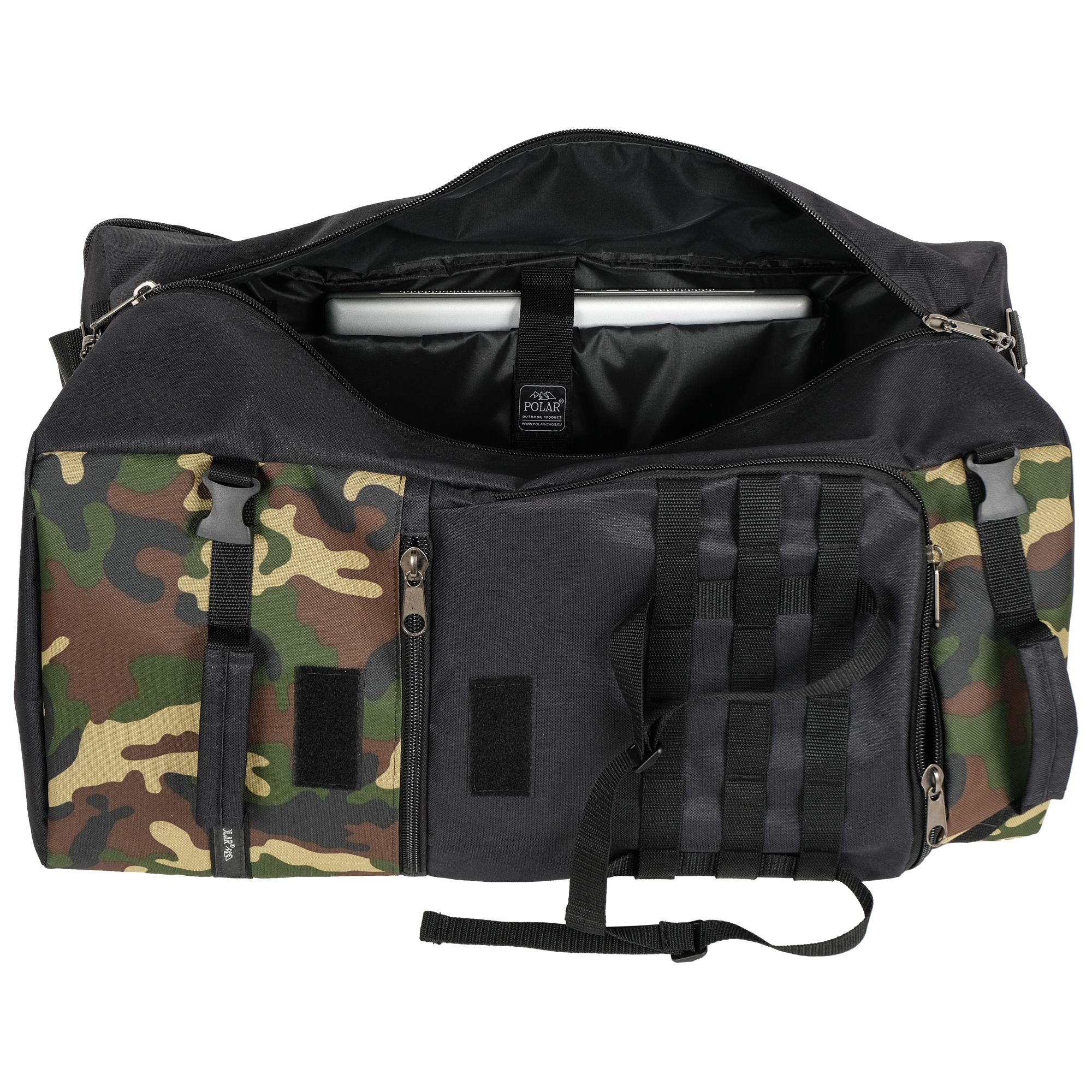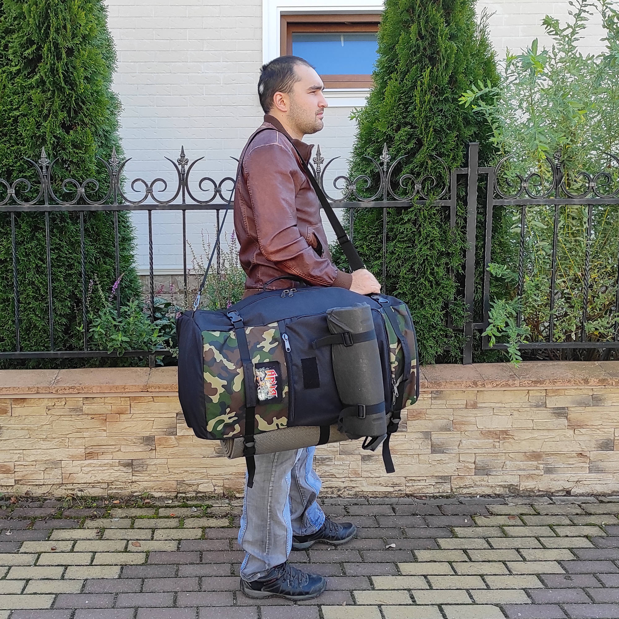 При необходимости, рюкзак легко трансформируется в большую дорожную сумку, если взять его за боковую ручку длина  и убрать лямки под дополнительное отделение, отстегнув его сверху и закрыв на молнию. В комплекте есть съемный, регулируемый по длине ремень, длина до 125 см.