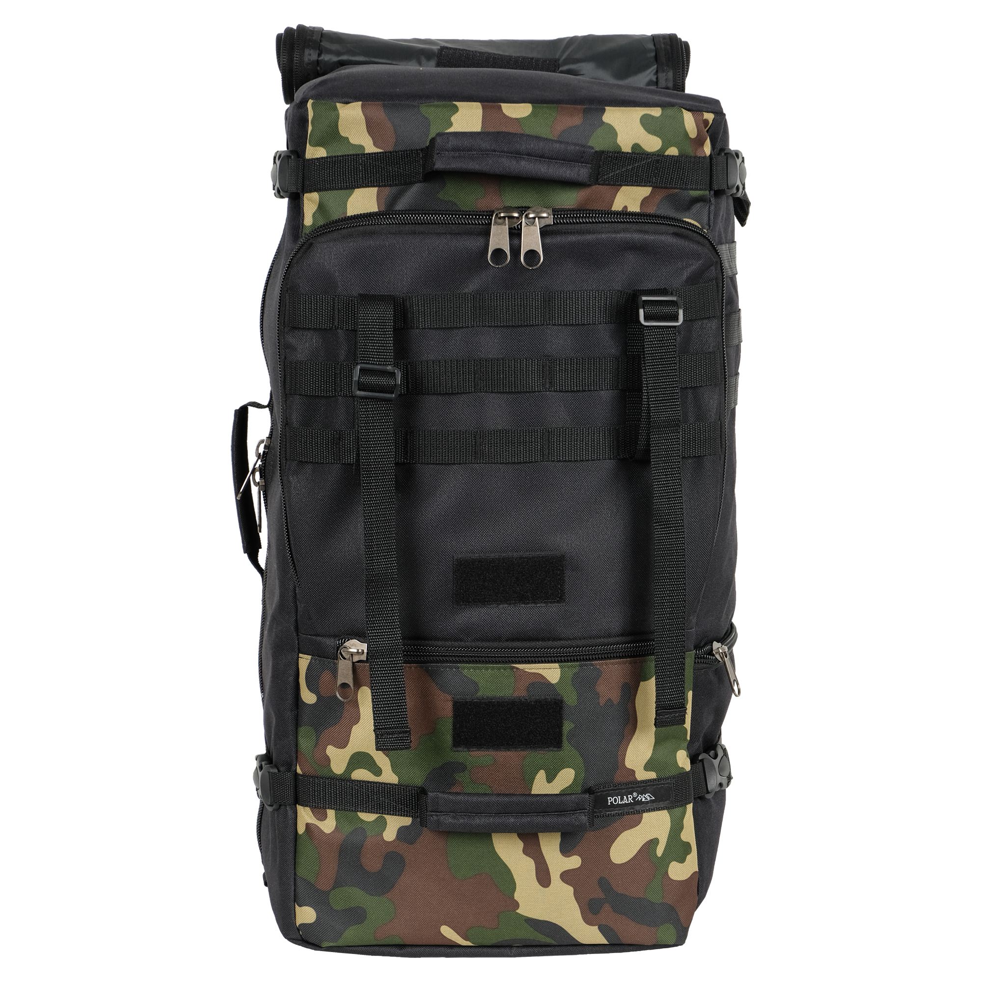 На передней стенке у рюкзака есть две широкие липучки на которые вы при желании можете прикрепить свои шевроны.