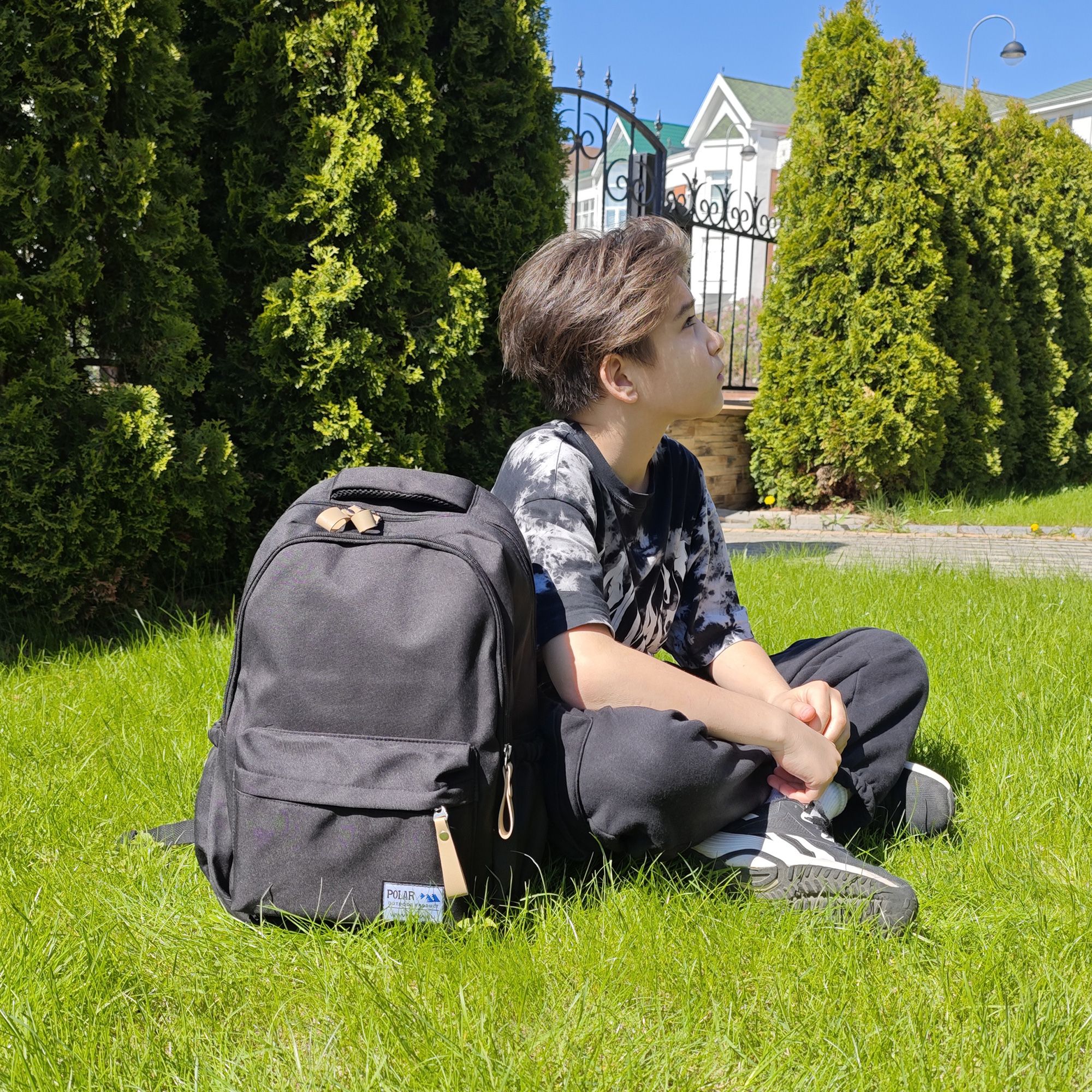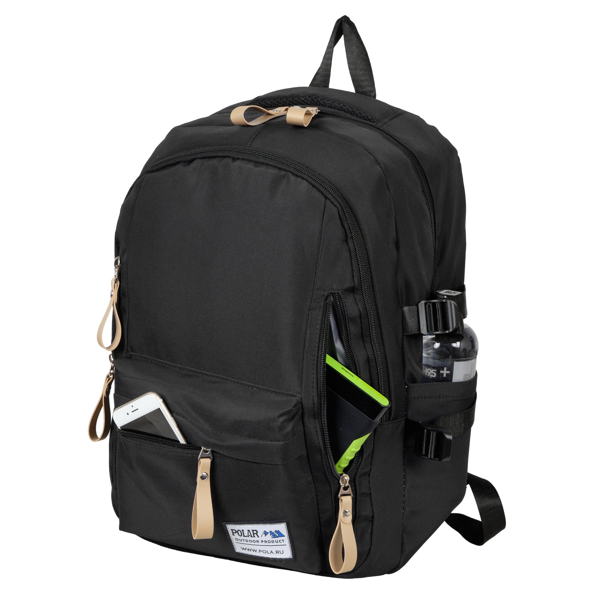 Рюкзак фирмы Polar мягкая поролоновая спинка. Рюкзак состоит из двух отделений. Основное отделение закрывается на молнию. Внутри расположены два небольших кармана и отделение под ноутбук или планшет диагональю 15 размеры (26 х 36 х 2). Среднее отделение рюкзак свободно вмещает формат А4. Спереди накладной карман на молнии. По бокам расположены два открытых кармана. Лямки регулируются по длине 80 см. Сзади расположен потайной карман. Сверху расположены две ручки высотой 8 см и 2 см.