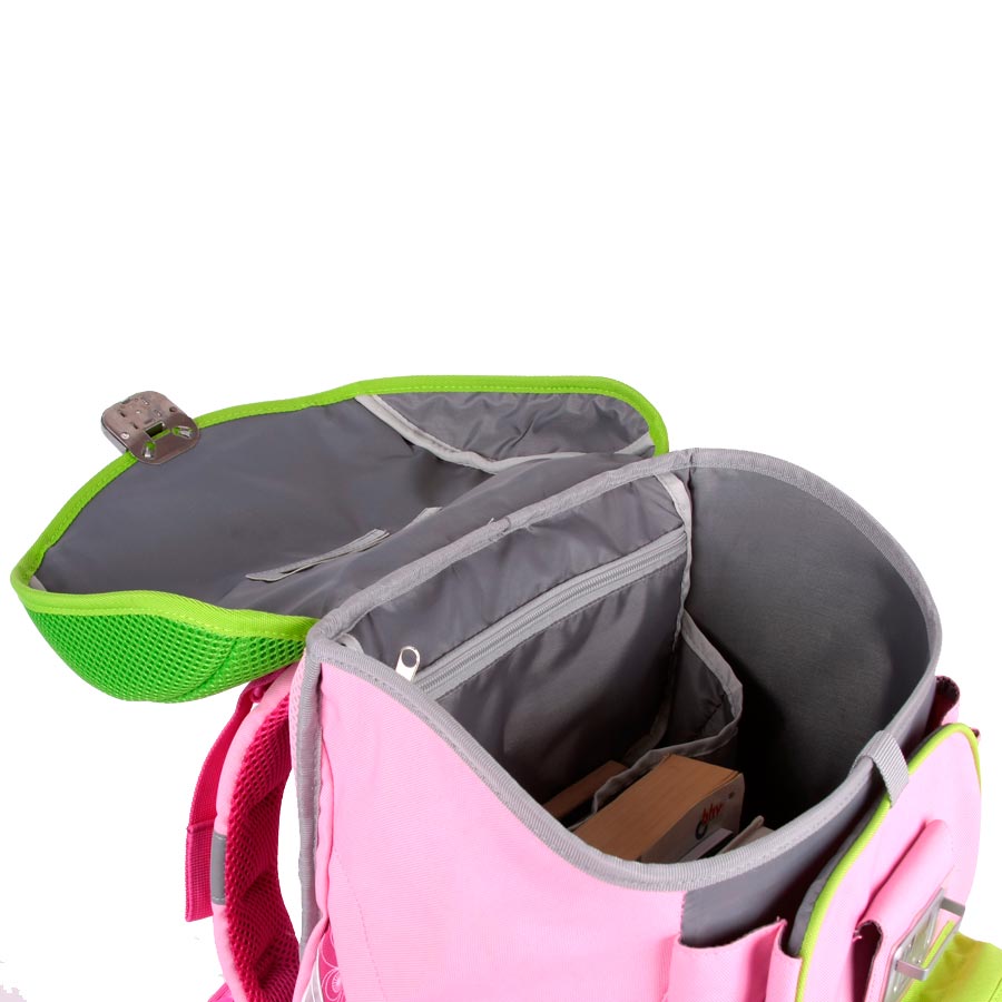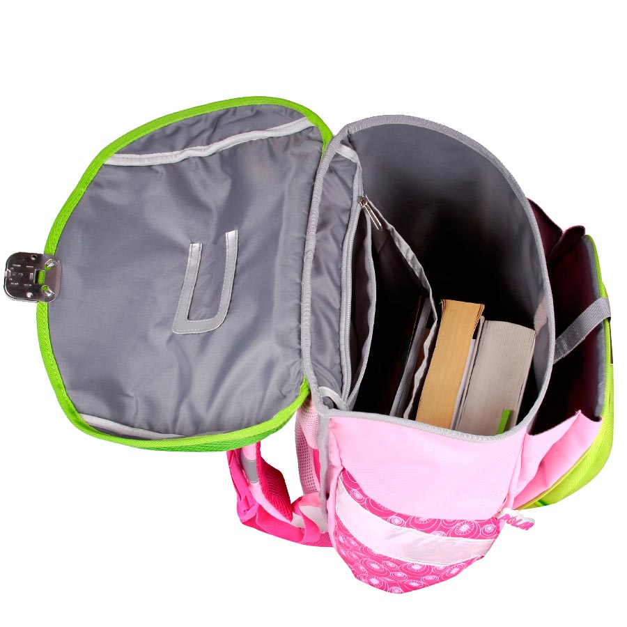 4.Благодаря надежному металлическому замку, удобно открывается рюкзак. 5. Гибкая петля для того, чтобы подвесить ранец на крючок. Внутренние размеры изделия: 29 х 19 х 33. Подходит для 1-4 классов.