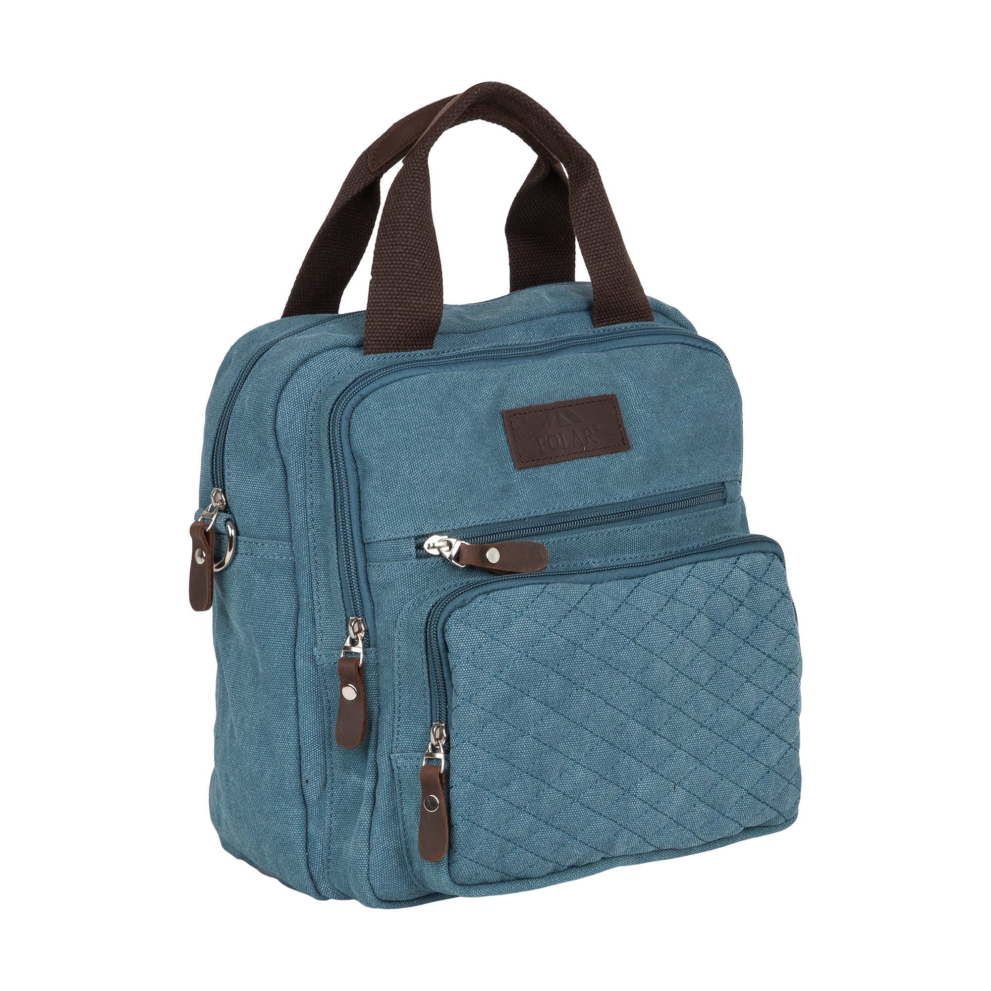 Стильная городская сумка- рюкзак Polar выполнена из брезента и состоит из двух отделений , которые закрываются на молнию. Внутри основного отделения - карман на молнии и два открытых кармашка. Снаружи есть накладной карман на молнии, украшенный декоративной нитью в виде ромбов. К сумке-рюкзаку прилагается регулируемый ремень, который можно использовать как плечевой ремень (в этом случае изделие можно носить как сумку) . Сзади и внизу рюкзака находятся металлические кольца, с помощью которых можно путём перекрещивания ремня сделать лямки рюкзака.