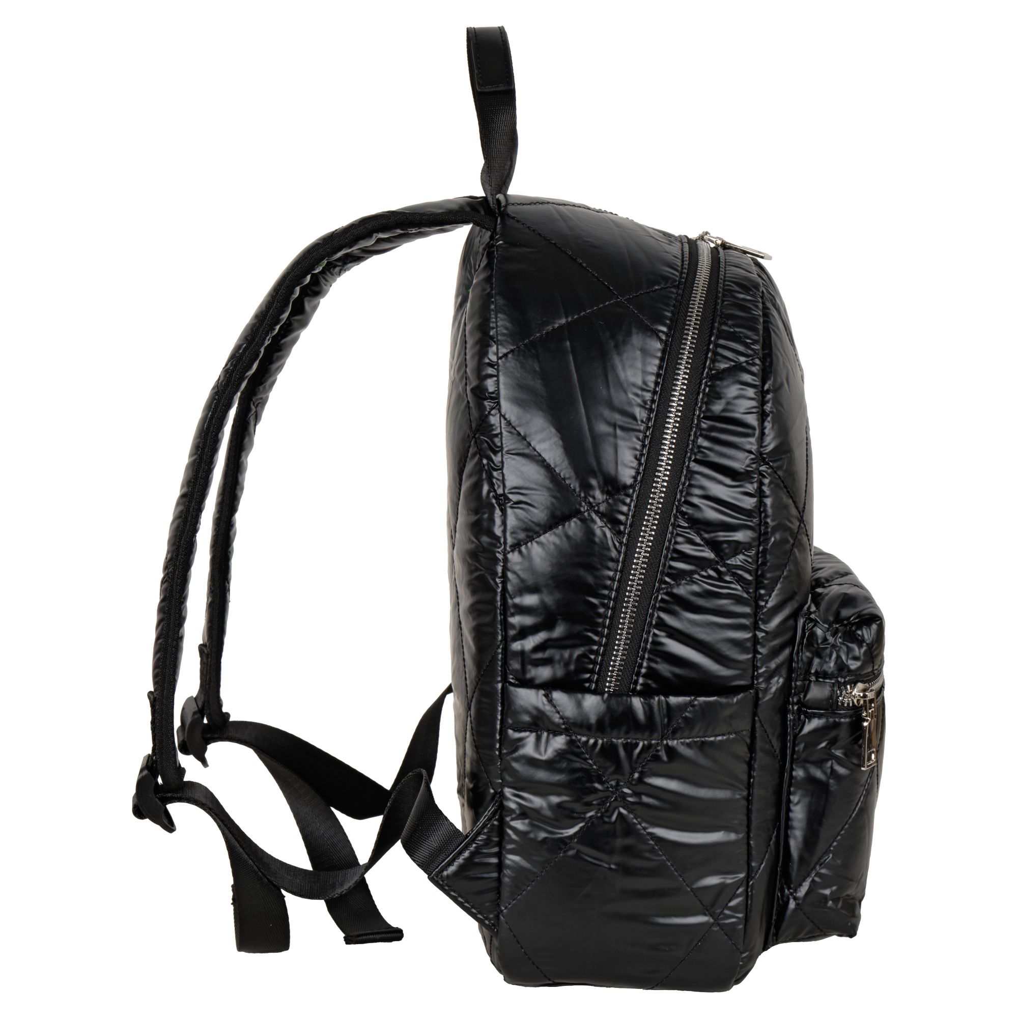 Женский стеганый маленький рюкзак фирмы Polar из болоньи, дополнит Ваш зимний образ с курткой и станет незаменимой вещью в Вашем гардеробе на каждый день. Рюкзак состоит из одного отделения, которое закрывается на молнию. Внутри отделения один карман на молнии и два открытых кармашка. Спереди накладной карман на молнии для мелочей. По бокам два открытых кармана. Максимальная длина лямок 85 см. Высота ручки 7 см.