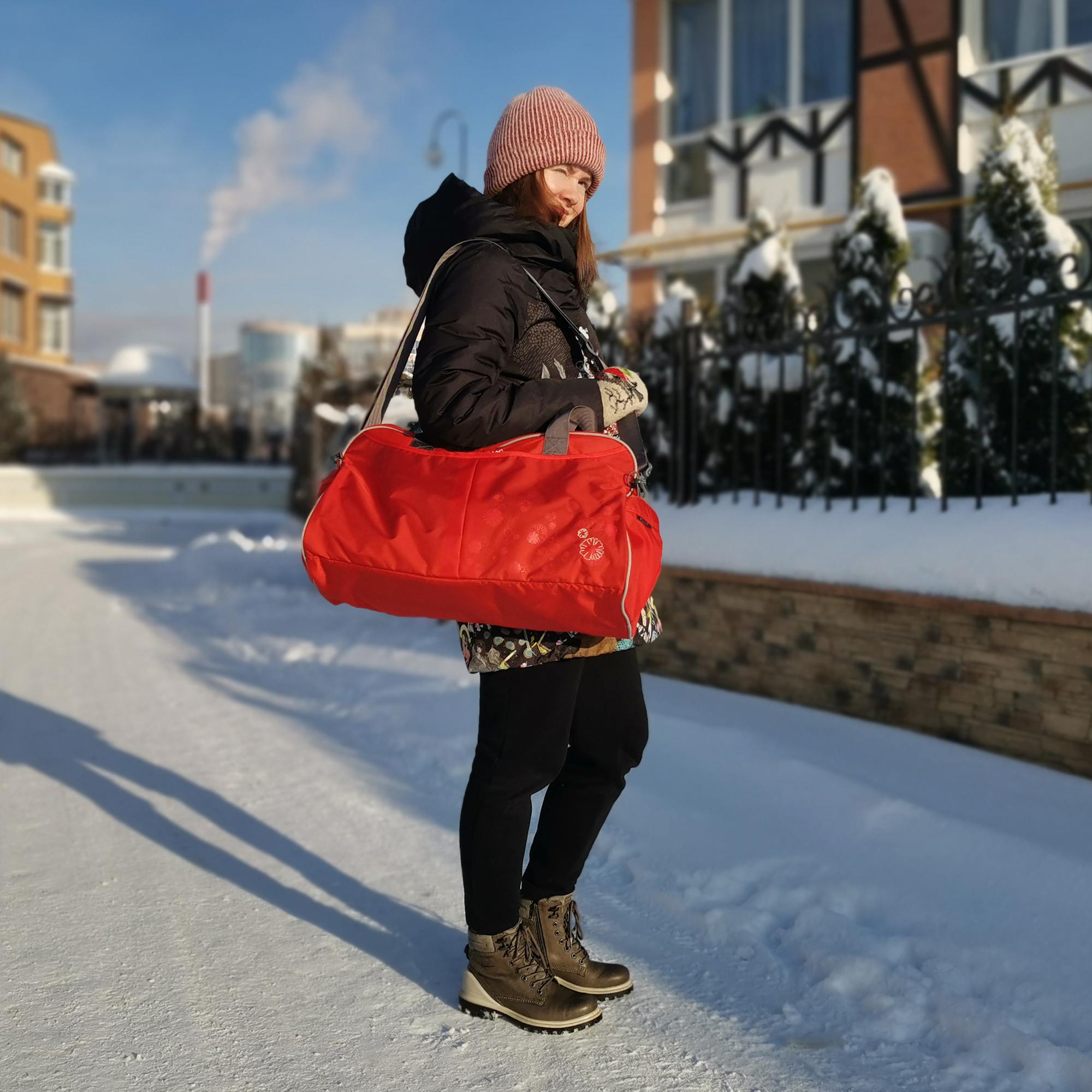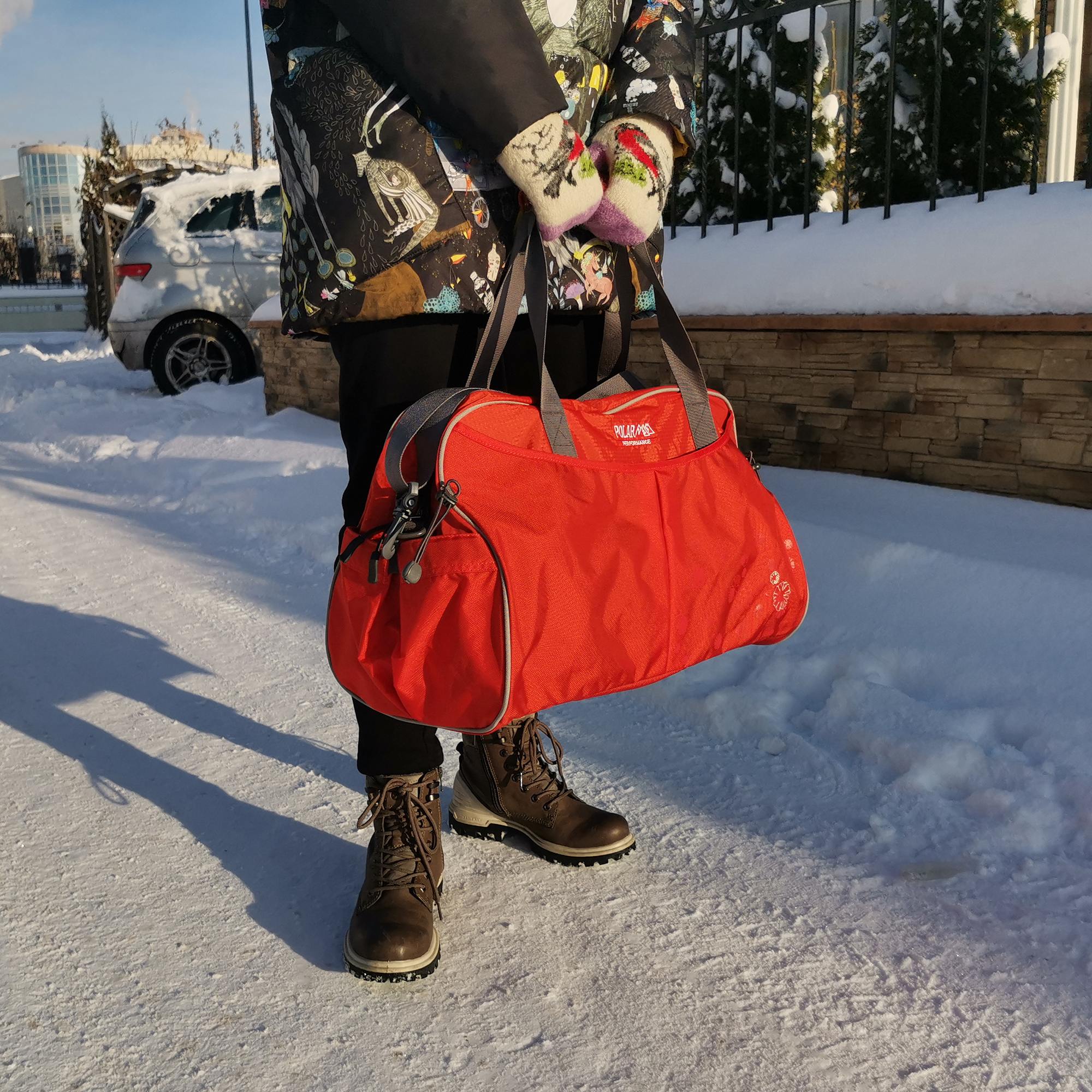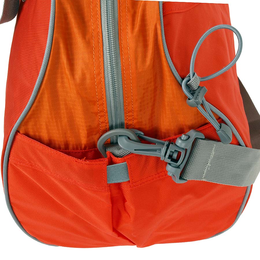 Вместительная спортивная сумка выполнена из нейлона. Одно основное отделение. Внутри карман на молнии, открытый кармашек на липучке, держатель для бутылочки с водой. Снаружи- карман на молнии спереди сумки. Имеется плечевой ремень.