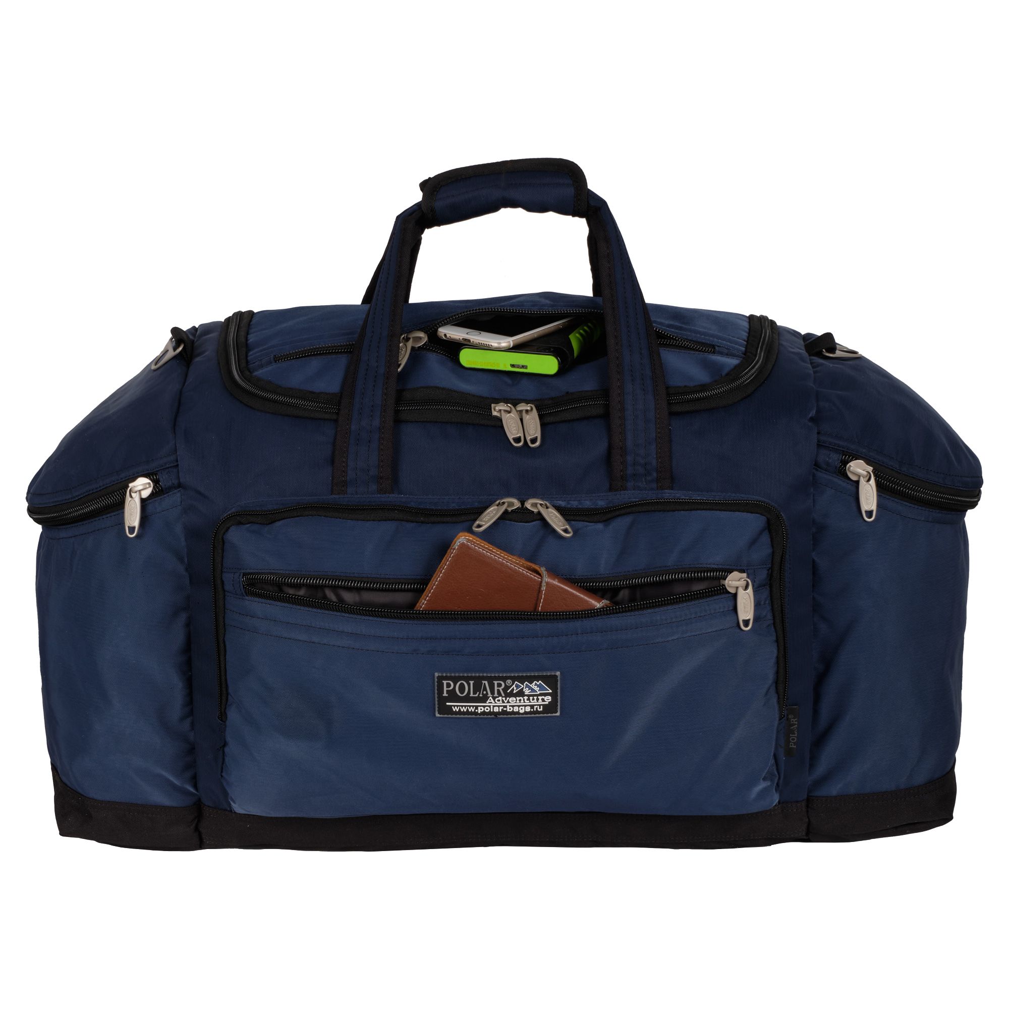 Сумка состоит из одного большого вместительного отделения, которое закрывается на двухстороннюю застежку-молнию по прямой. С фронтальной стороны дополнительно оснащена специальными карманами для документов формата А4. Несущие лямки широко фиксируются на липучке и при ношении не врезаются в руку. Съемный и удобный наплечный ремень с регулируемой длиной 160 см имеет мягкую подкладку для плеча. Материал полиэстер.