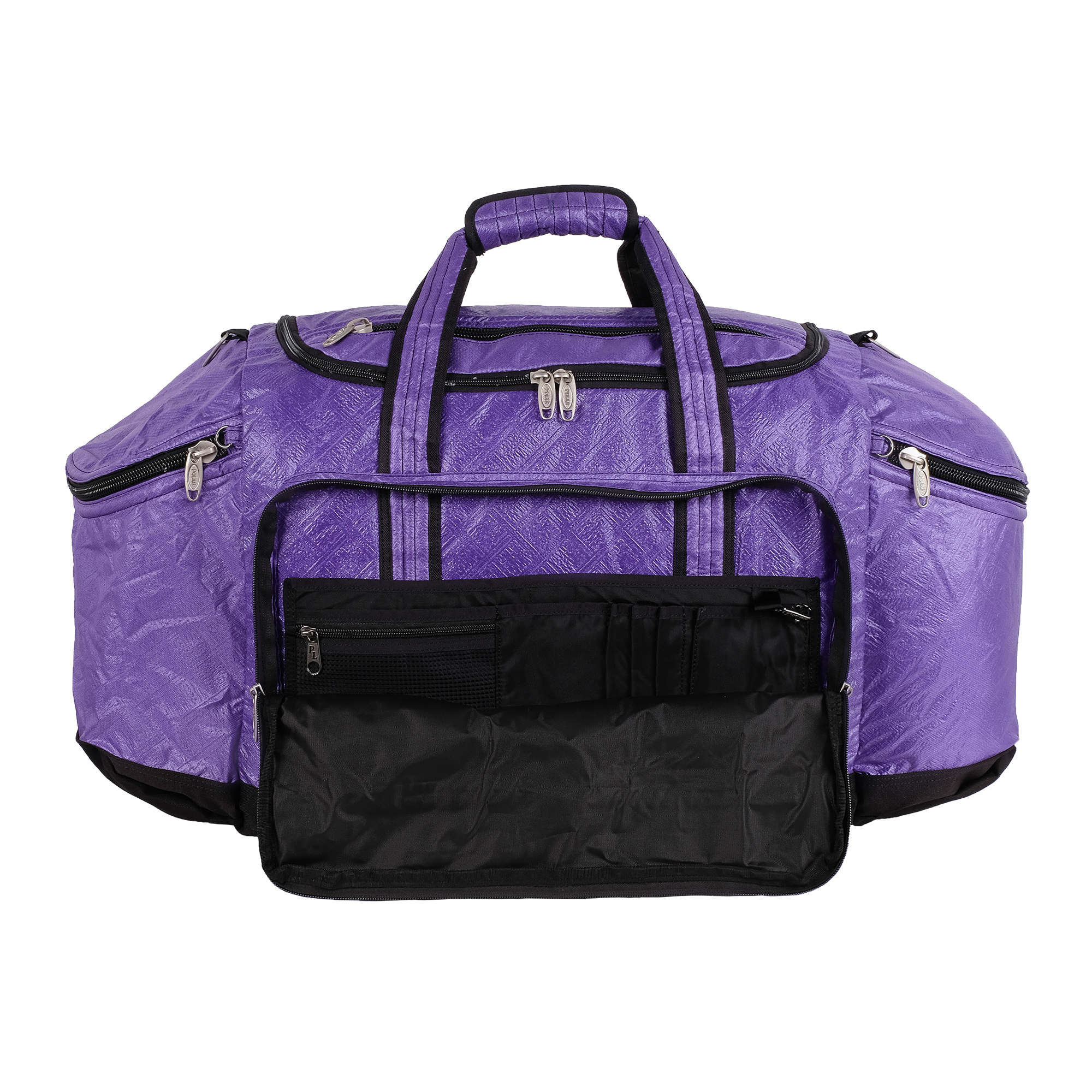 Сумка состоит из одного большого вместительного отделения, которое закрывается на двухстороннюю застежку-молнию по прямой. С фронтальной стороны дополнительно оснащена специальными карманами для документов формата А4. Несущие лямки широко фиксируются на липучке и при ношении не врезаются в руку. Съемный и удобный наплечный ремень с регулируемой длиной 160 см имеет мягкую подкладку для плеча. Материал полиэстер.