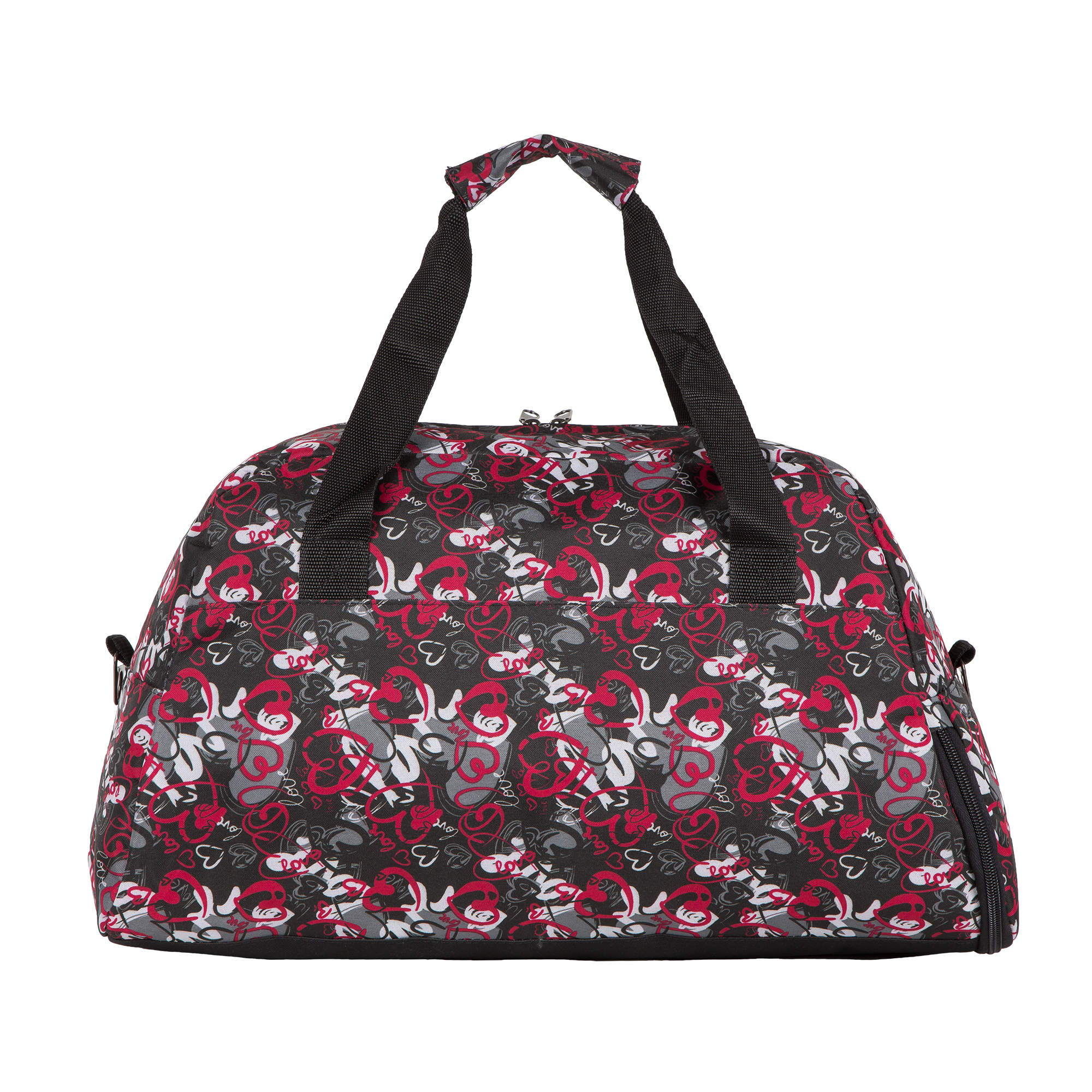 Вместительная спортивная сумка выполнена из полиэстера с водоотталкивающей пропиткой и великолепно подходит для занятий фитнесом. Сумка состоит из одного большого отделения, которое закрывается на пластиковую молнию. Сбоку сумки внизу есть карман для обуви, сзади сумки присутствует также небольшой карман на молнии. У данной модели есть две ручки для переноски и съёмный плечевой ремень.