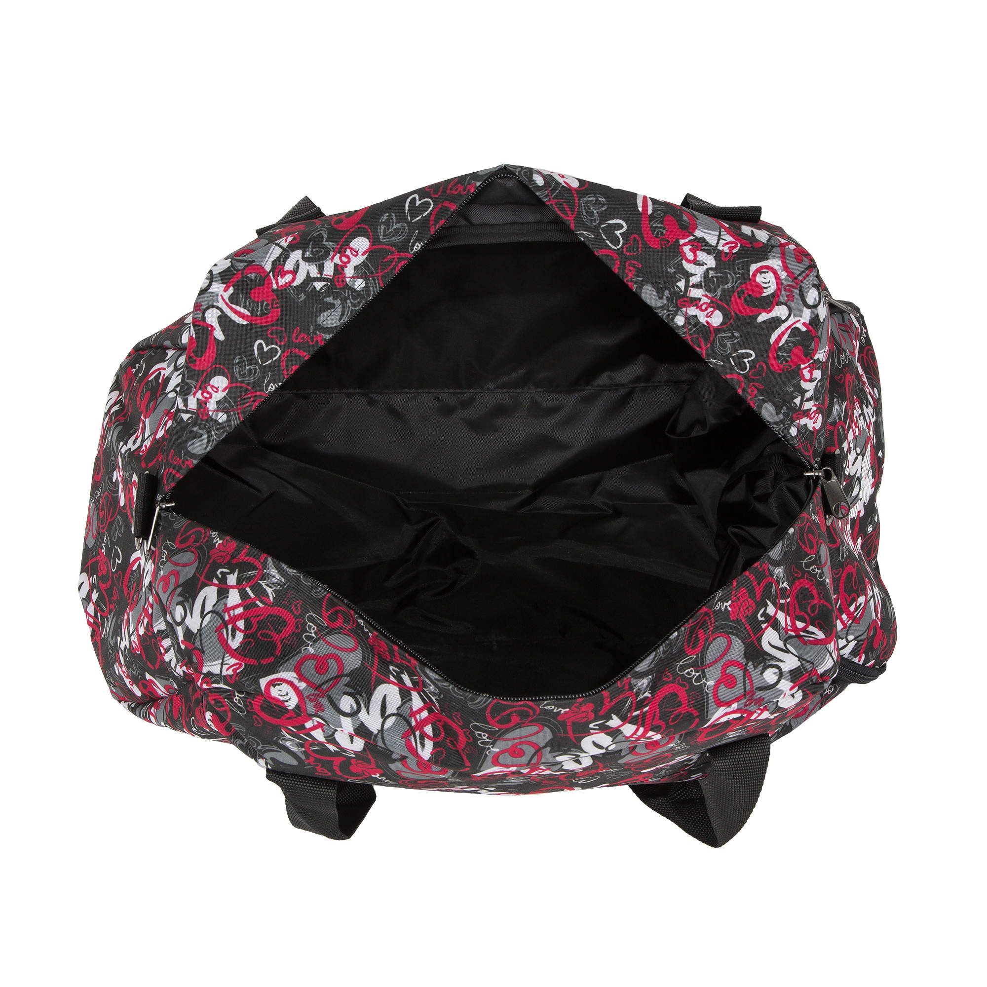 Вместительная спортивная сумка выполнена из полиэстера с водоотталкивающей пропиткой и великолепно подходит для занятий фитнесом. Сумка состоит из одного большого отделения, которое закрывается на пластиковую молнию. Сбоку сумки внизу есть карман для обуви, сзади сумки присутствует также небольшой карман на молнии. У данной модели есть две ручки для переноски и съёмный плечевой ремень.