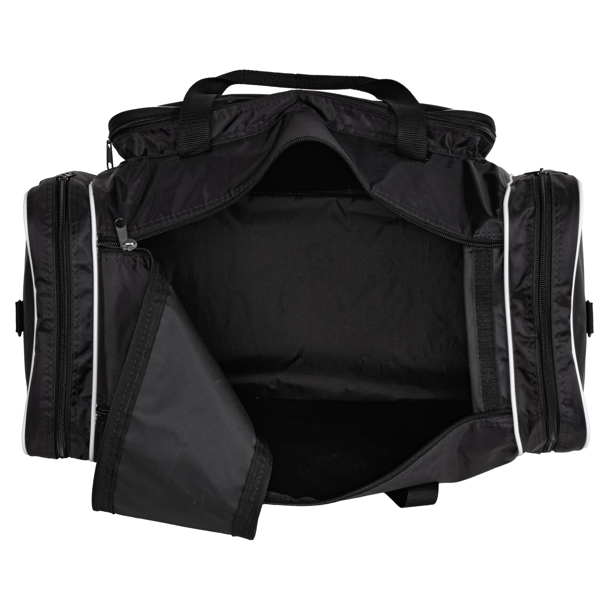 Материал – полиэстер с водоотталкивающей пропиткой. Вместительная спортивная сумка среднего размера. Одно отделение. Два боковых кармана и два кармана на передней части. В комплект входит съемный плечевой ремень. Эта сумка идеально подойдет для спорта и отдыха. Спортивная сумка для ваших вещей.