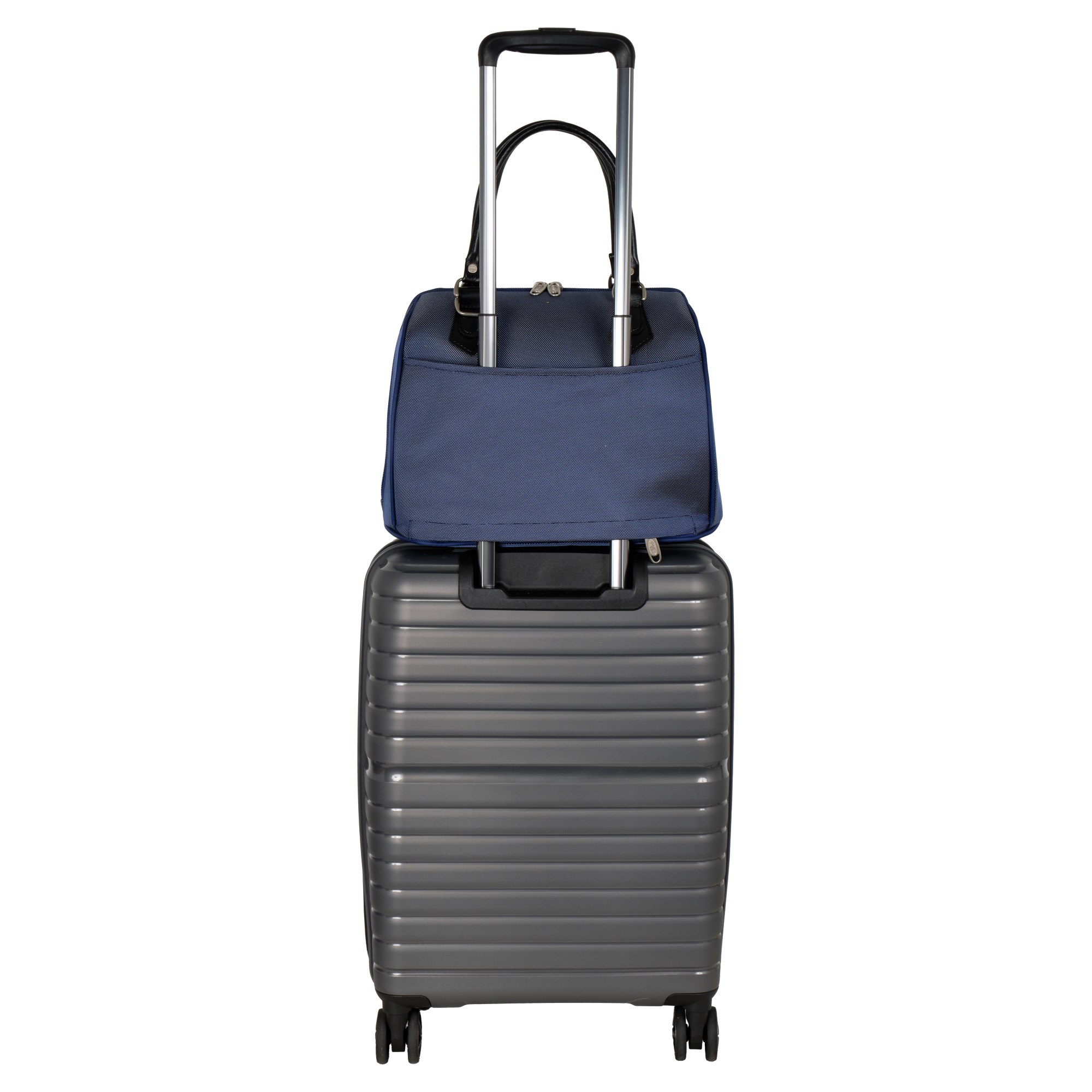 На задней стенке сумки предусмотрено крепление на ручку чемодана, но если вы застегнете молнию, то получите дополнительный карман.