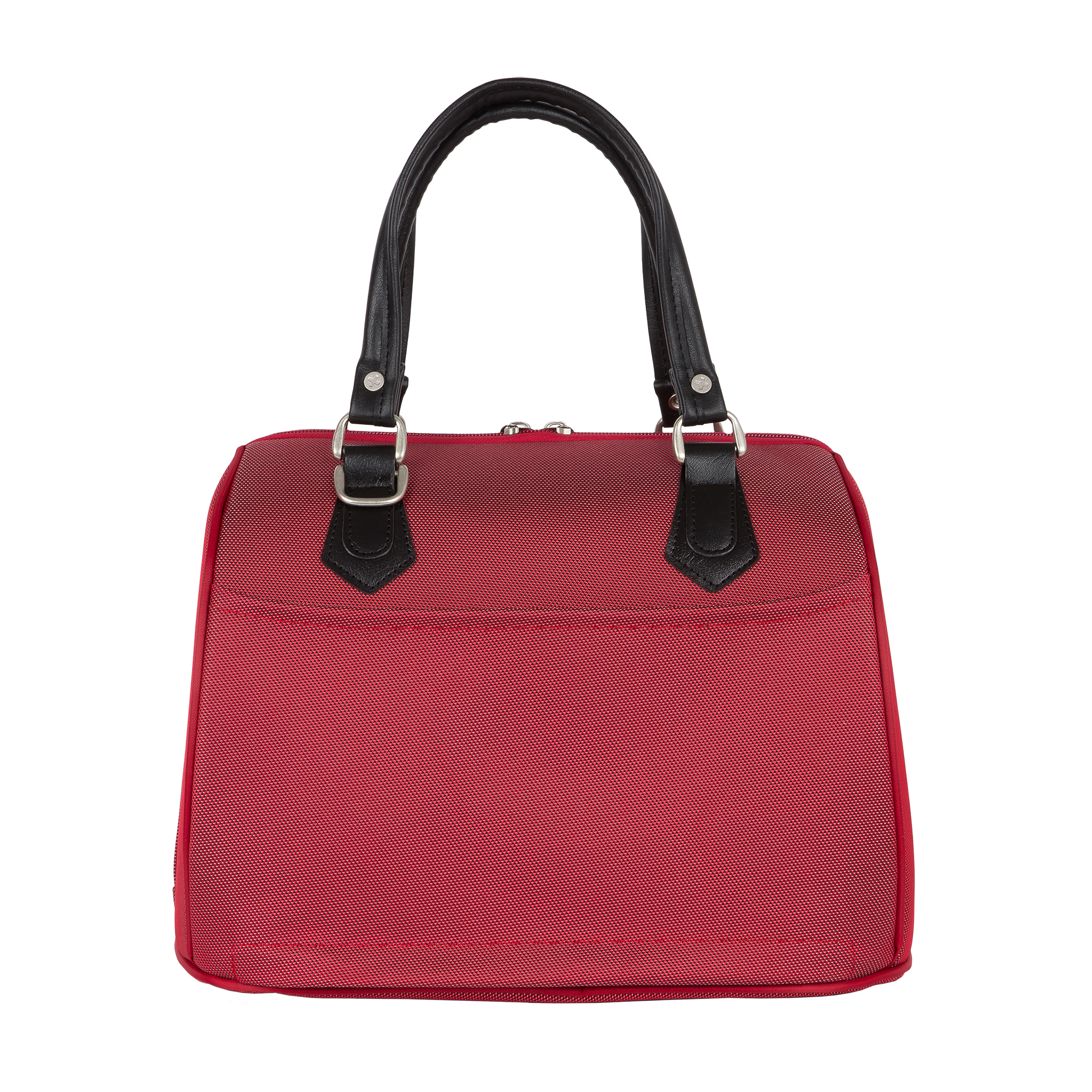 На задней стенке сумки предусмотрено крепление на ручку чемодана, но если вы застегнете молнию, то получите дополнительный карман.
