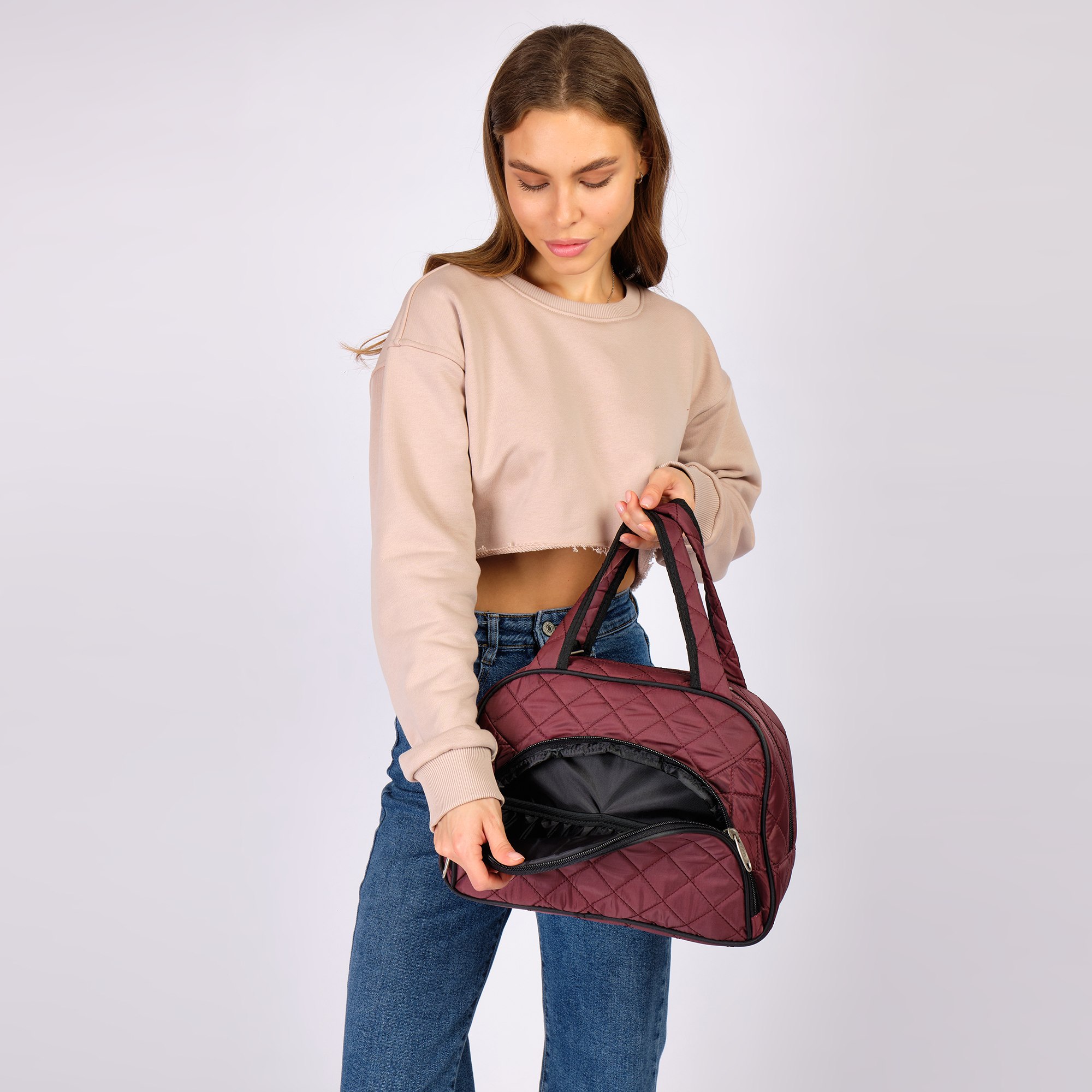 Сумка выполнена из стеганного текстиля красивых расцветок и имеет водоотталкивающую пропитку. Модель отлично держит форму, ткань устойчива к загрязнениям и при необходимости легко чистится.