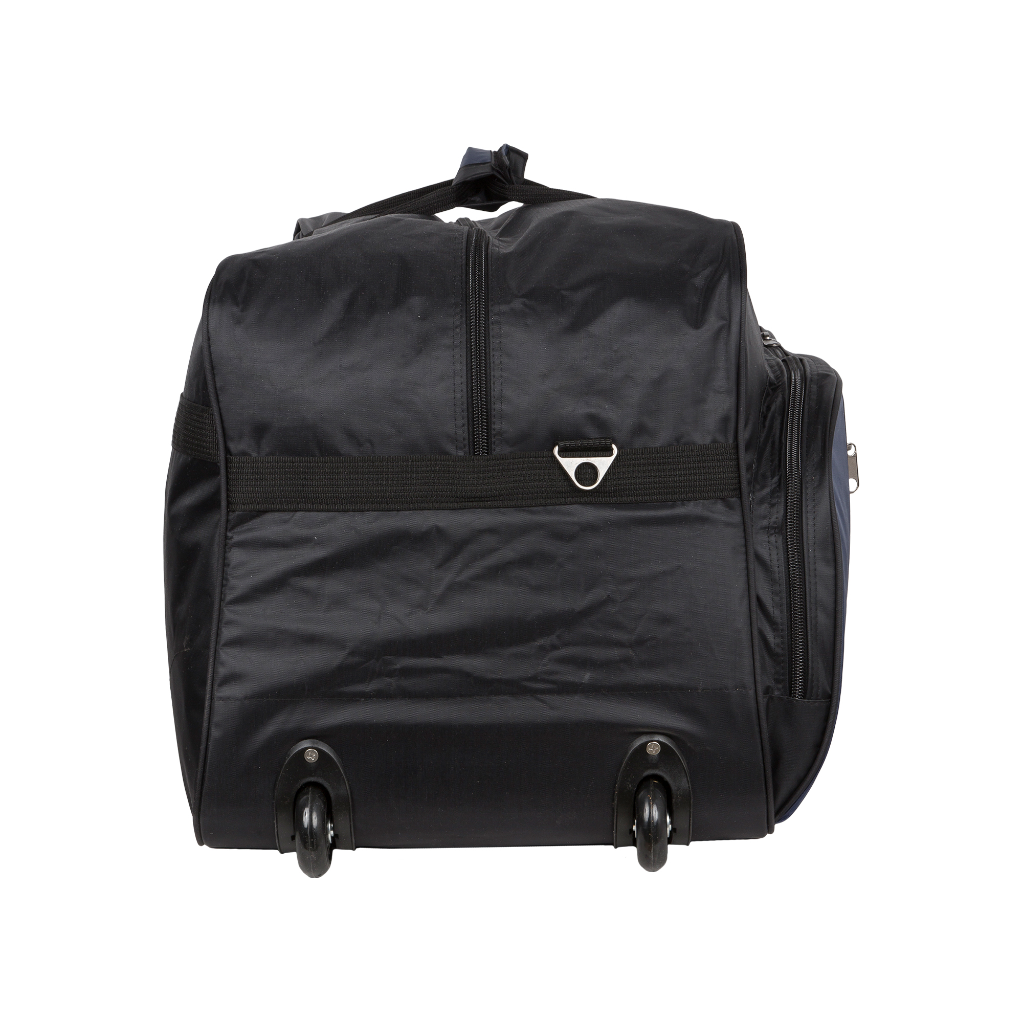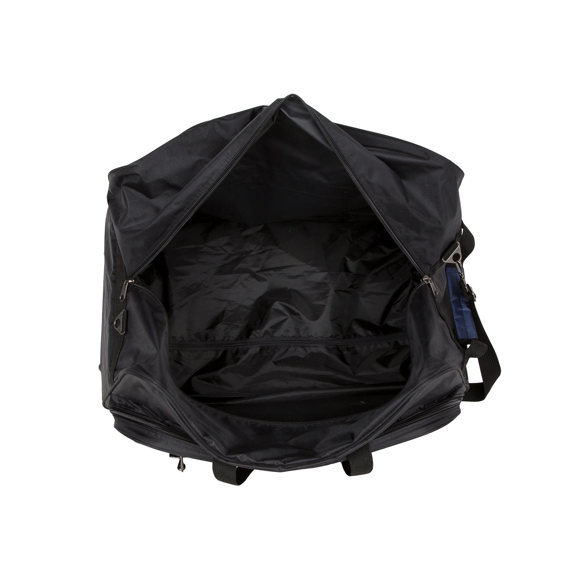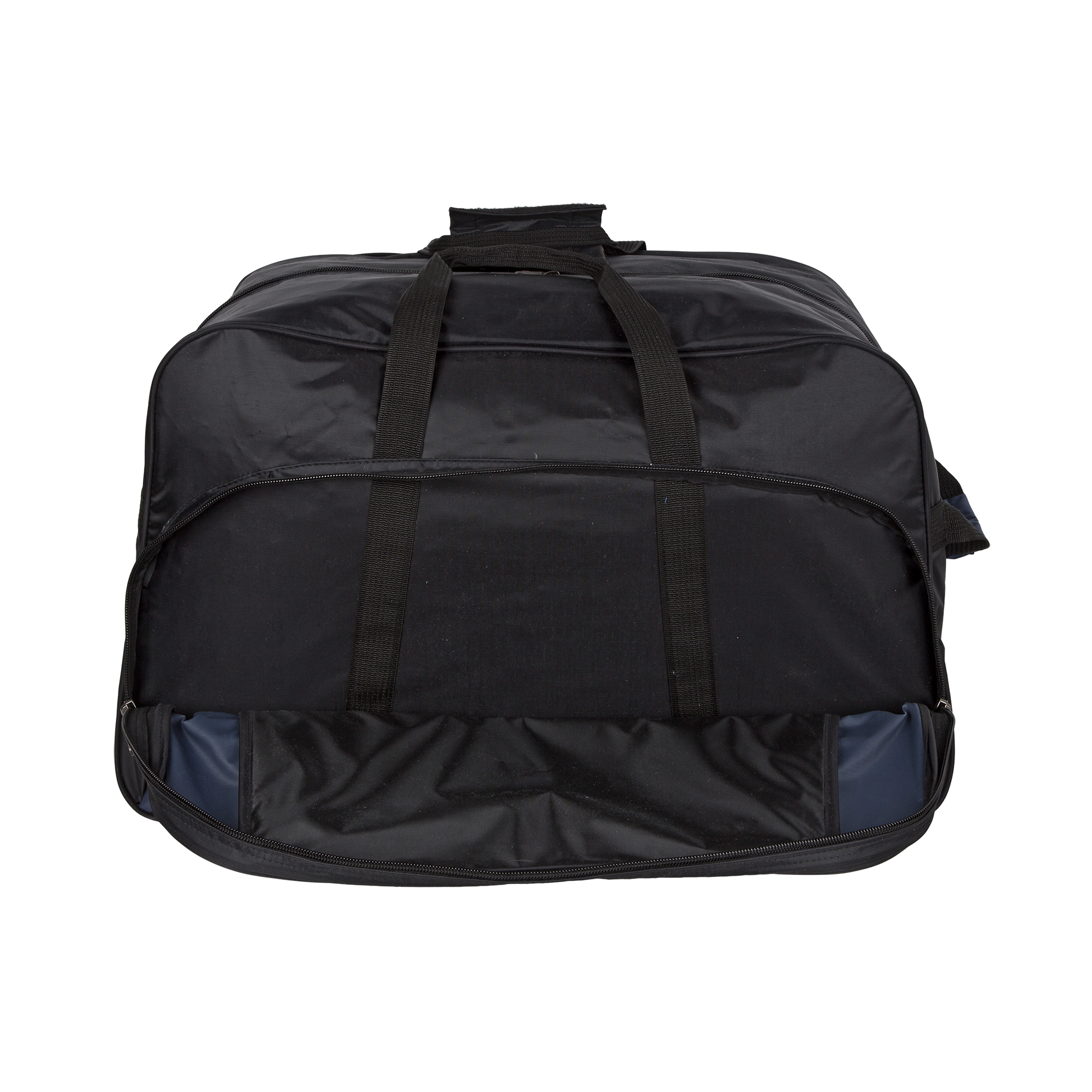 Дорожная сумка на колёсах компании POLAR изготовлена из высококачественного материала. Состоит из одного большого вместительного отделения и закрывается на молнию. Спереди сумки есть накладной карман на молнии, спереди которого в свою очередь - маленький карман на молнии .У сумки есть внутренняя тележка, ручка которой выдвигается на 25 см.. Сумку можно переносить в руках с помощью двух ручек и на плече (в комплект входит съёмный регулируемый по длине ремень).
