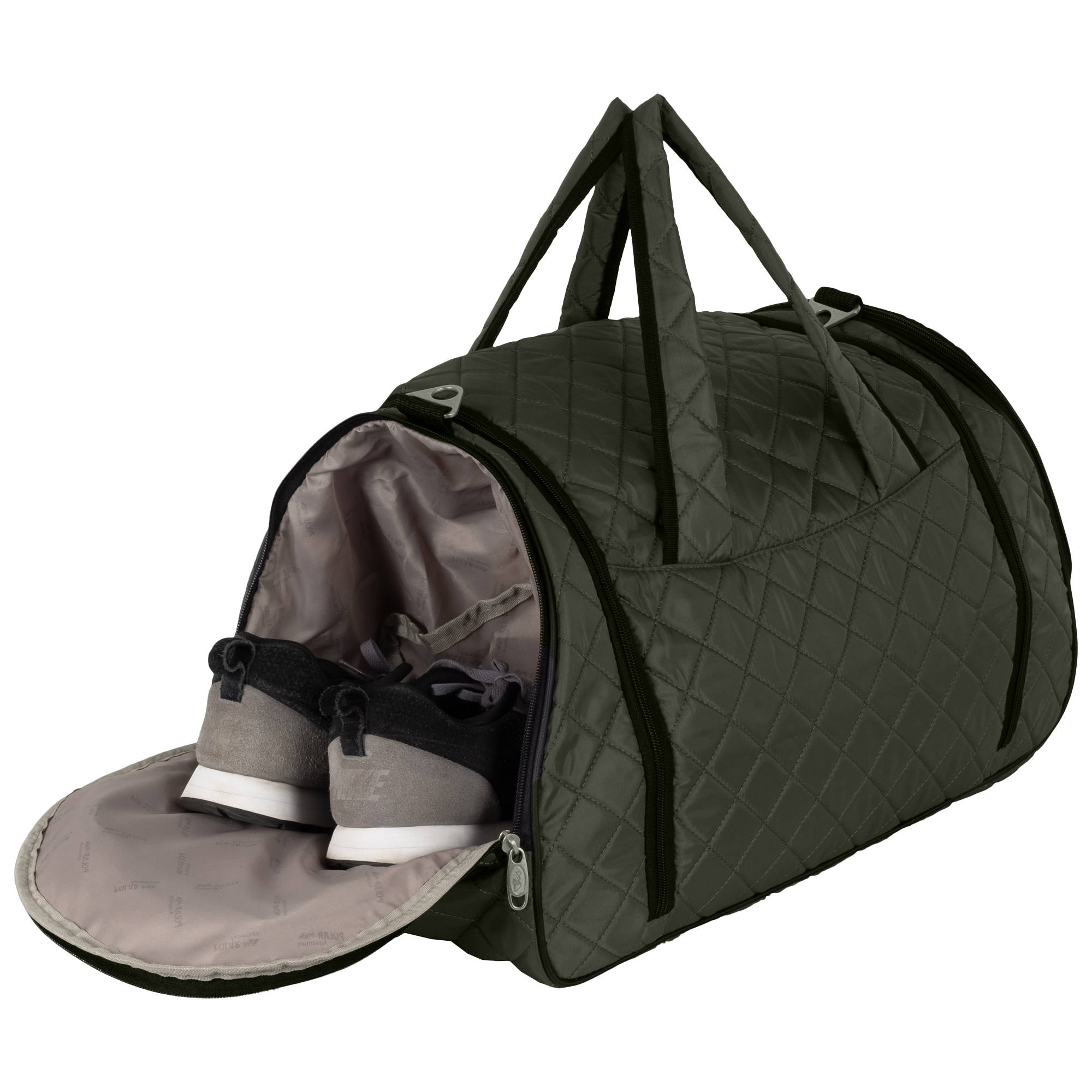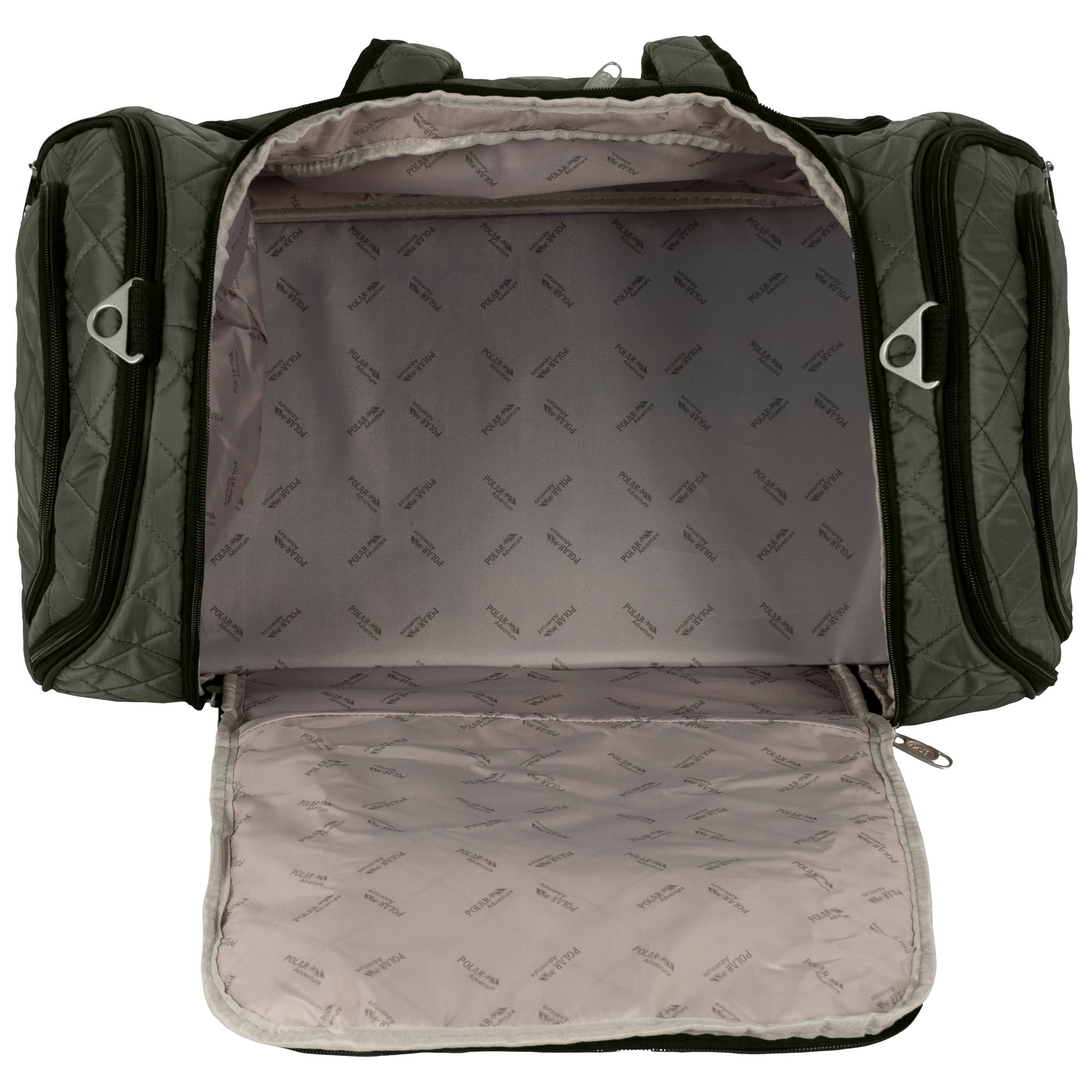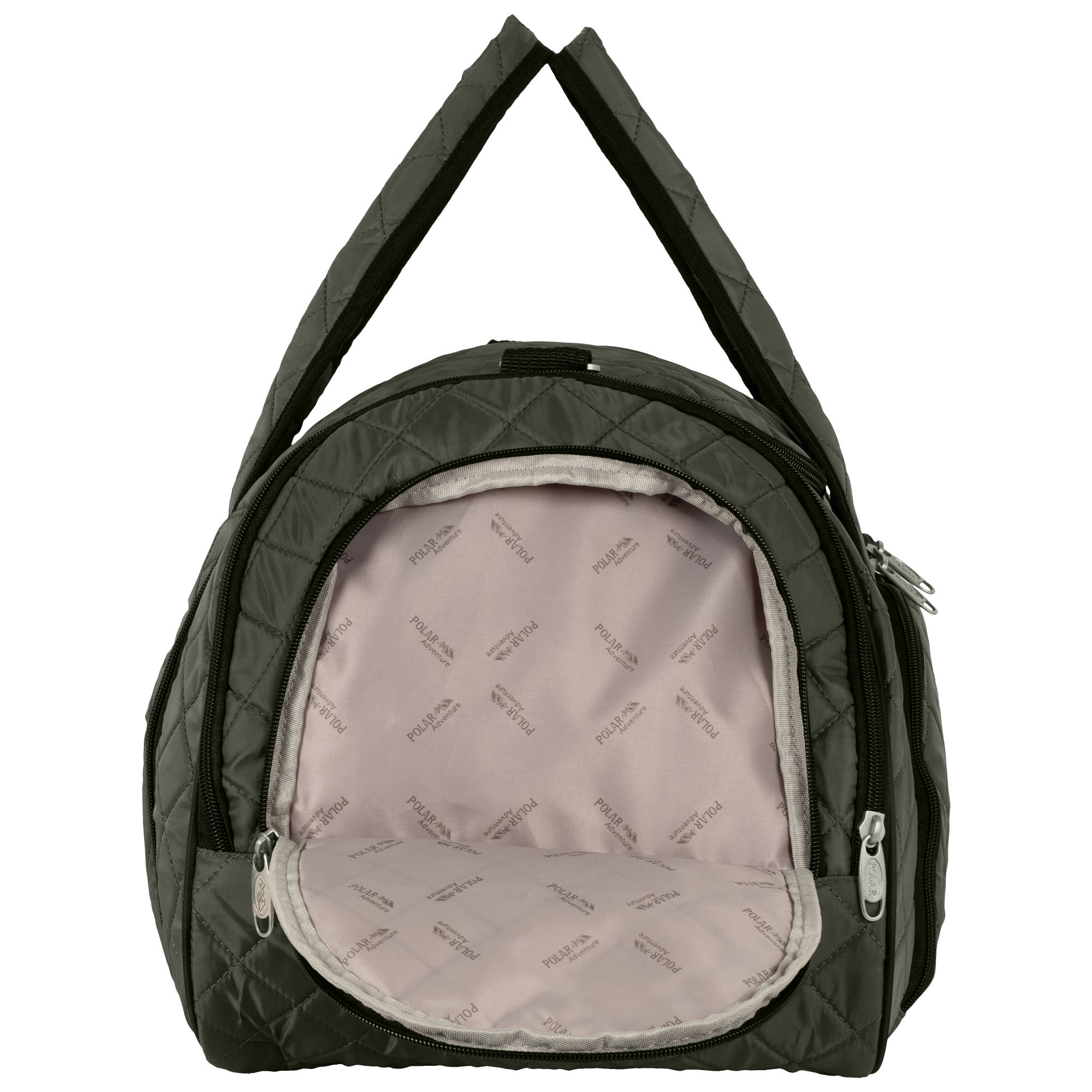 Вместительная и удобная дорожная сумка Polar . Материал - Стеганый Полиэстер с подложкой синтепона.Основное отделение закрывается на молнию. Один из боковых карманов предназначен для обуви. Дополнительно снаружи большой карман на молнии спереди сумки и небольшие карманы по бокам. Сумка имеет мягкую конструкцию. В комплекте регулируемый съемный плечевой ремень.