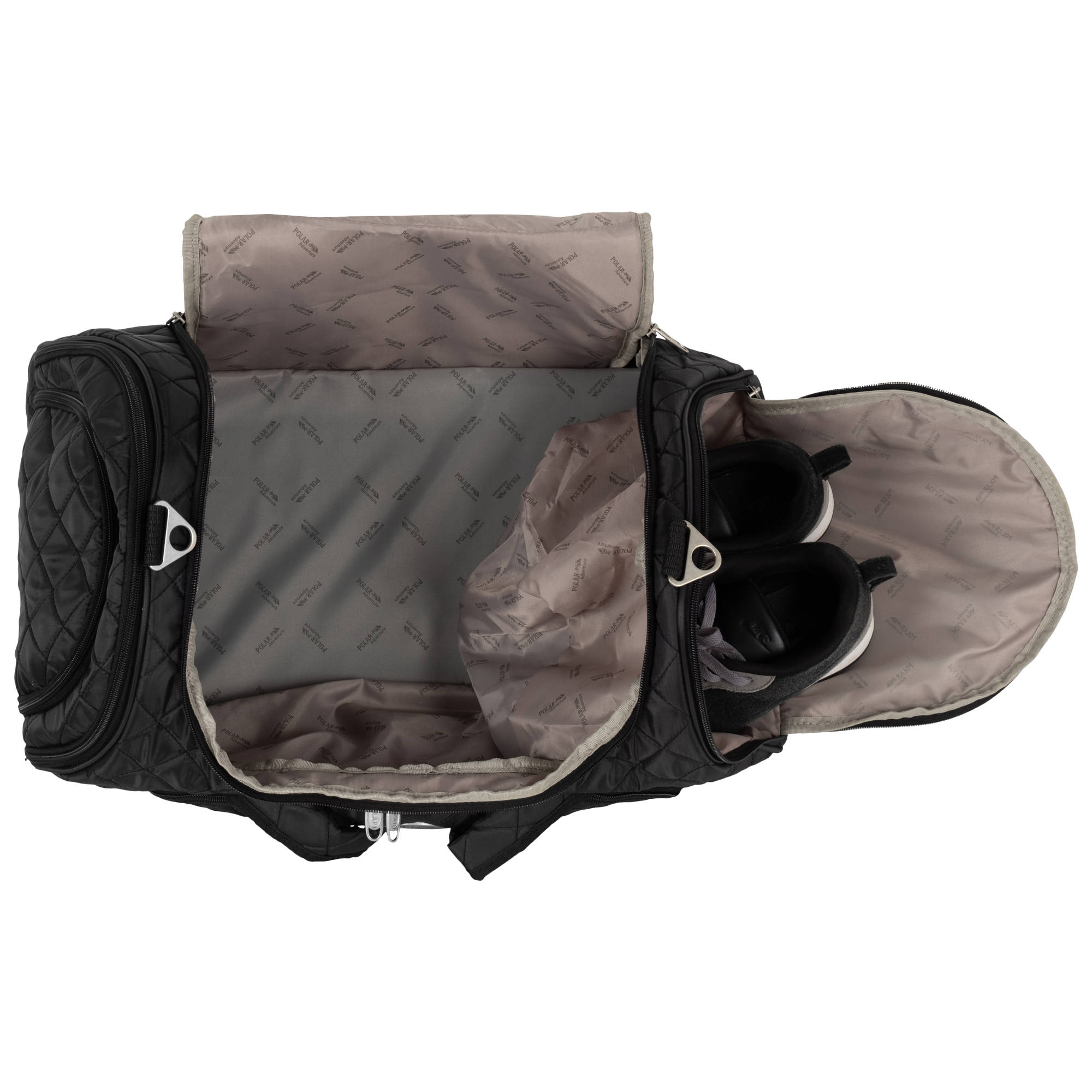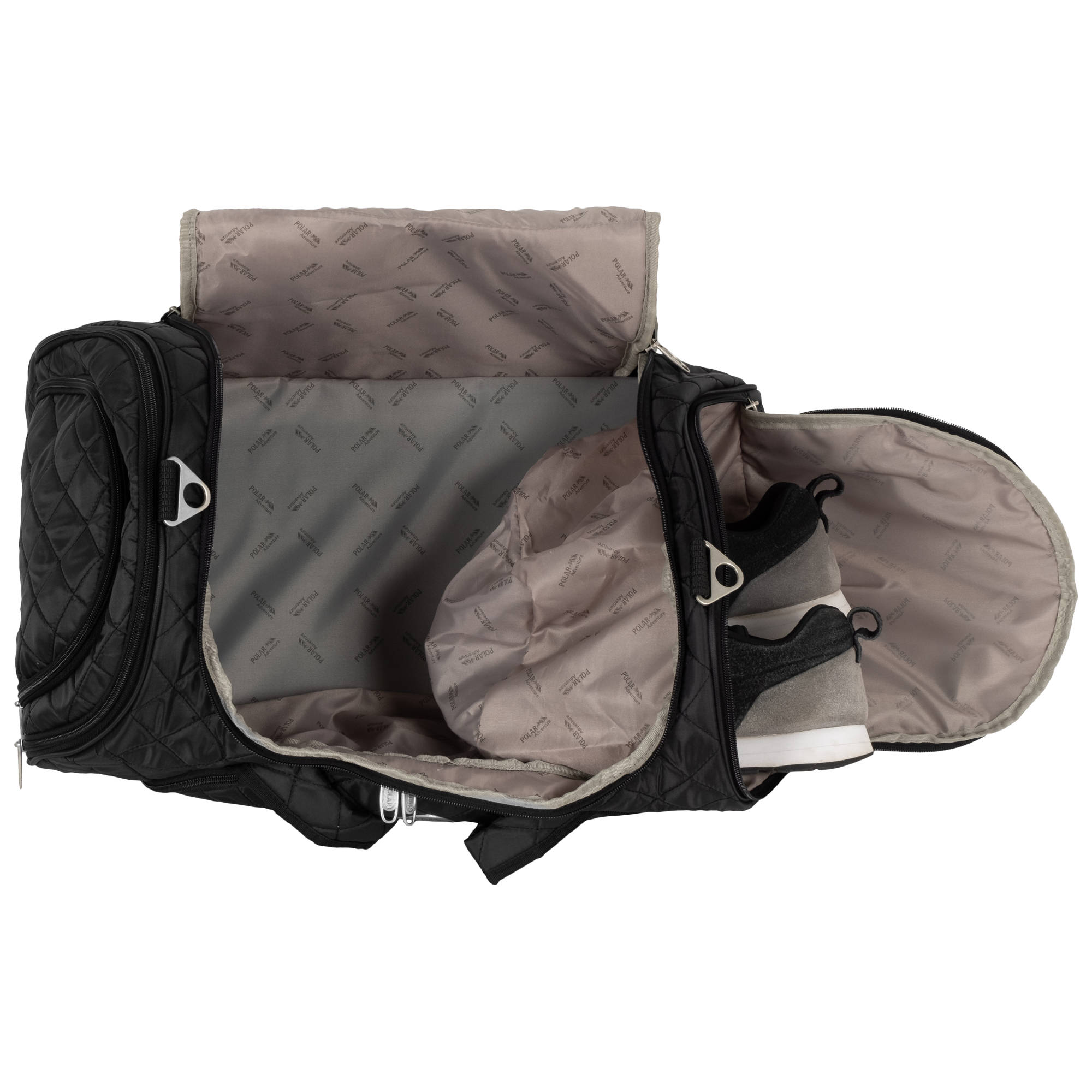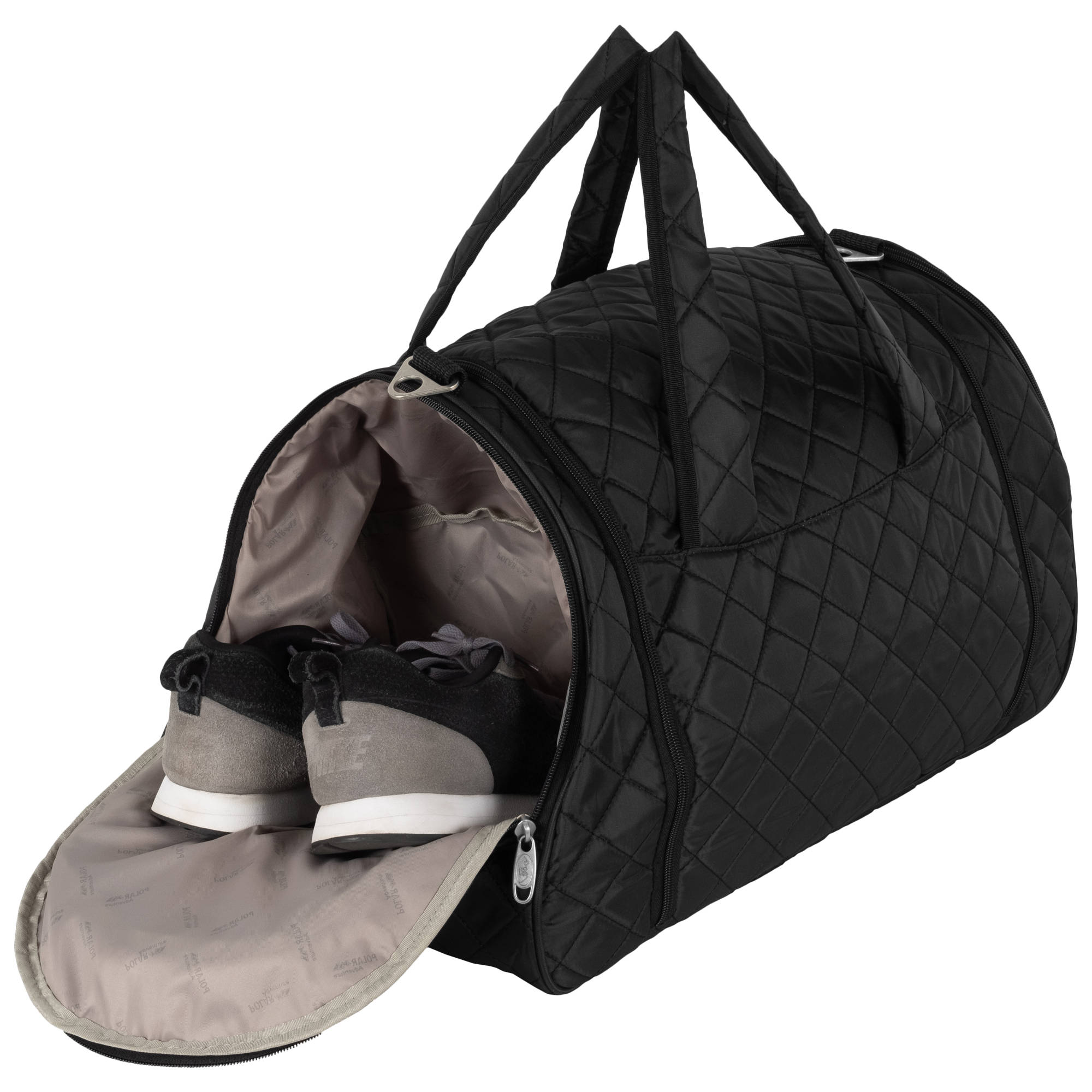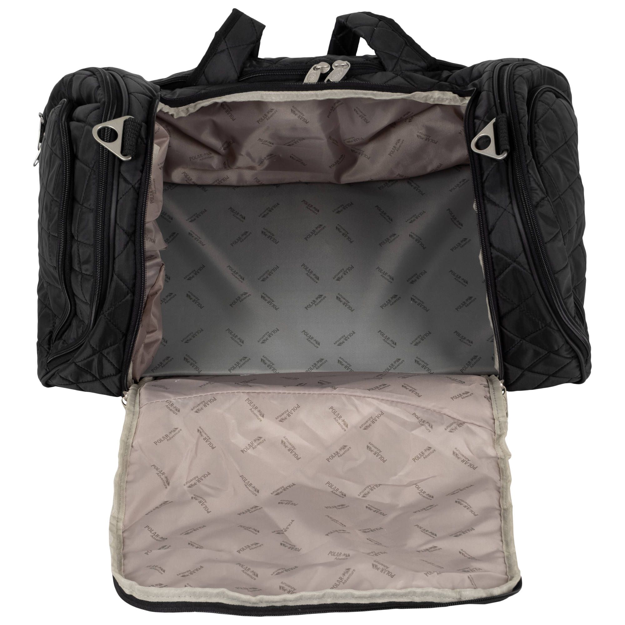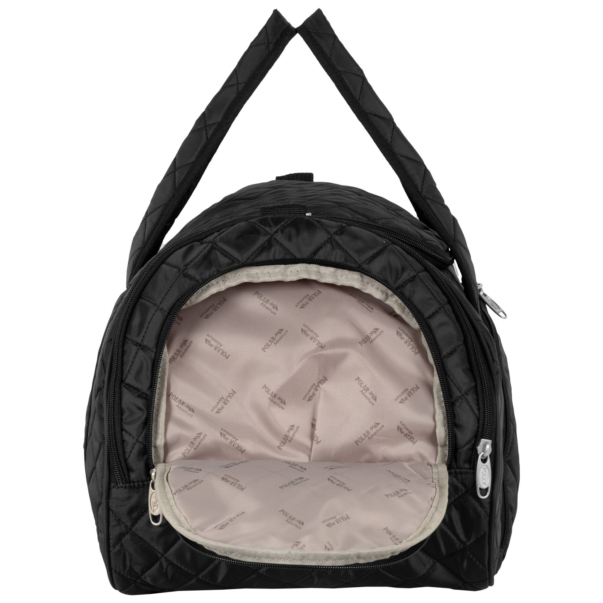Вместительная и удобная дорожная сумка Polar . Материал - Стеганый Полиэстер с подложкой синтепона.Основное отделение закрывается на молнию. Один из боковых карманов предназначен для обуви. Дополнительно снаружи большой карман на молнии спереди сумки и небольшие карманы по бокам. Сумка имеет мягкую конструкцию. В комплекте регулируемый съемный плечевой ремень.