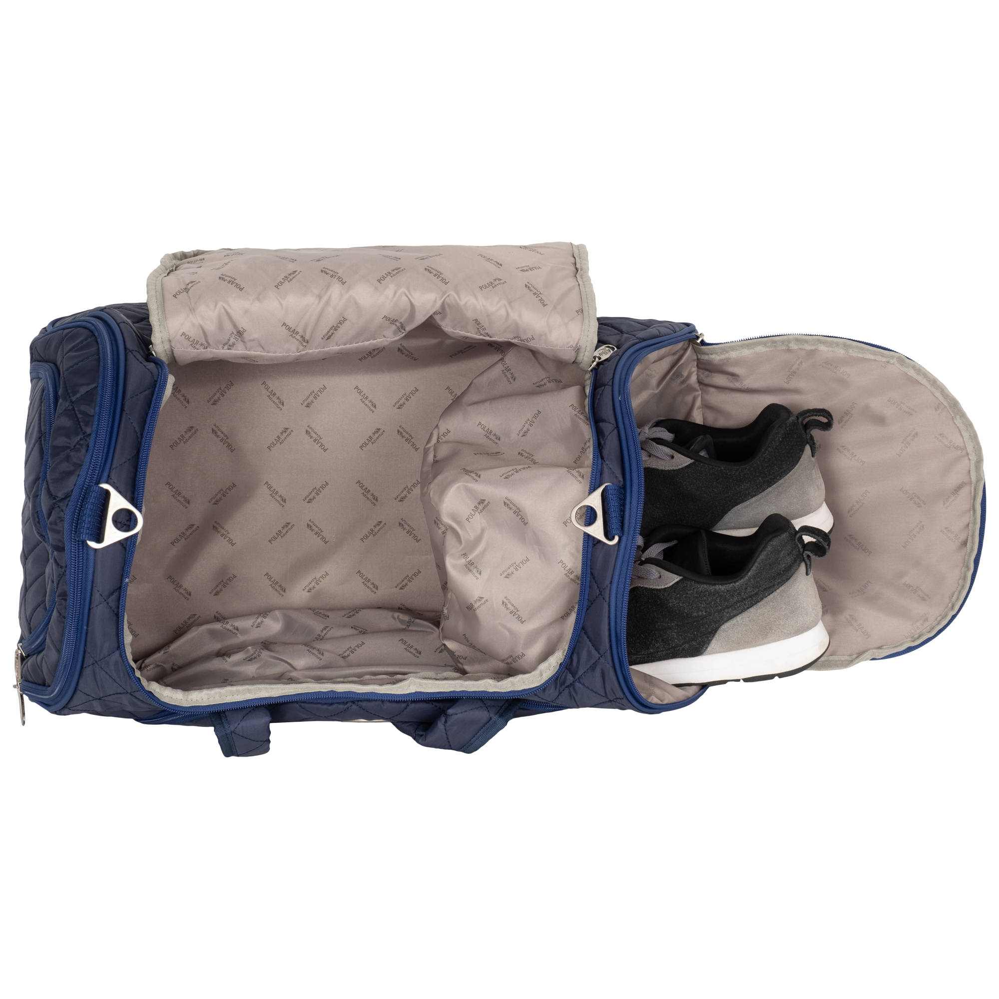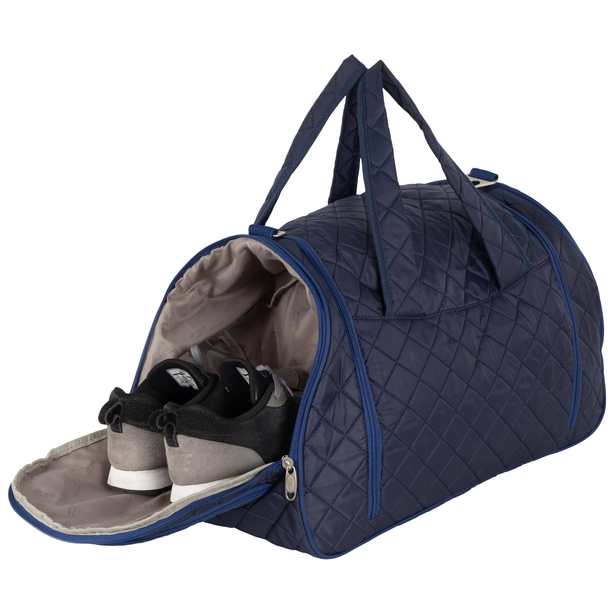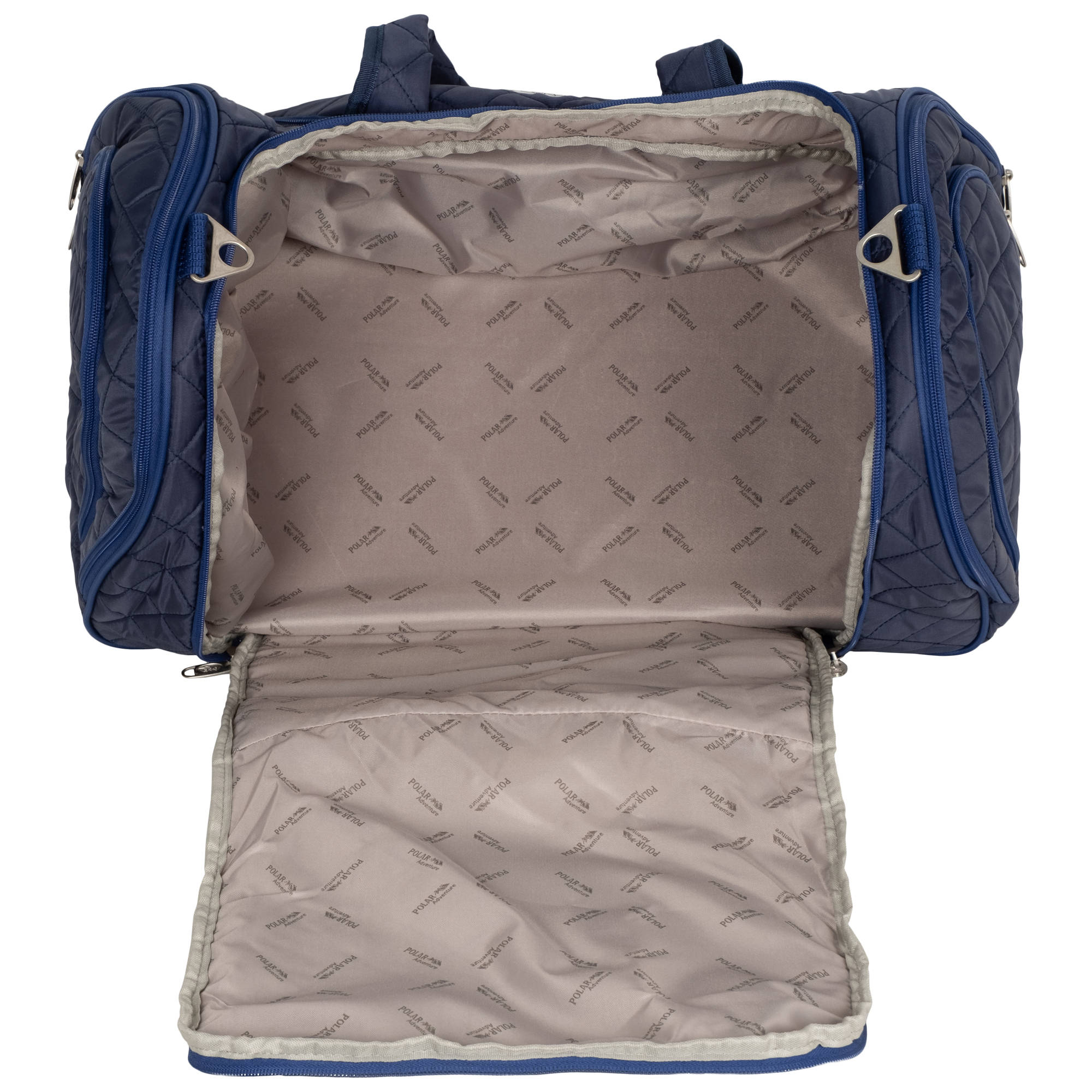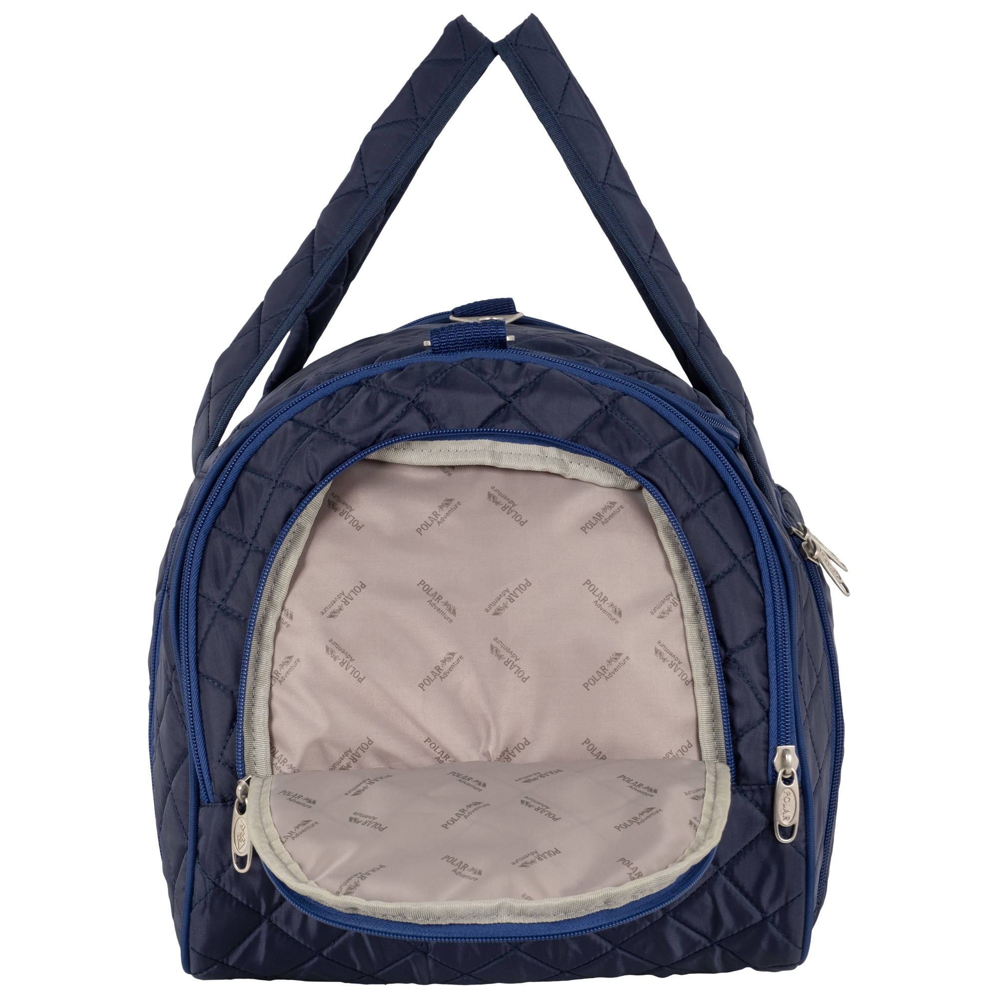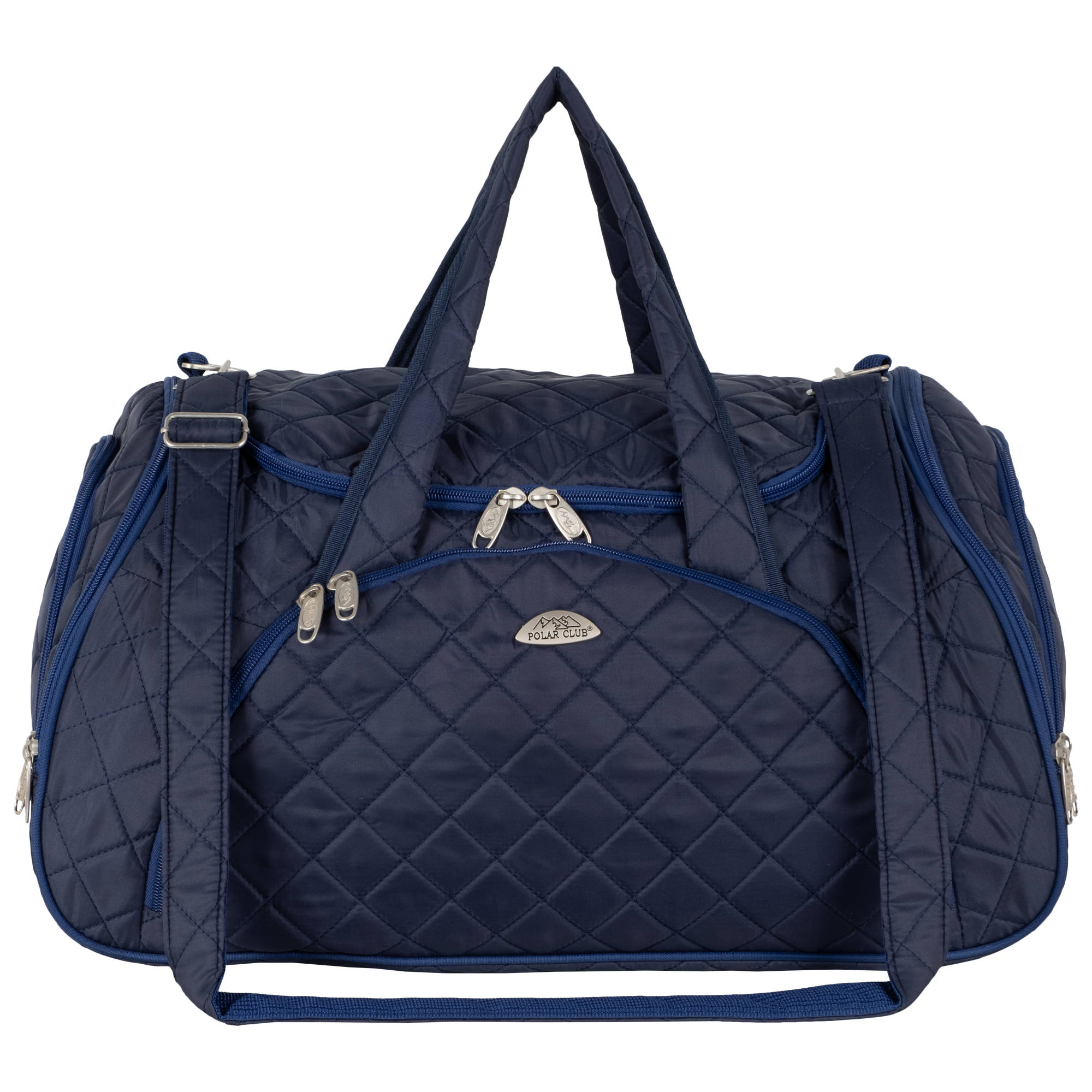 Вместительная и удобная дорожная сумка Polar . Материал - Стеганый Полиэстер с подложкой синтепона.Основное отделение закрывается на молнию. Один из боковых карманов предназначен для обуви. Дополнительно снаружи большой карман на молнии спереди сумки и небольшие карманы по бокам. Сумка имеет мягкую конструкцию. В комплекте регулируемый съемный плечевой ремень.