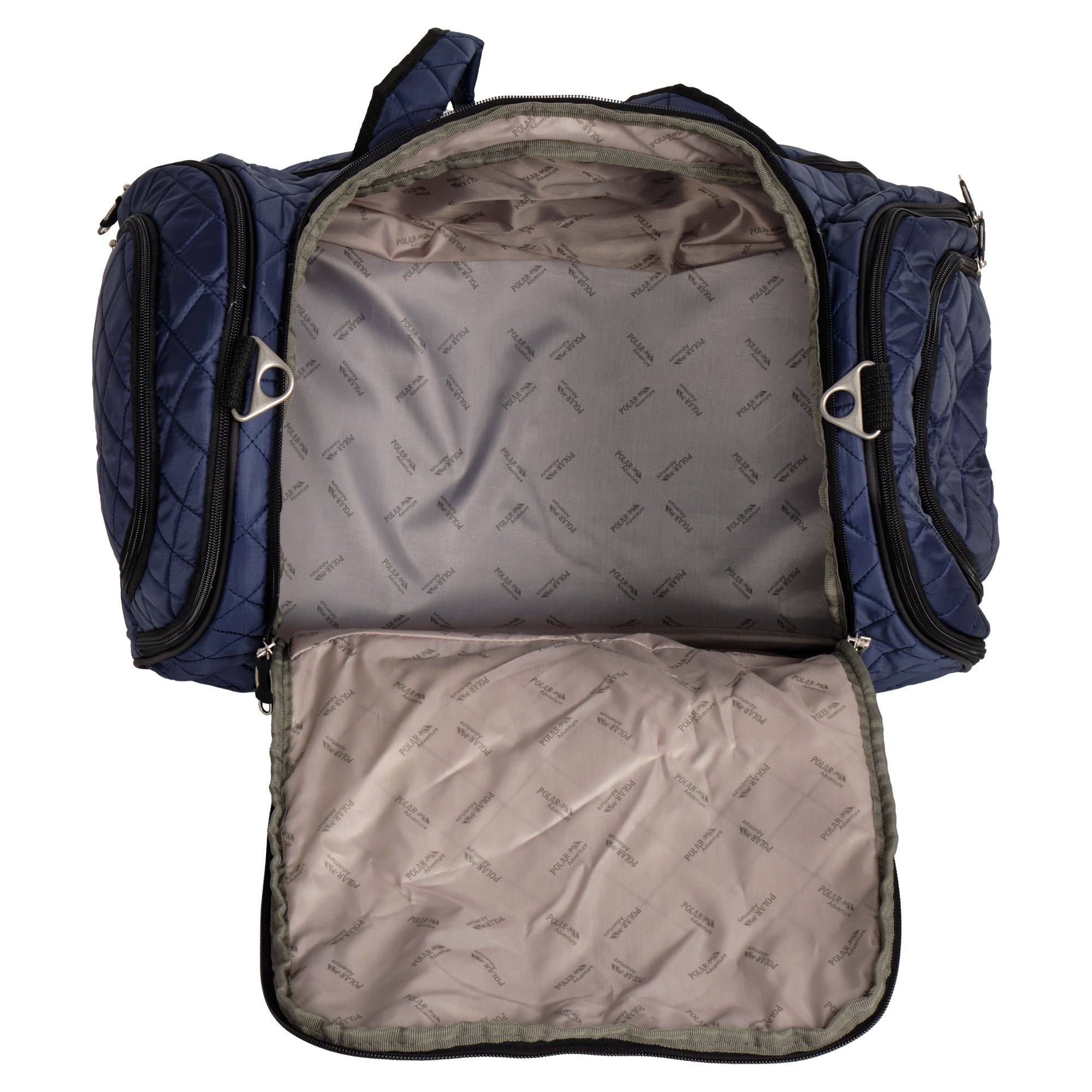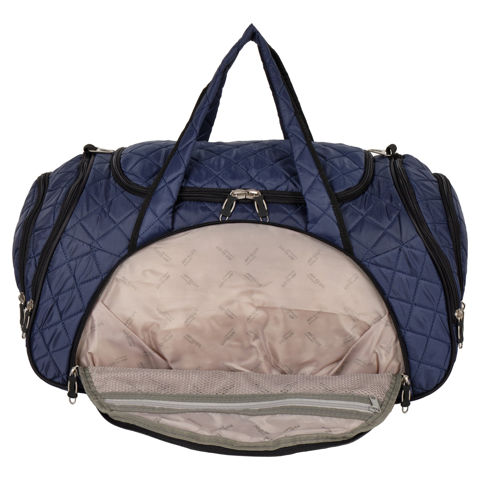 Вместительная и удобная дорожная сумка Polar . Материал - Стеганый Полиэстер с подложкой синтепона.Основное отделение закрывается на молнию. Один из боковых карманов предназначен для обуви. Дополнительно снаружи большой карман на молнии спереди сумки и небольшие карманы по бокам. Сумка имеет мягкую конструкцию. В комплекте регулируемый съемный плечевой ремень.