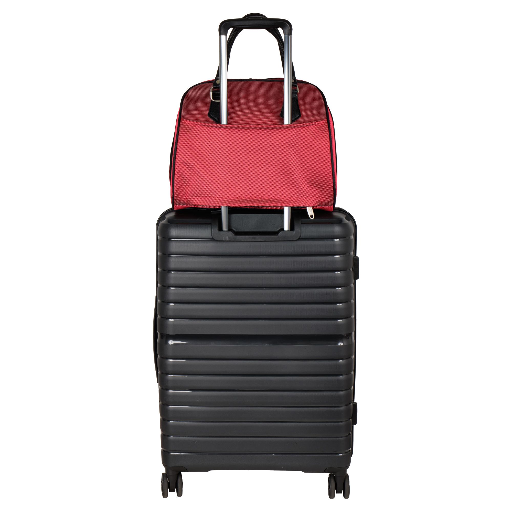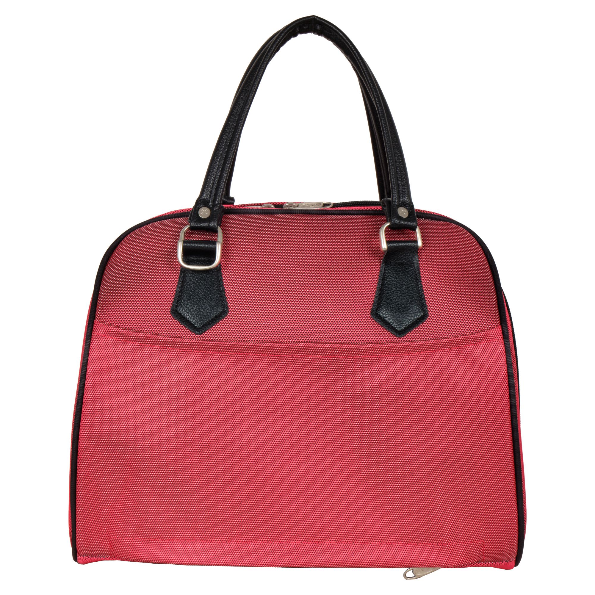 На задней стенке сумки предусмотрено крепление на ручку чемодана, но если вы застегнете молнию, то получите дополнительный карман.
