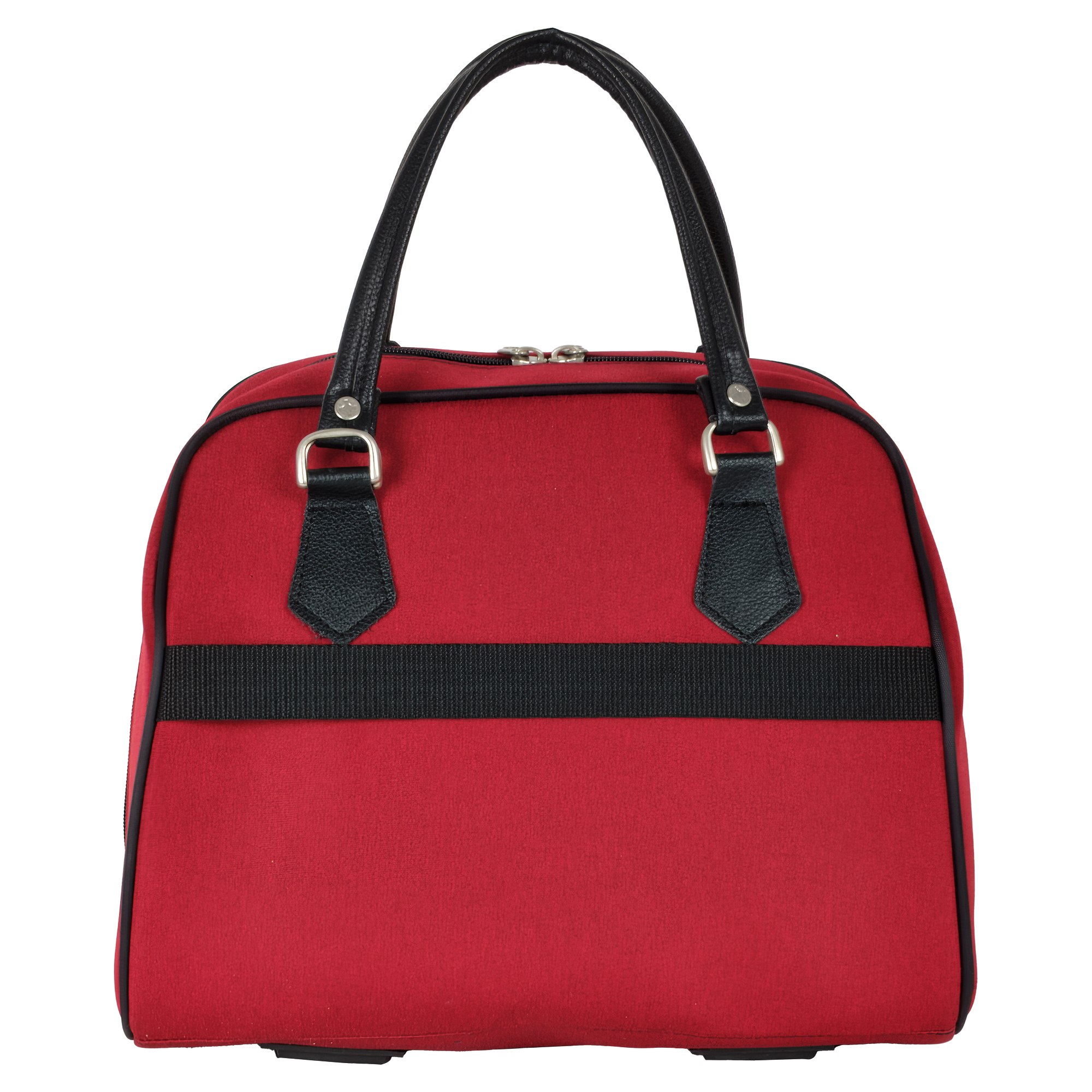 На задней стенке сумки предусмотрено крепление на ручку чемодана, но если вы застегнете молнию, то получите дополнительный карман.