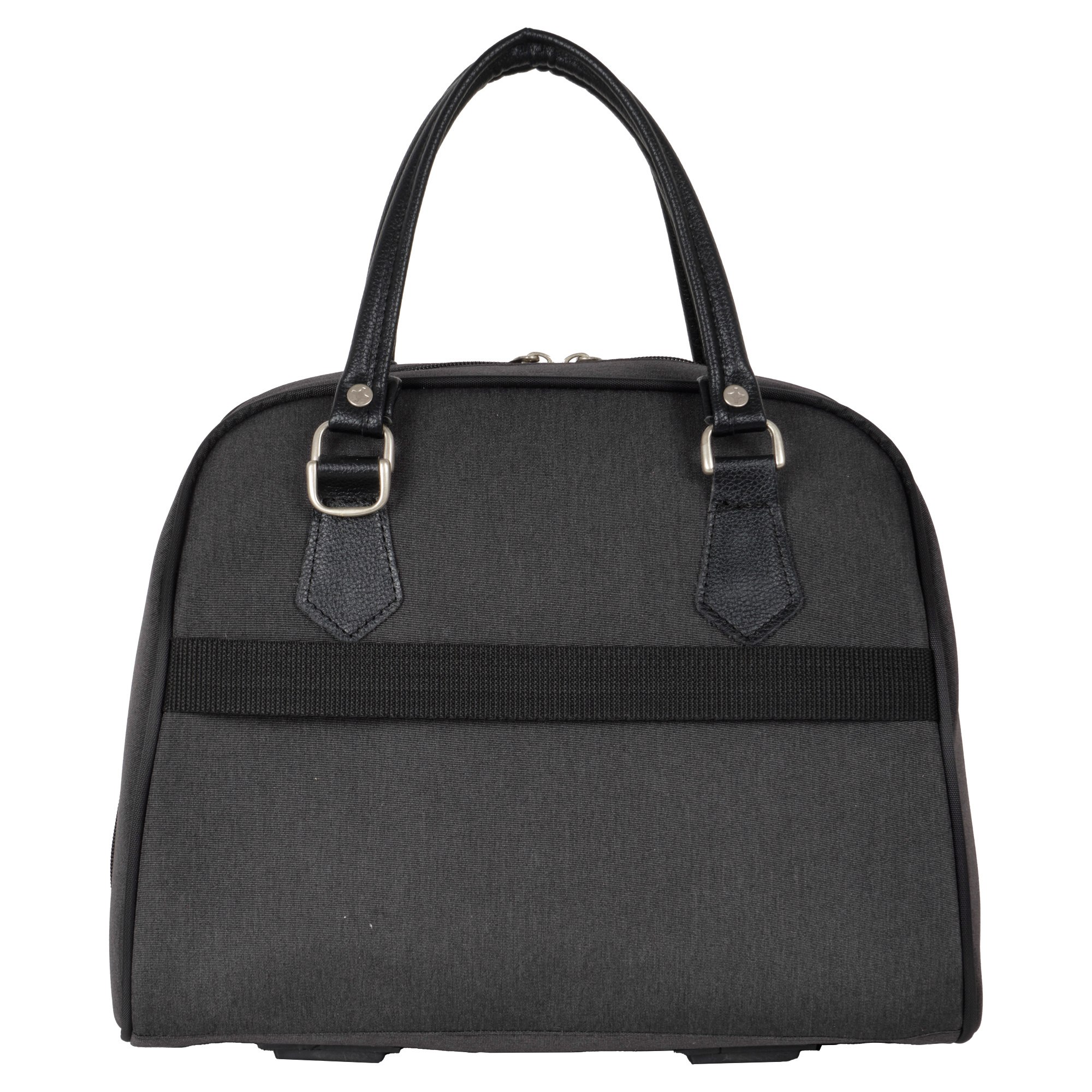 На задней стенке сумки предусмотрено крепление на ручку чемодана, но если вы застегнете молнию, то получите дополнительный карман.