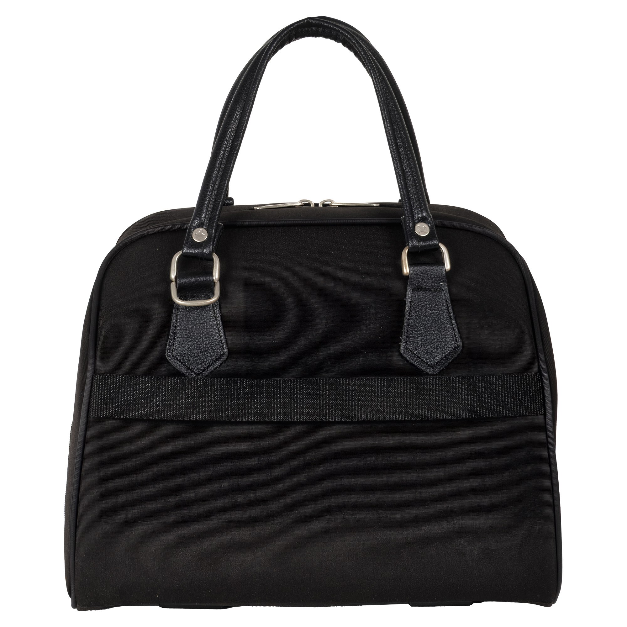 На задней стенке сумки предусмотрено крепление на ручку чемодана, но если вы застегнете молнию, то получите дополнительный карман.