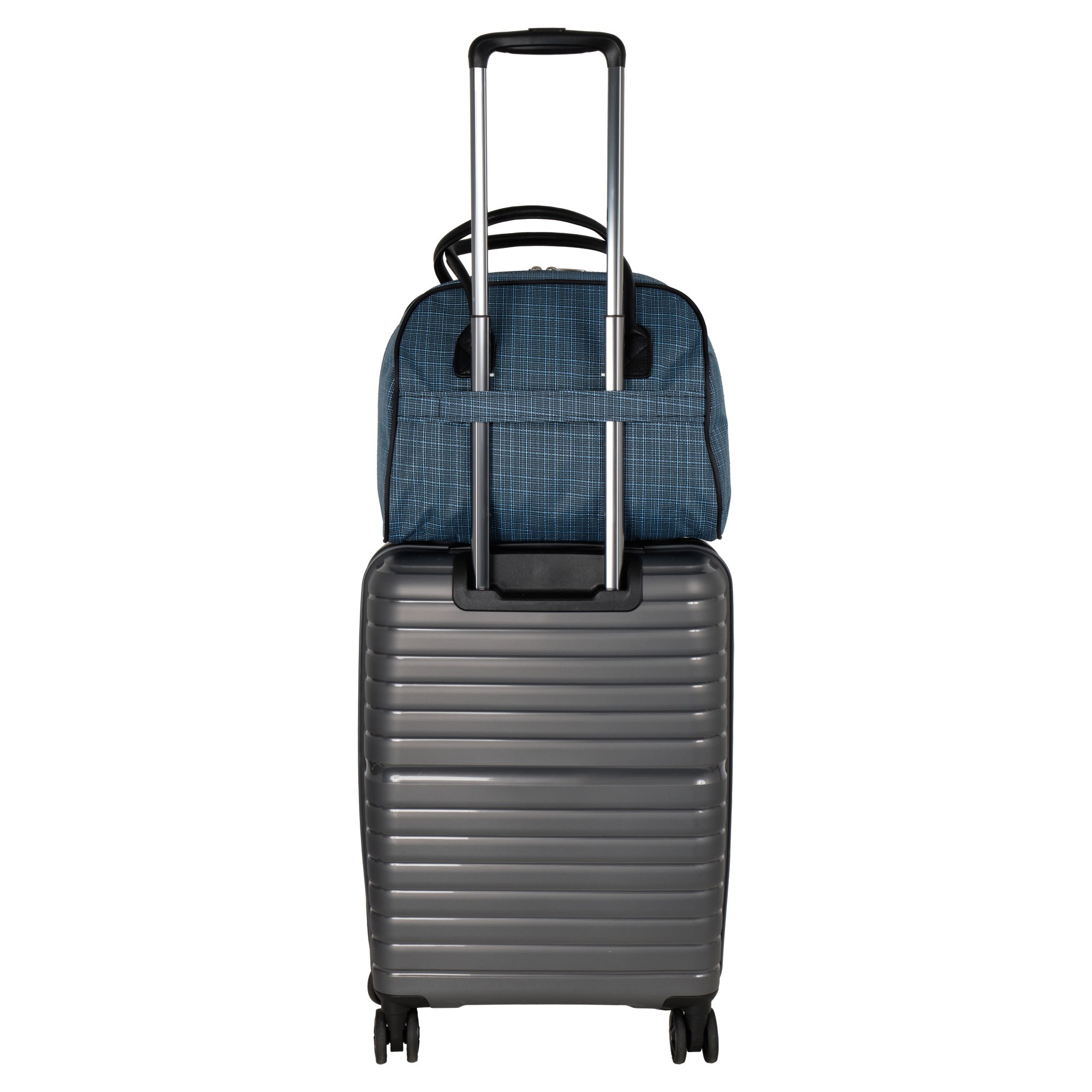На задней стенке сумки предусмотрено крепление на ручку чемодана.