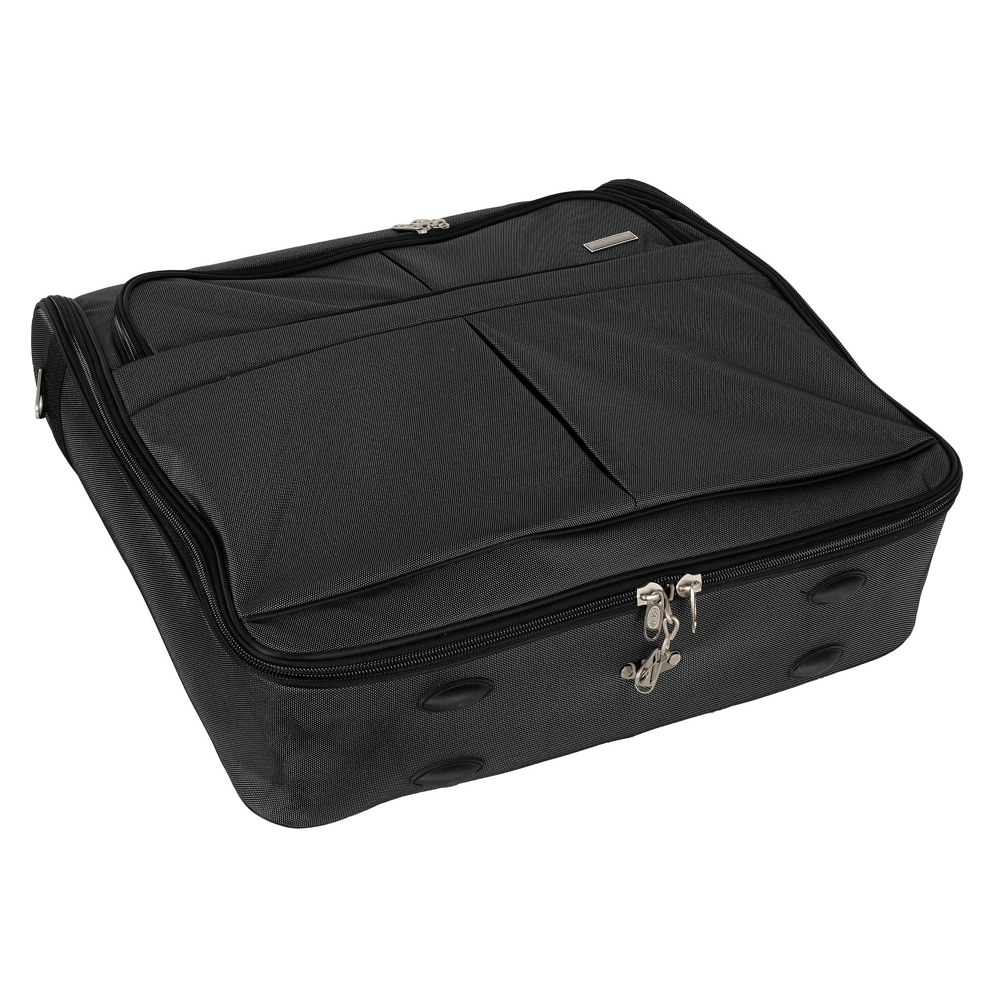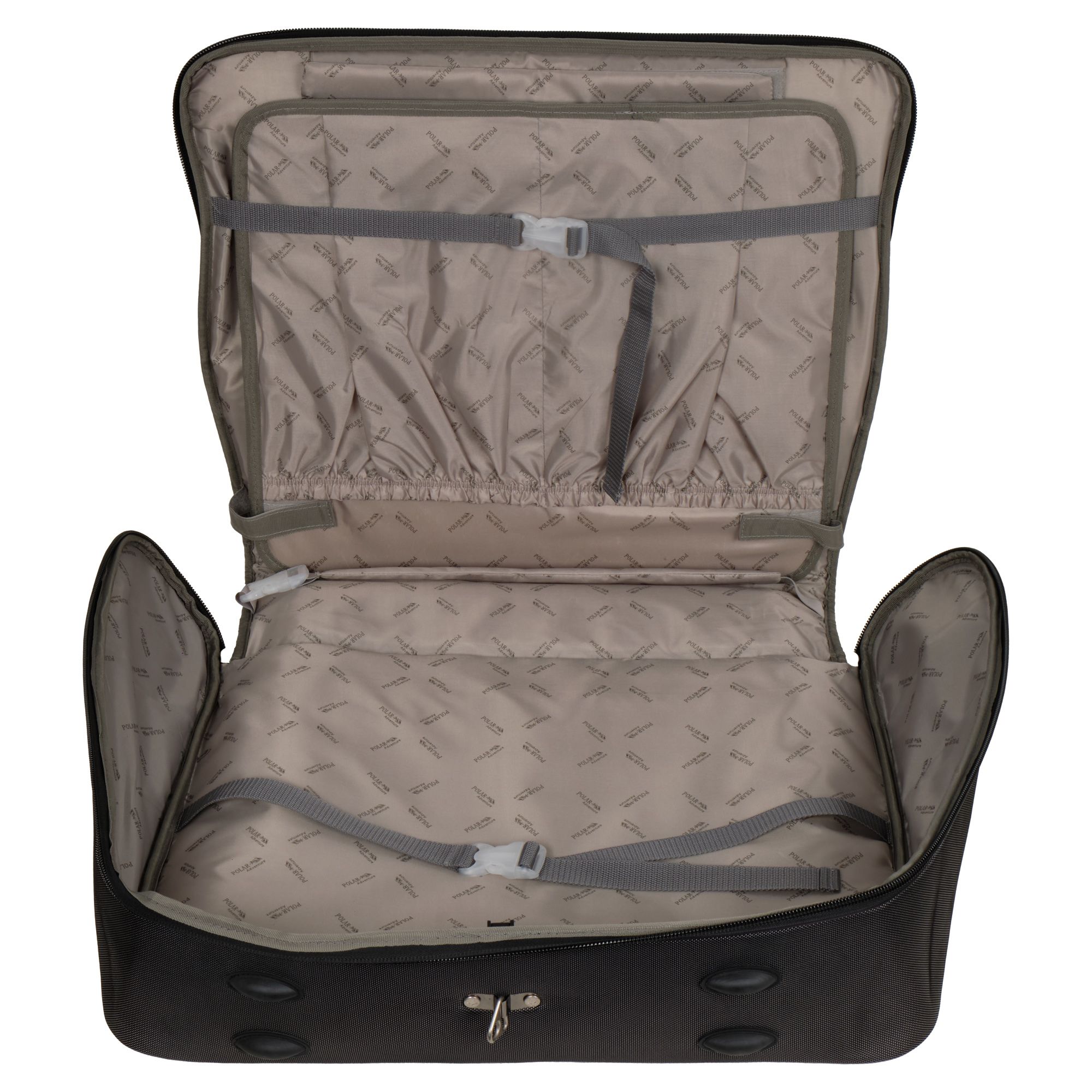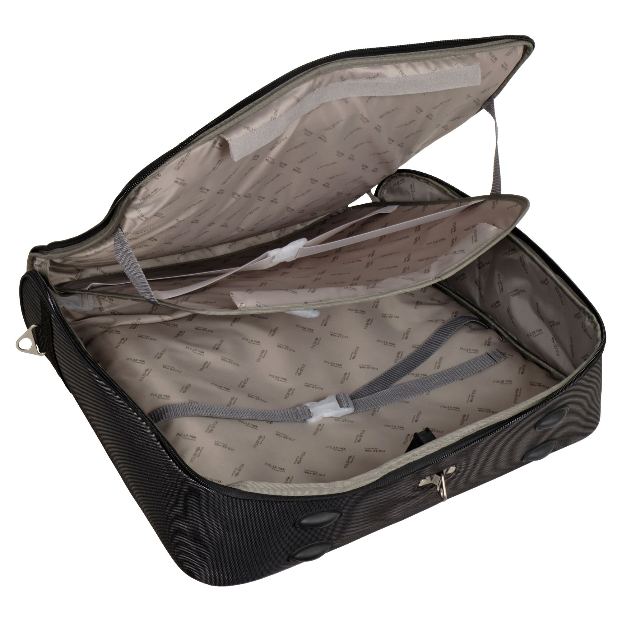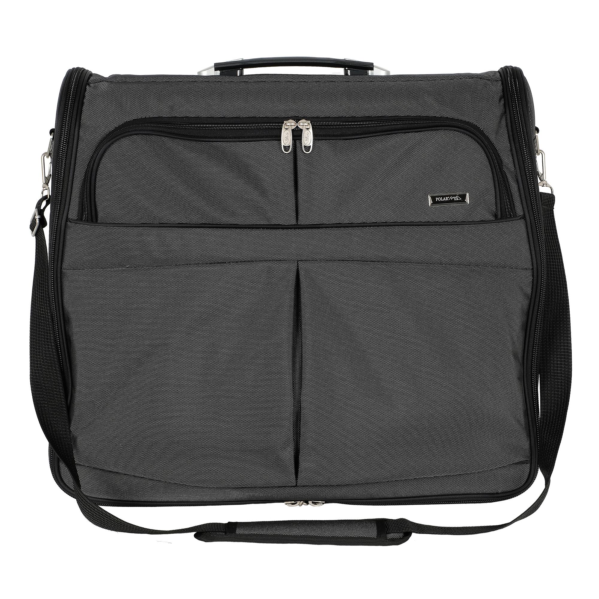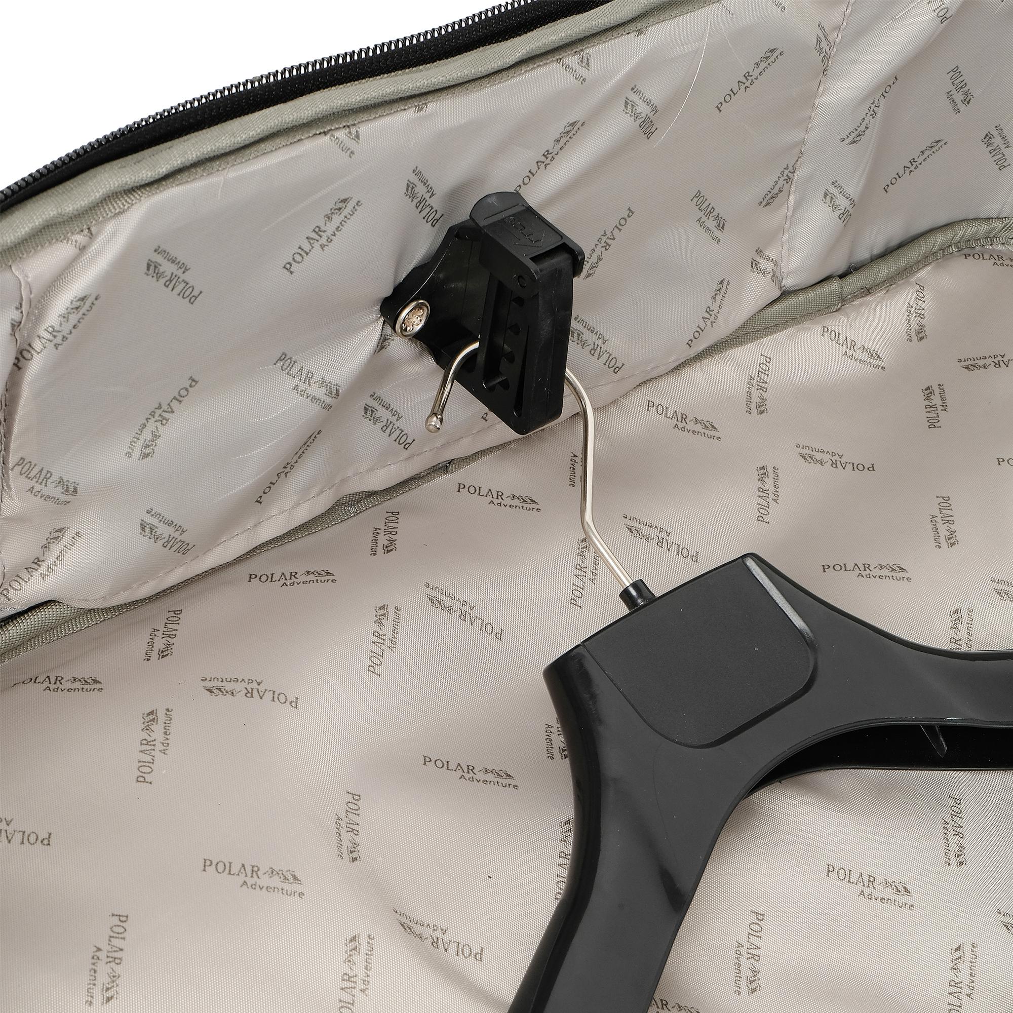 Портплед POLAR Полар – это дорожная сумка – чехол для переноски и хранения костюмов, рубашек, платья. Изготовлен из материалов премиум класса, высококачественный полиэстер, надежный прочный с водоотталкивающей пропиткой, который не выгорает, не трескается на морозе, устойчив к перепаду температур. Портплед для одежды удобен для перевозки деловых костюмов в командировке. Внутри сумки-портпледа фиксатор для одежды с креплением на 4 вешалки.  В портпледе есть отделение на липучке для рубашек, футболок с фиксирующими ремнями. Большой глубокий карман на резинке для необходимых вещей, которые нужно взять с собой (галстук, платок, шарф, папка с документами, кошелек, майка, футболка и другое).  Снаружи, на передней стенке портпледа, имеется объёмный и плоский карман на молнии для деловых бумаг и папок. Задний большой карман на молнии. Портплед для одежды мужской, женский, унисекс. Для удобства переноски есть плечевой ремень и надежная ручка для переноски. Вешалка в комплект не входит. Перед покупкой уточните у своего авиаперевозчика допустимые габариты для провоза ручной клади, чтобы определить подходит вам эта модель или нет.