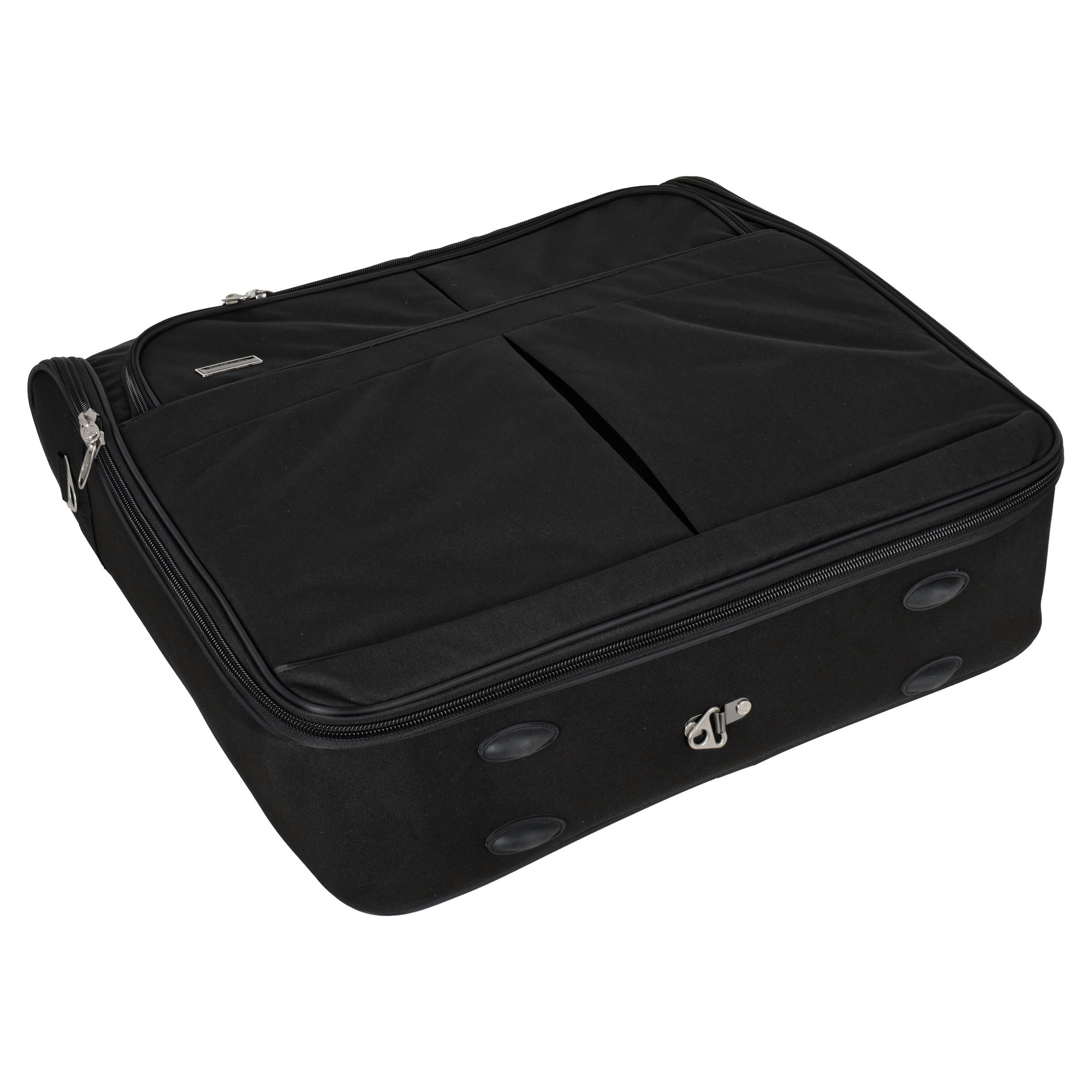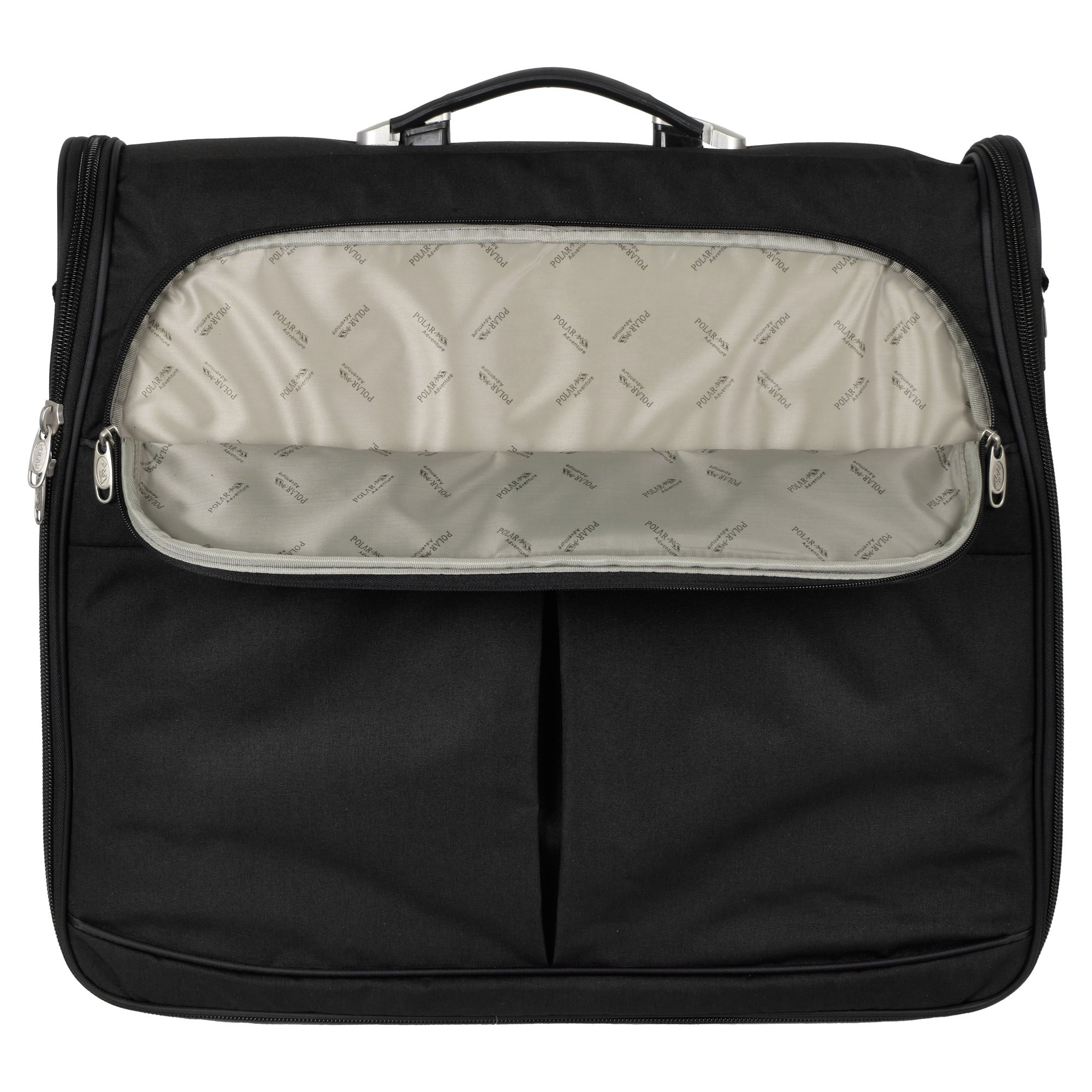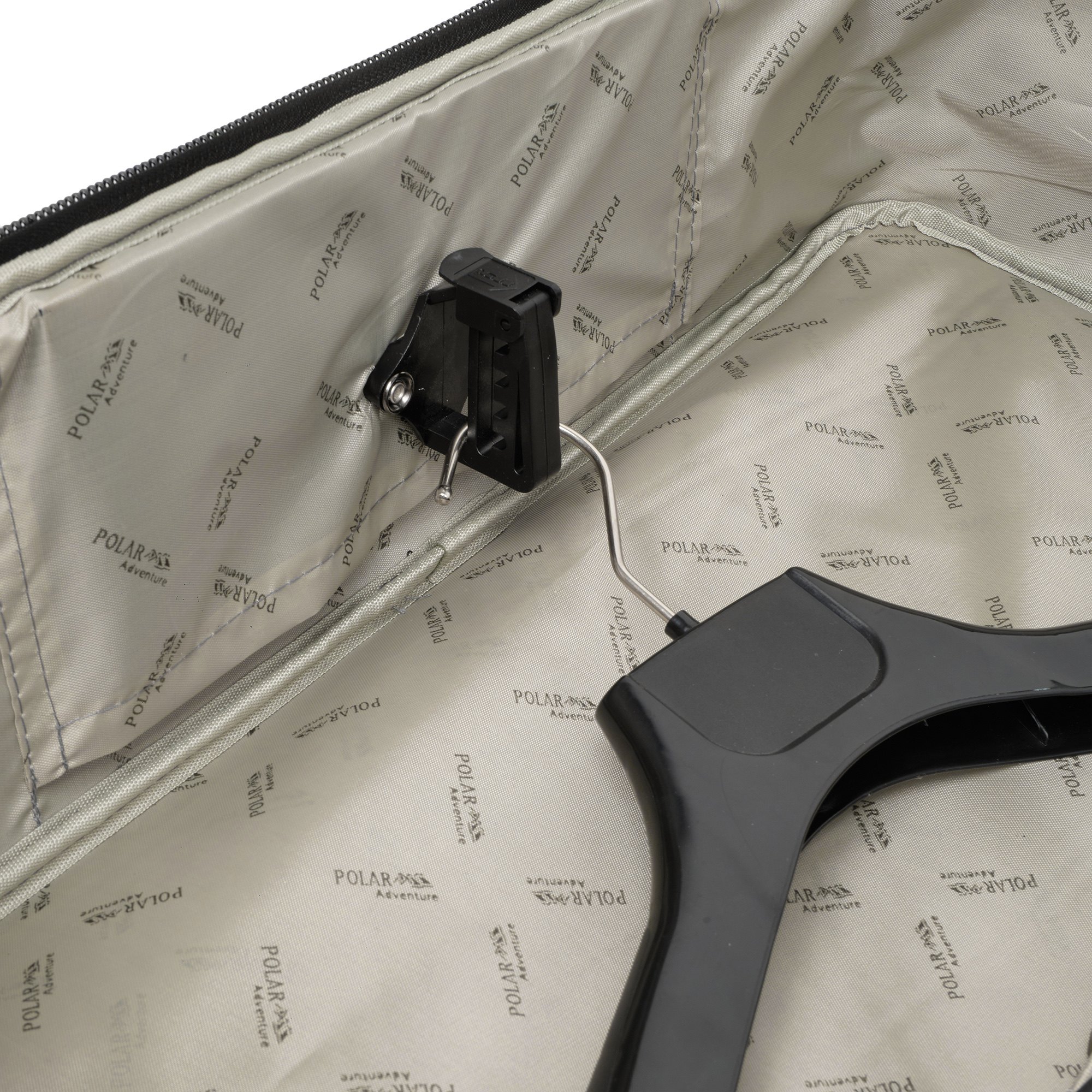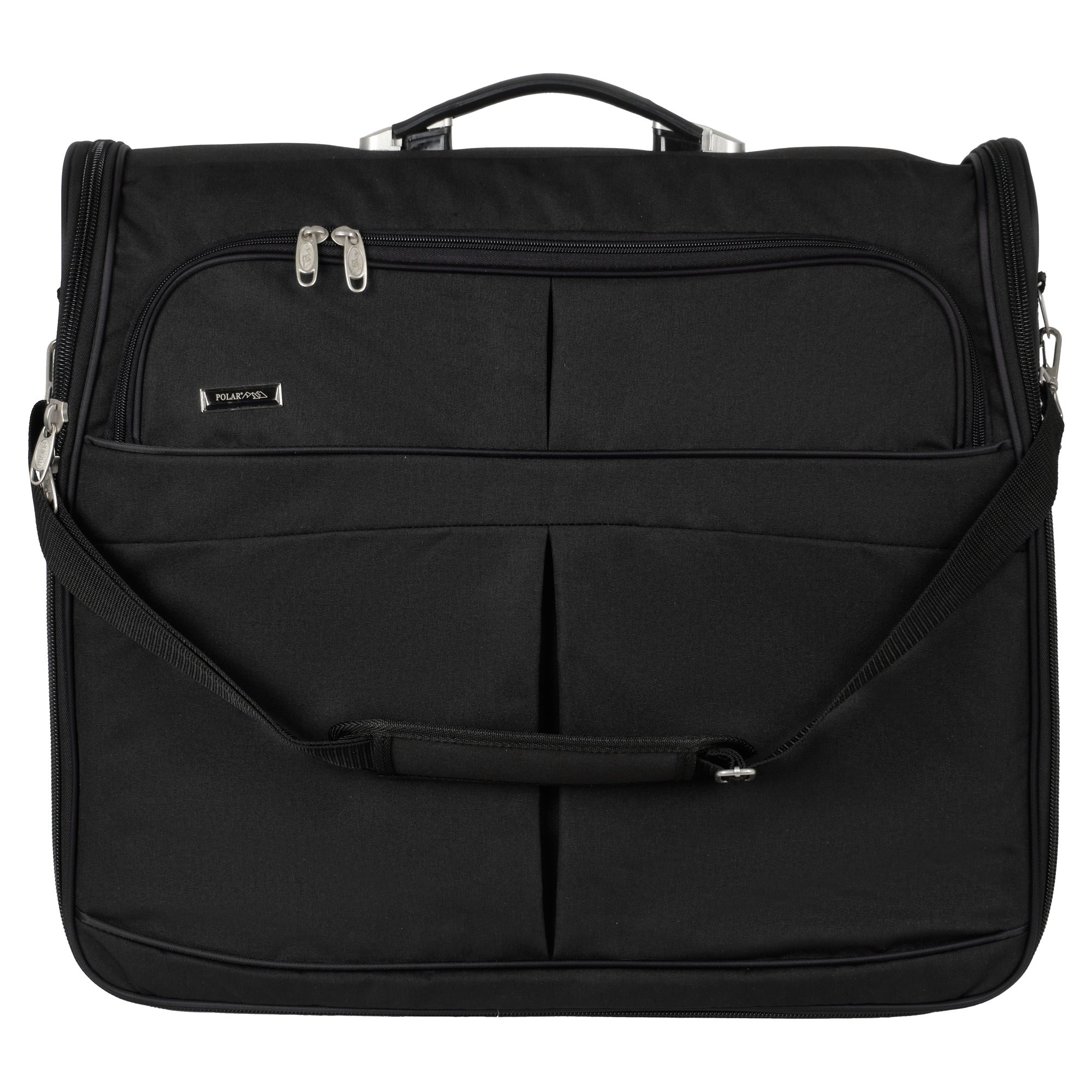Портплед POLAR Полар – это дорожная сумка – чехол для переноски и хранения костюмов, рубашек, платья. Изготовлен из материалов премиум класса, высококачественный полиэстер, надежный прочный с водоотталкивающей пропиткой, который не выгорает, не трескается на морозе, устойчив к перепаду температур. Портплед для одежды удобен для перевозки деловых костюмов в командировке. Внутри сумки-портпледа фиксатор для одежды с креплением на 4 вешалки.  В портпледе есть отделение на липучке для рубашек, футболок с фиксирующими ремнями. Большой глубокий карман на резинке для необходимых вещей, которые нужно взять с собой (галстук, платок, шарф, папка с документами, кошелек, майка, футболка и другое).  Снаружи, на передней стенке портпледа, имеется объёмный и плоский карман на молнии для деловых бумаг и папок. Задний большой карман на молнии. Портплед для одежды мужской, женский, унисекс. Для удобства переноски есть плечевой ремень и надежная ручка для переноски. Вешалка в комплект не входит. Перед покупкой уточните у своего авиаперевозчика допустимые габариты для провоза ручной клади, чтобы определить подходит вам эта модель или нет.