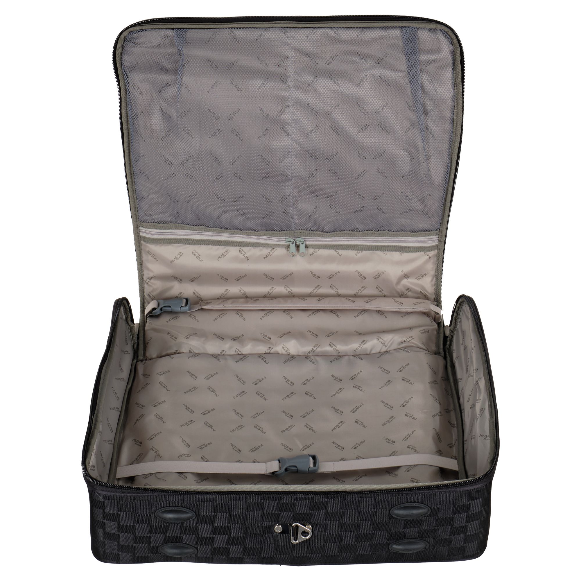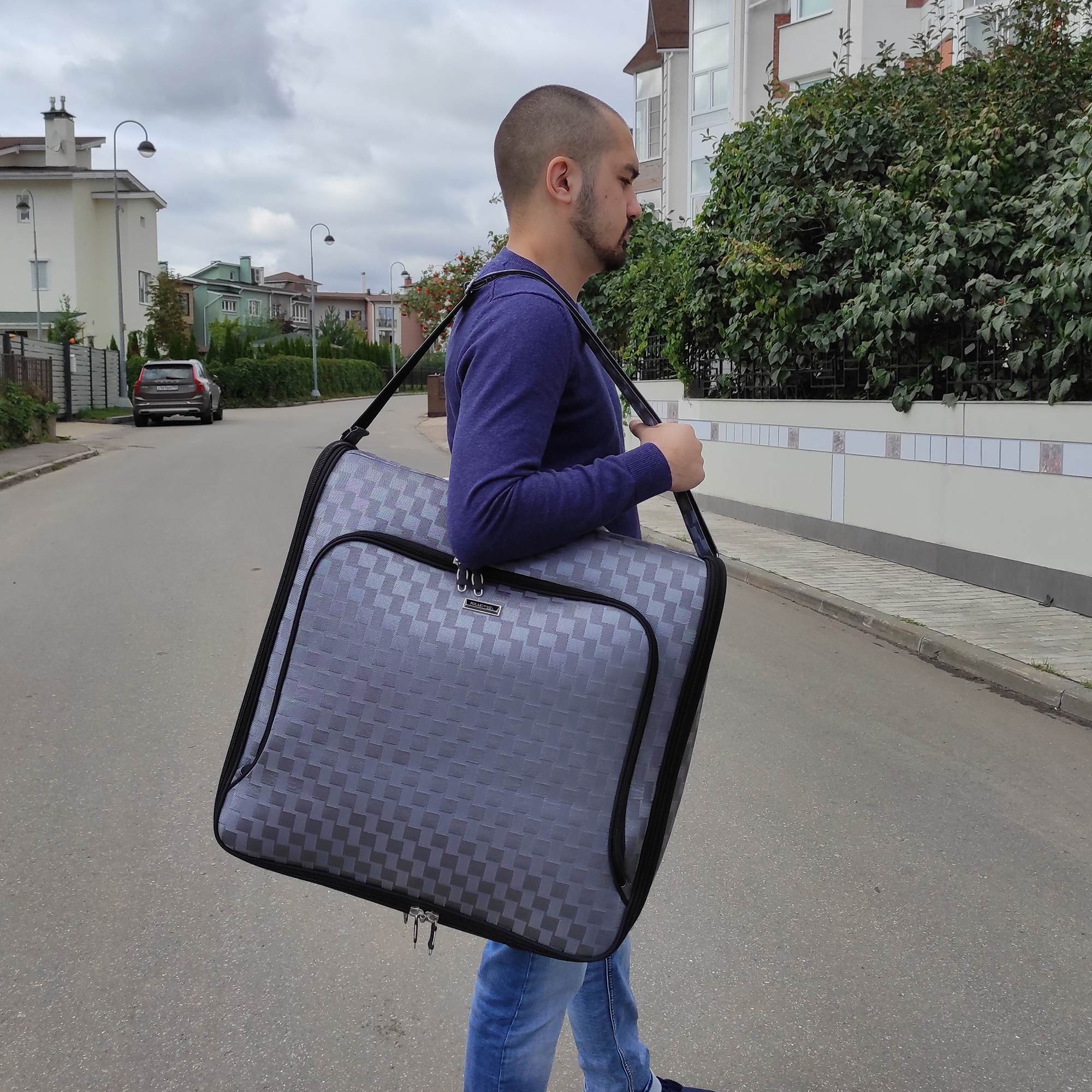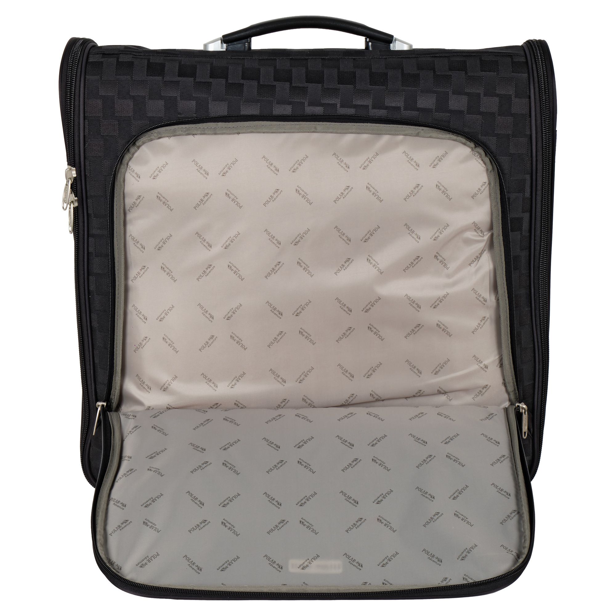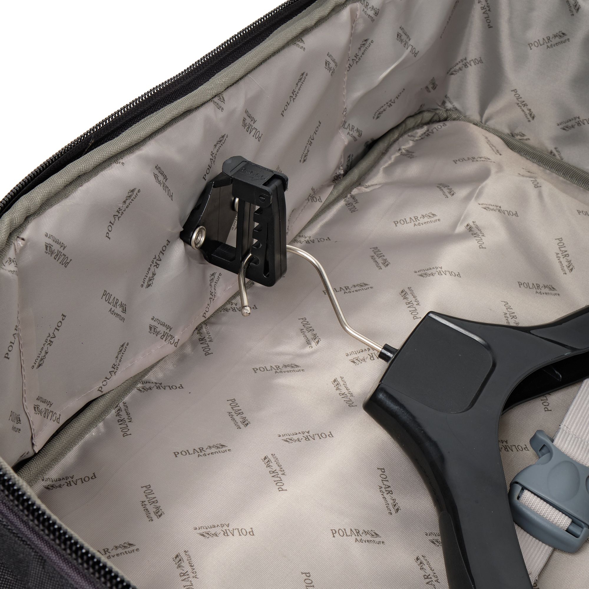 Портплед бренда Polar (Полар). Сумка дорожная для переноски и хранения костюмов, рубашек, платья. Материал премиум класса, высококачественный полиэстер, надежный прочный с водоотталкивающей пропиткой. Не выгорает, не трескается на морозе, устойчив к перепаду температур. Сумка-портплед подходит под ручную кладь. Портплед для одежды удобен для перевозки деловых костюмов в командировке-это гарантия того, что ваш костюм сохранит презентабельный вид, не помнется и не испачкается. В основном отделе портпледа есть крепление для вешалок и фиксатор-резинка для одежды. Сетчатый карман на молнии для необходимых вещей, которые нужно взять с собой (галстук, платок, шарф, папка с документами, кошелек, майка, футболка и другое). Снаружи, на передней стенке портпледа, имеется объёмный и плоский карман на молнии для деловых бумаг и папок. Для удобства переноски есть плечевой ремень и надежная ручка для переноски. Объем 40л.