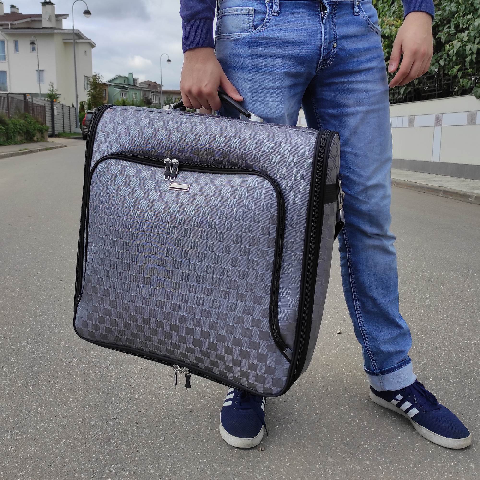 Портплед бренда Polar (Полар). Сумка дорожная для переноски и хранения костюмов, рубашек, платья. Материал премиум класса, высококачественный полиэстер, надежный прочный с водоотталкивающей пропиткой. Не выгорает, не трескается на морозе, устойчив к перепаду температур. Сумка-портплед подходит под ручную кладь. Портплед для одежды удобен для перевозки деловых костюмов в командировке-это гарантия того, что ваш костюм сохранит презентабельный вид, не помнется и не испачкается. В основном отделе портпледа есть крепление для вешалок и фиксатор-резинка для одежды. Сетчатый карман на молнии для необходимых вещей, которые нужно взять с собой (галстук, платок, шарф, папка с документами, кошелек, майка, футболка и другое). Снаружи, на передней стенке портпледа, имеется объёмный и плоский карман на молнии для деловых бумаг и папок. Для удобства переноски есть плечевой ремень и надежная ручка для переноски. Объем 40л.