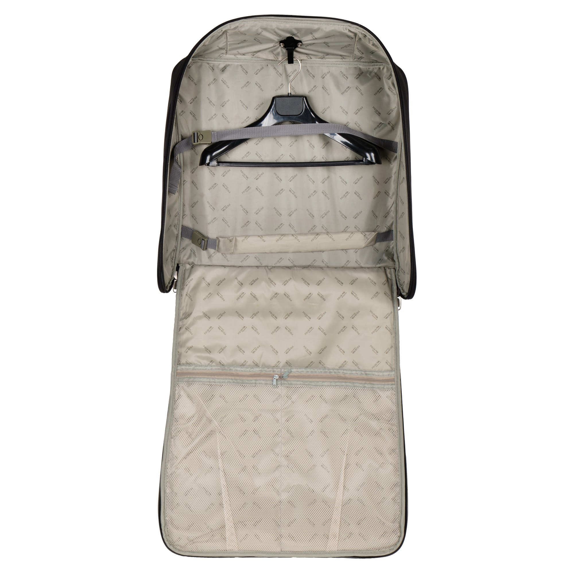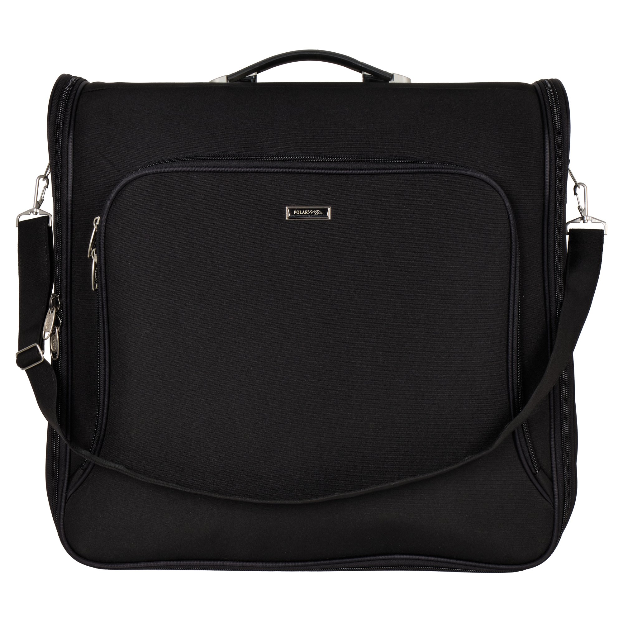 Портплед бренда Polar (Полар). Сумка дорожная для переноски и хранения костюмов, рубашек, платья. Материал премиум класса, высококачественный полиэстер, надежный прочный с водоотталкивающей пропиткой. Не выгорает, не трескается на морозе, устойчив к перепаду температур. Сумка-портплед подходит под ручную кладь. Портплед для одежды удобен для перевозки деловых костюмов в командировке-это гарантия того, что ваш костюм сохранит презентабельный вид, не помнется и не испачкается. В основном отделе портпледа есть крепление для вешалок и фиксатор-резинка для одежды. Сетчатый карман на молнии для необходимых вещей, которые нужно взять с собой (галстук, платок, шарф, папка с документами, кошелек, майка, футболка и другое). Снаружи, на передней стенке портпледа, имеется объёмный и плоский карман на молнии для деловых бумаг и папок. Для удобства переноски есть плечевой ремень и надежная ручка для переноски. Объем 40л.