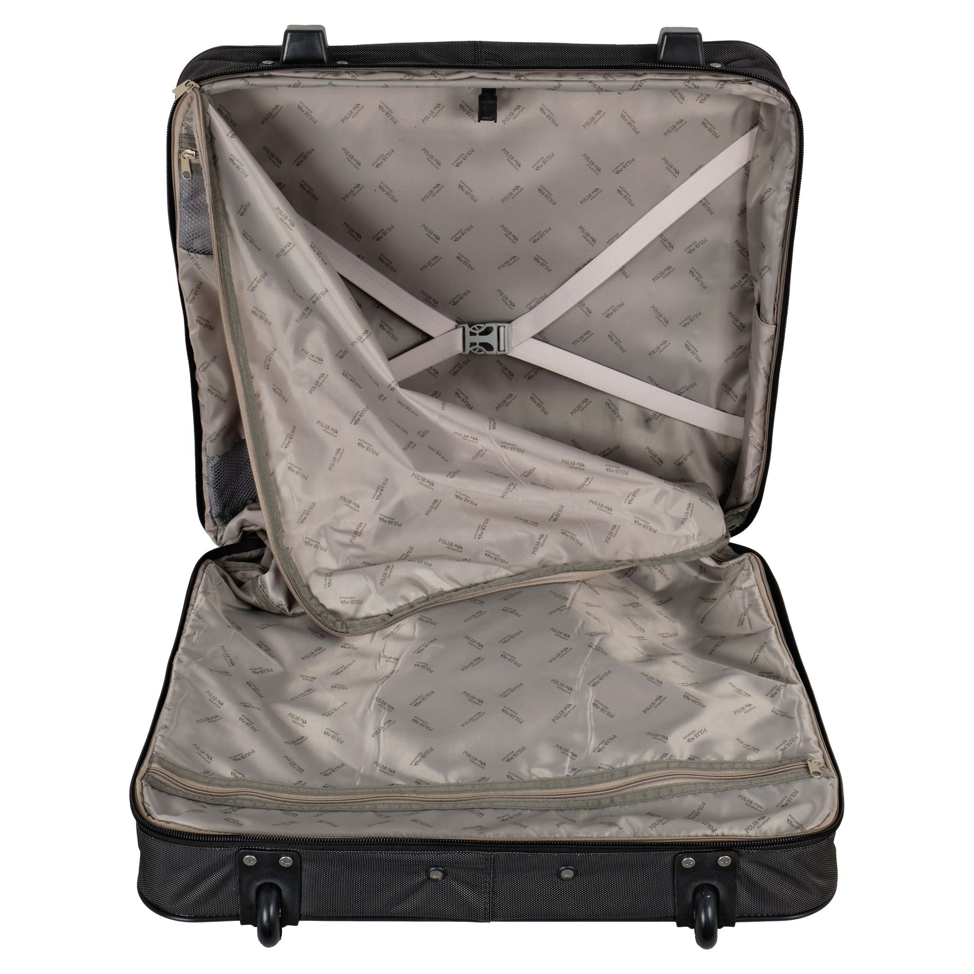 Портплед фирмы Polar на двух колёсах выполнен из полиэстера и предназначен для перевозки деловых костюмов в командировке. Портплед состоит из основного отделения в форме чехла , внутри основного отделения расположен фиксатор багажа. Снаружи, на передней части портпледа, имеется объёмный накладной карман на молнии. У портпледа есть две ручки (ручка для переноски и выдвижная ручка для перевозки, максимальная высота которой составляет 48см, а также крючок для хранения портпледа в шкафу).