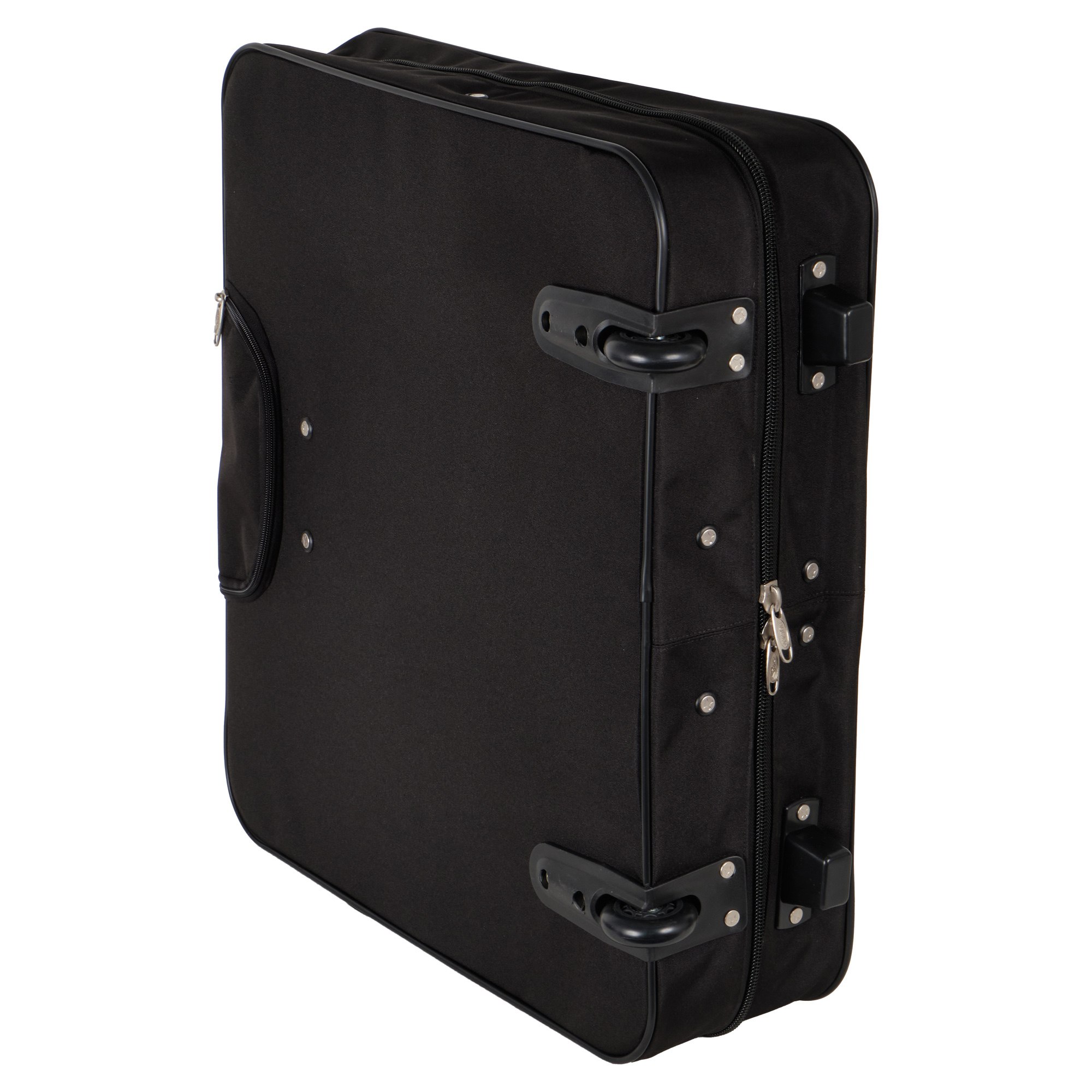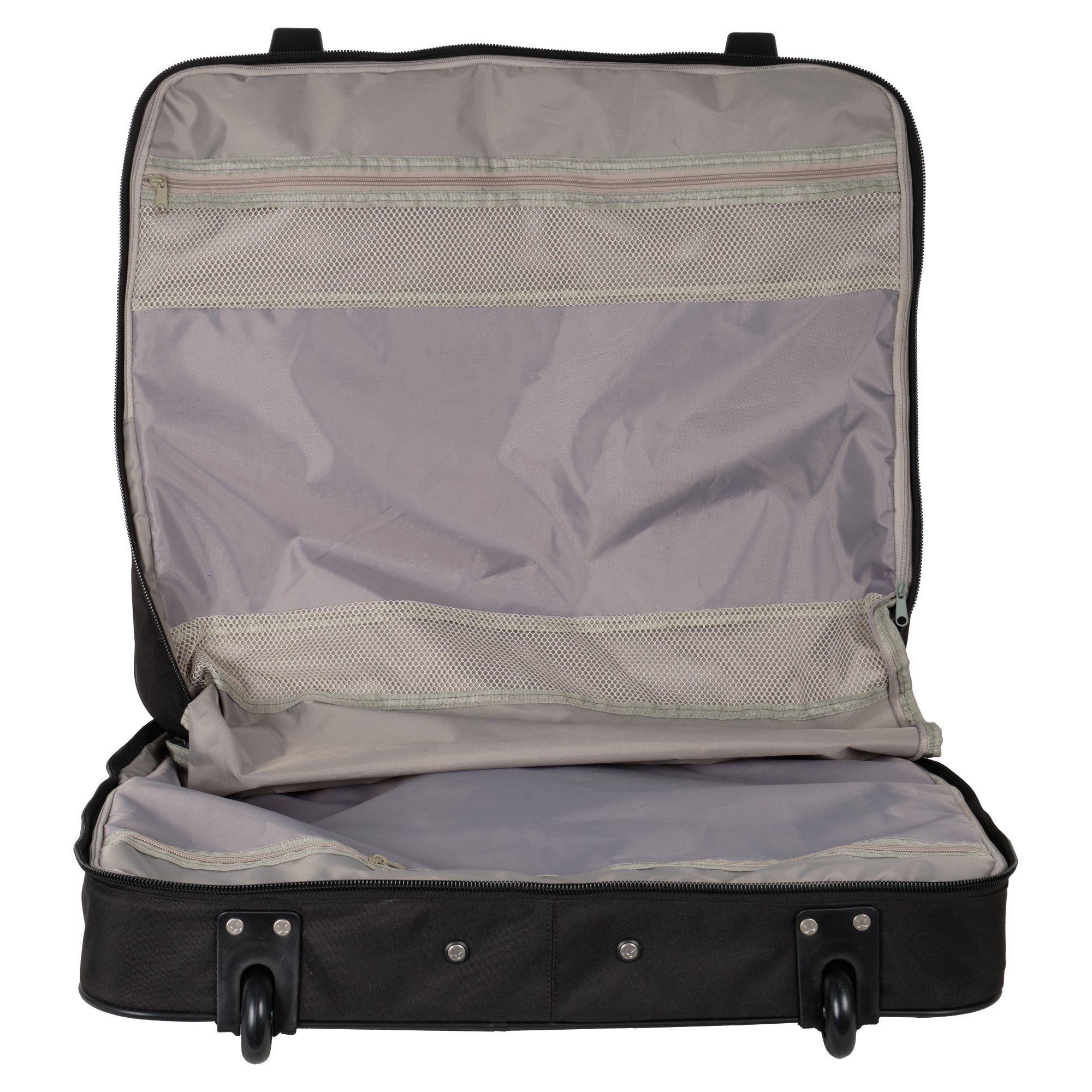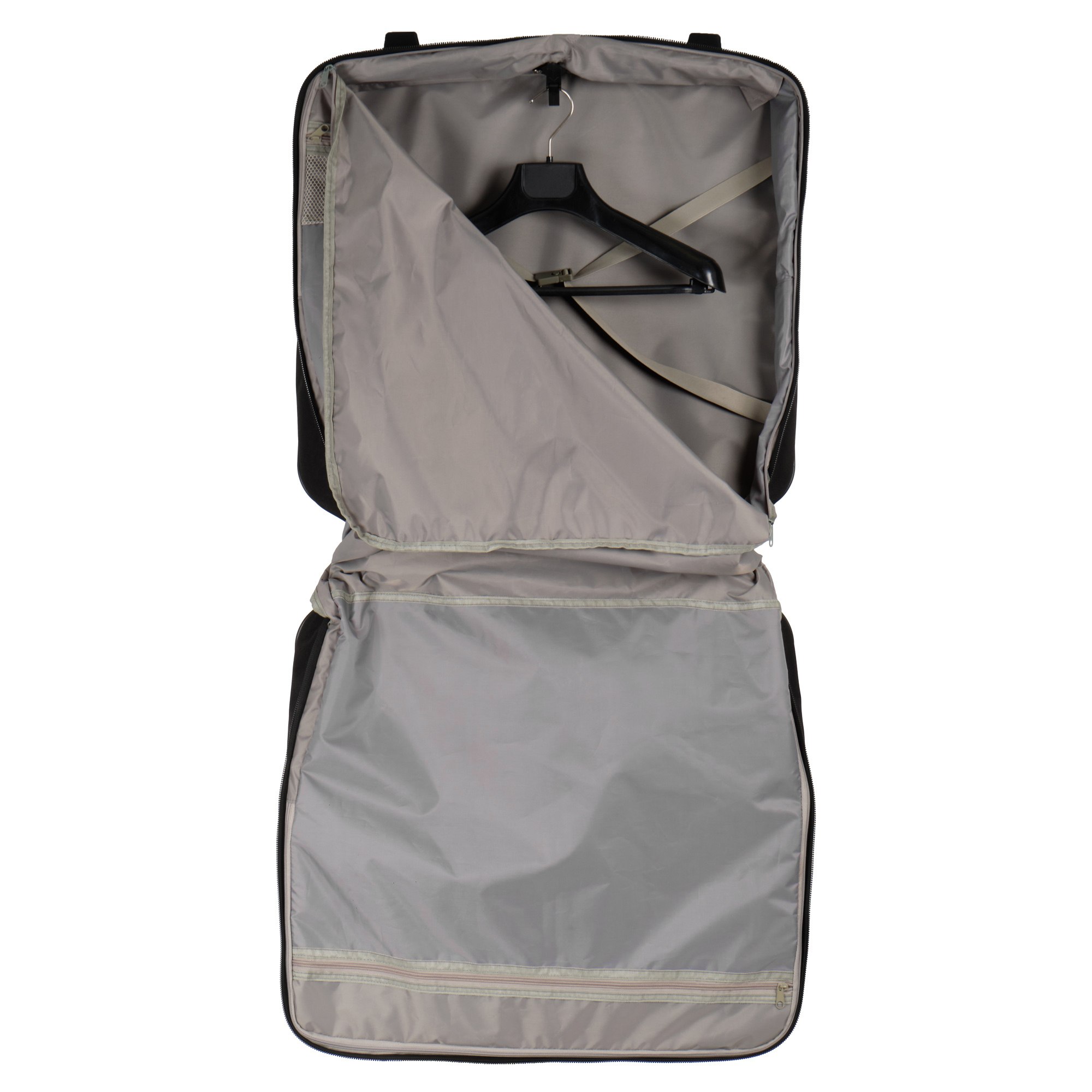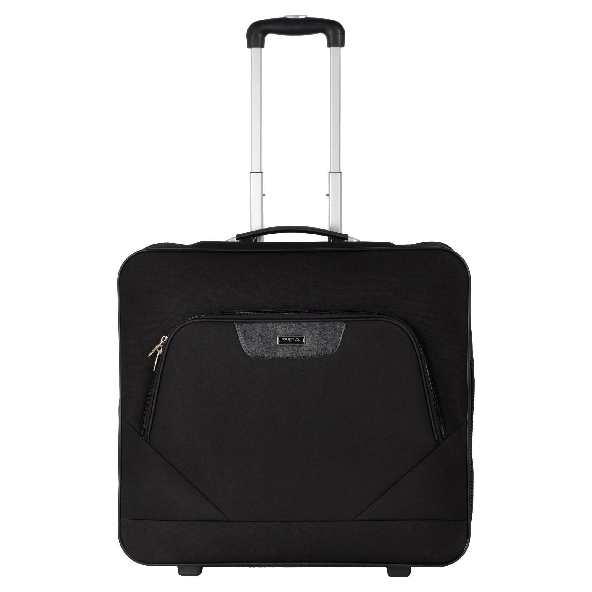 Портплед фирмы Polar на двух колёсах выполнен из полиэстера и предназначен для перевозки деловых костюмов в командировке. Портплед состоит из основного отделения в форме чехла , внутри основного отделения расположен фиксатор багажа. Снаружи, на передней части портпледа, имеется объёмный накладной карман на молнии. У портпледа есть две ручки (ручка для переноски и выдвижная ручка для перевозки, максимальная высота которой составляет 48см, а также крючок для хранения портпледа в шкафу).