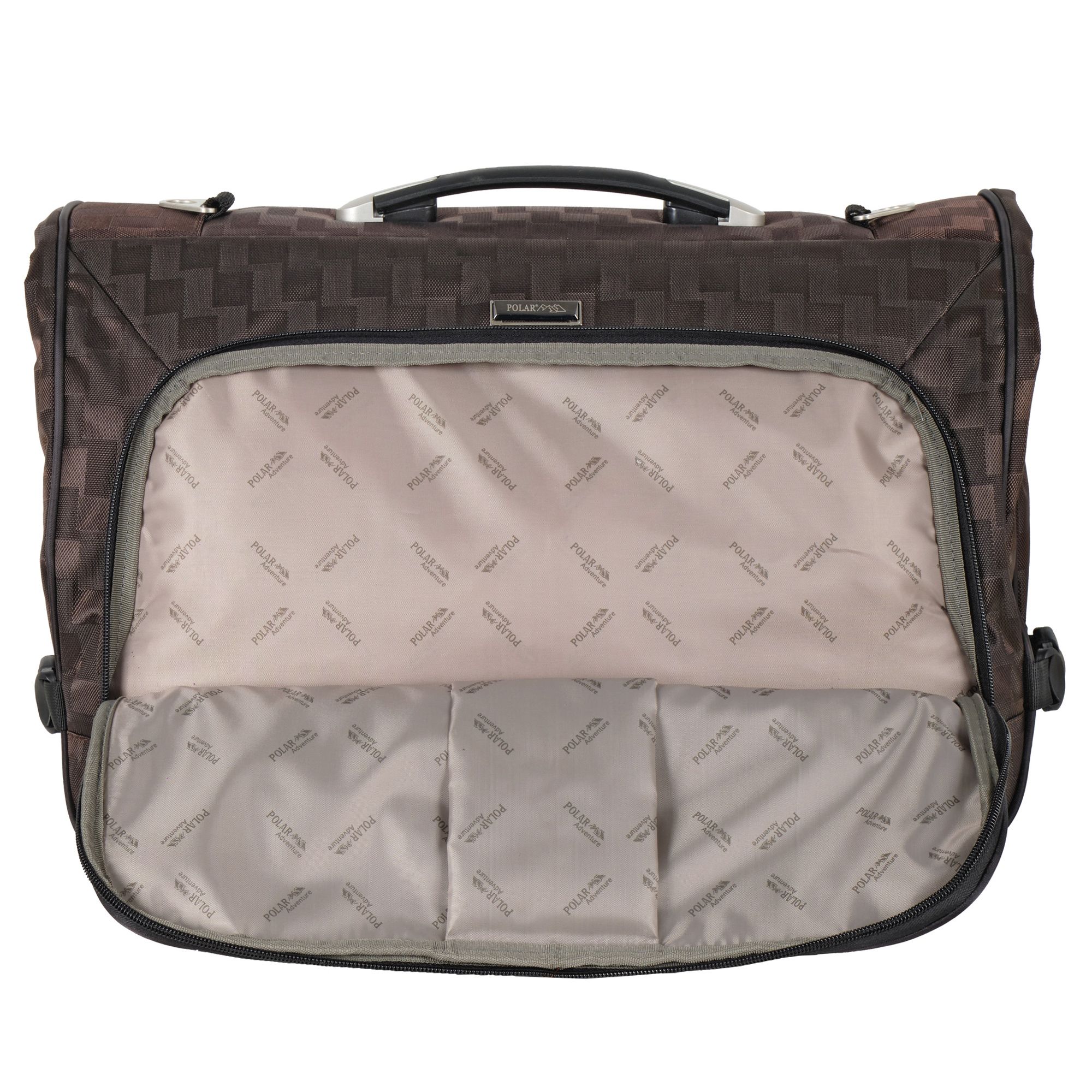 Портплед - РУЧНАЯ КЛАДЬ на борт ведущих авиакомпаний. Удобен для перевозки костюма и рубашки в командировке. Это гарантия того, что ваш костюм прибудет в место назначения не только в целости и сохранности, но и сохранит свой презентабельный вид - не помнется и не испачкается. Основной отдел в форме чехла с вешалкой. Внутри по середине фиксатор багажа. Снаружи, на передней части портпледа, имеются объёмный карман на молнии. Снабжен плечевым ремнем и ручкой для переноски. Есть крючек для хранения портпледа в шкафу.