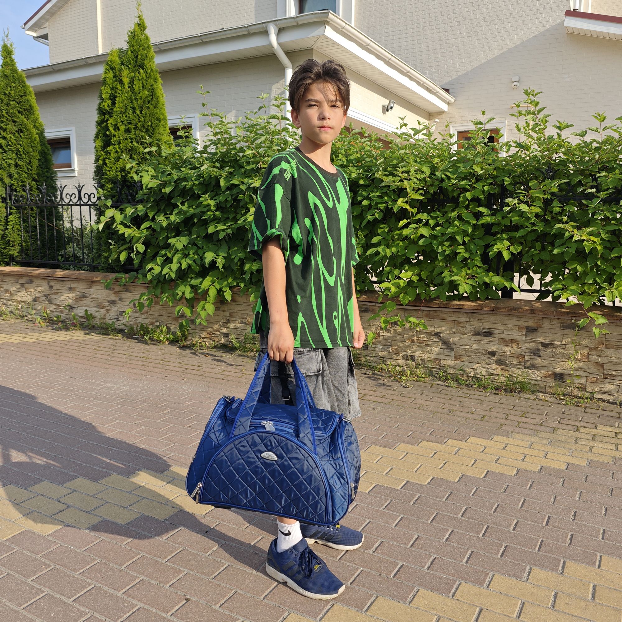 Вместительная и удобная дорожная сумка Polar . Основное отделение закрывается на молнию. Один из боковых карманов предназначен для обуви, мокрых вещей. Дополнительно снаружи большой карман на молнии спереди сумки и небольшие карманы по бокам. Сумка имеет мягкую конструкцию. В комплекте регулируемый съемный плечевой ремень.