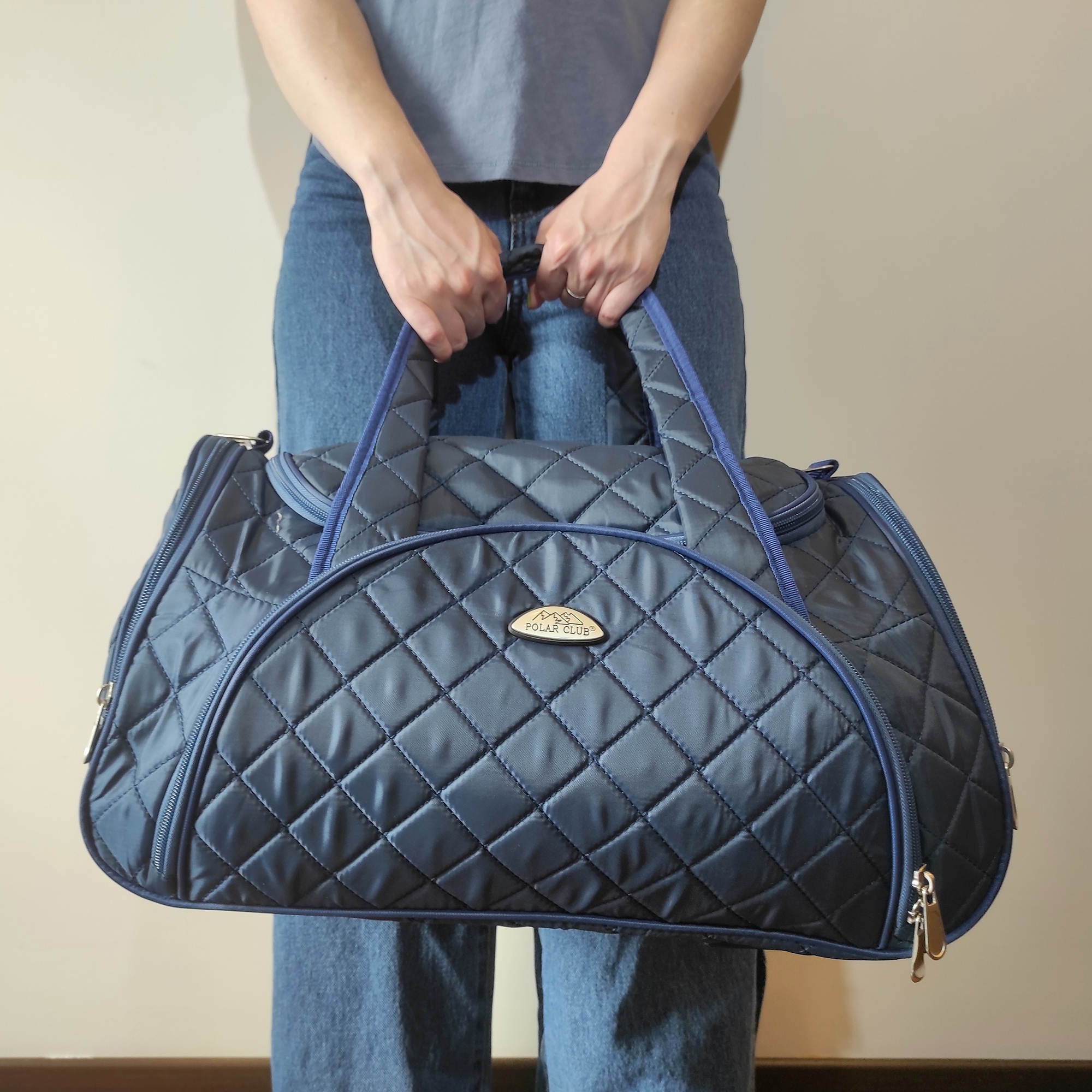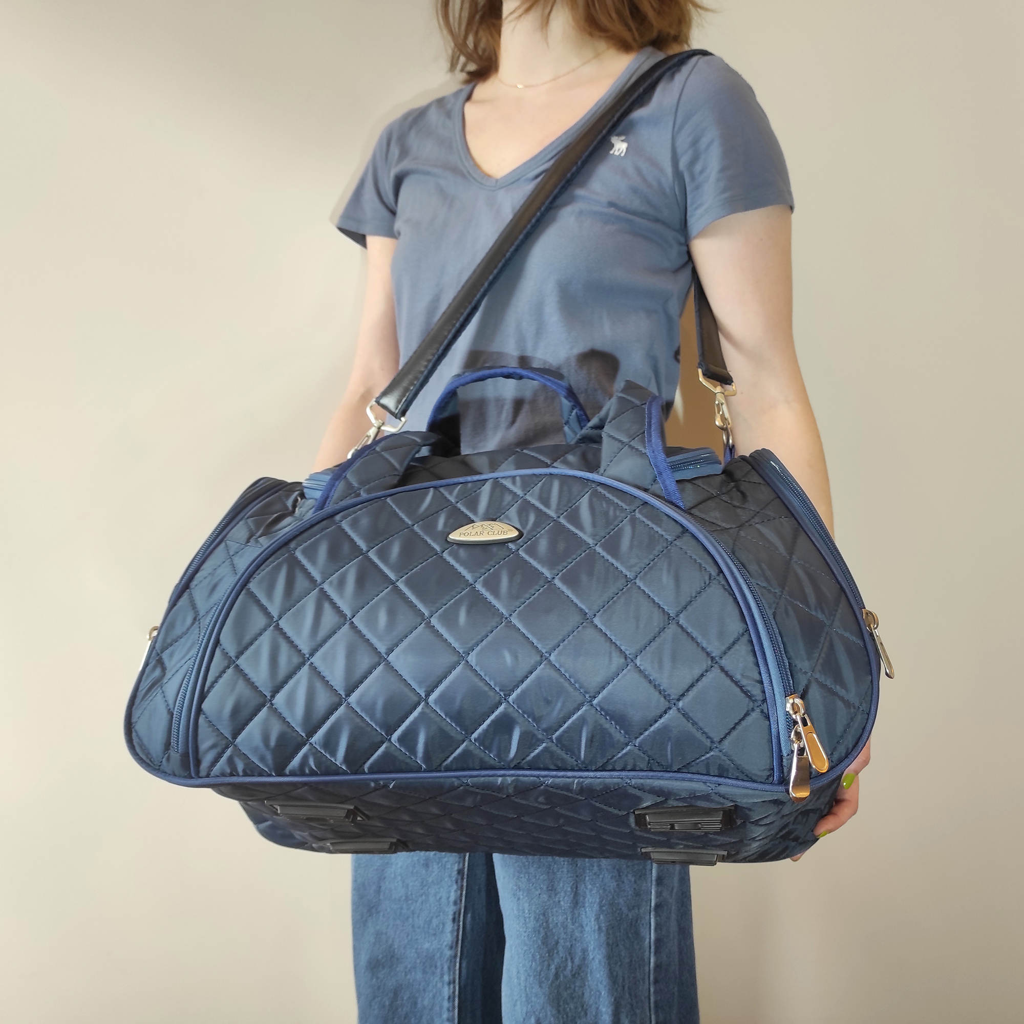 Вместительная и удобная дорожная сумка Polar . Основное отделение закрывается на молнию. Один из боковых карманов предназначен для обуви, мокрых вещей. Дополнительно снаружи большой карман на молнии спереди сумки и небольшие карманы по бокам. Сумка имеет мягкую конструкцию. В комплекте регулируемый съемный плечевой ремень.